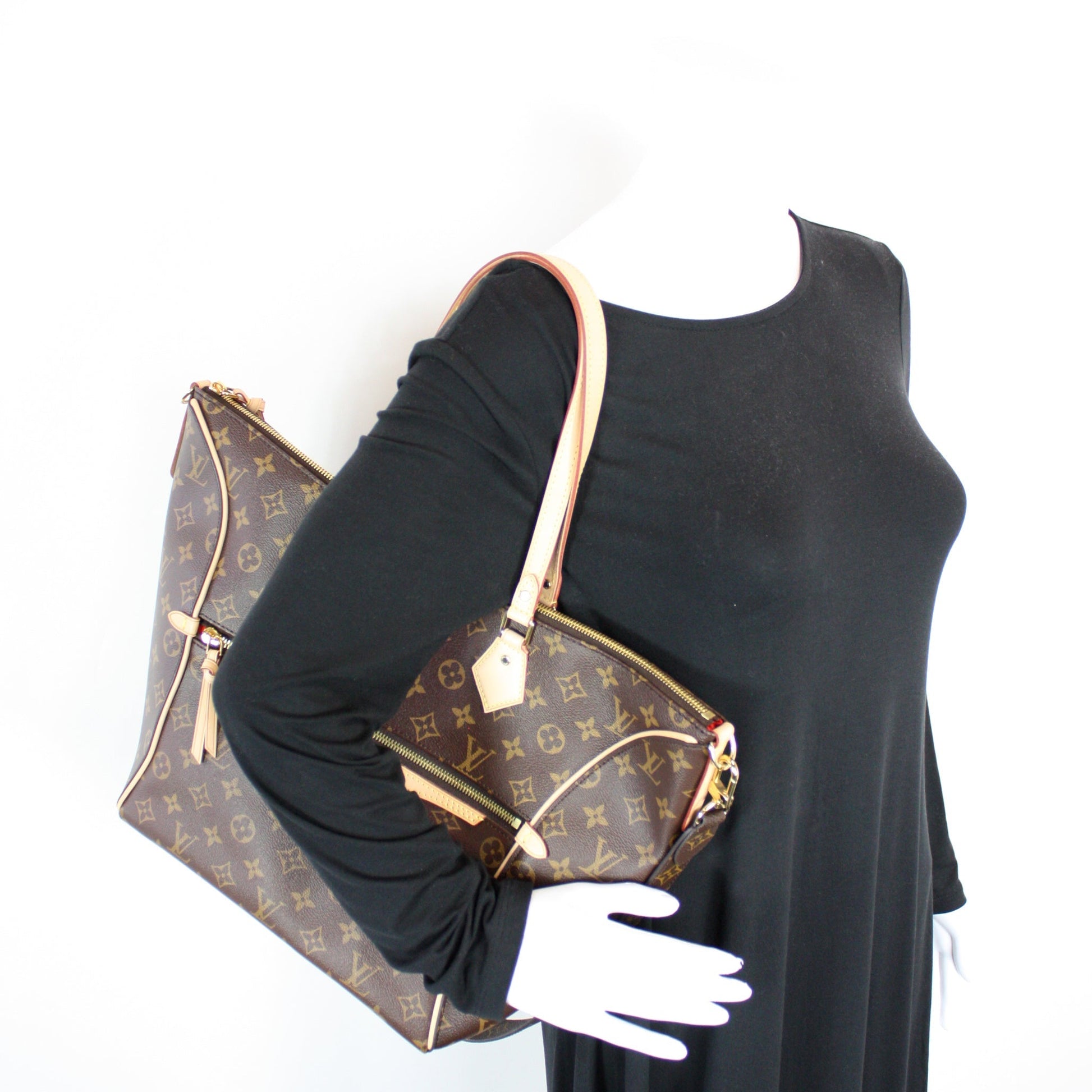 This Louis Vuitton Tournelle MMis eye catching bag. The exterior is in the classic Louis Vuitton Monogram coated canvas.