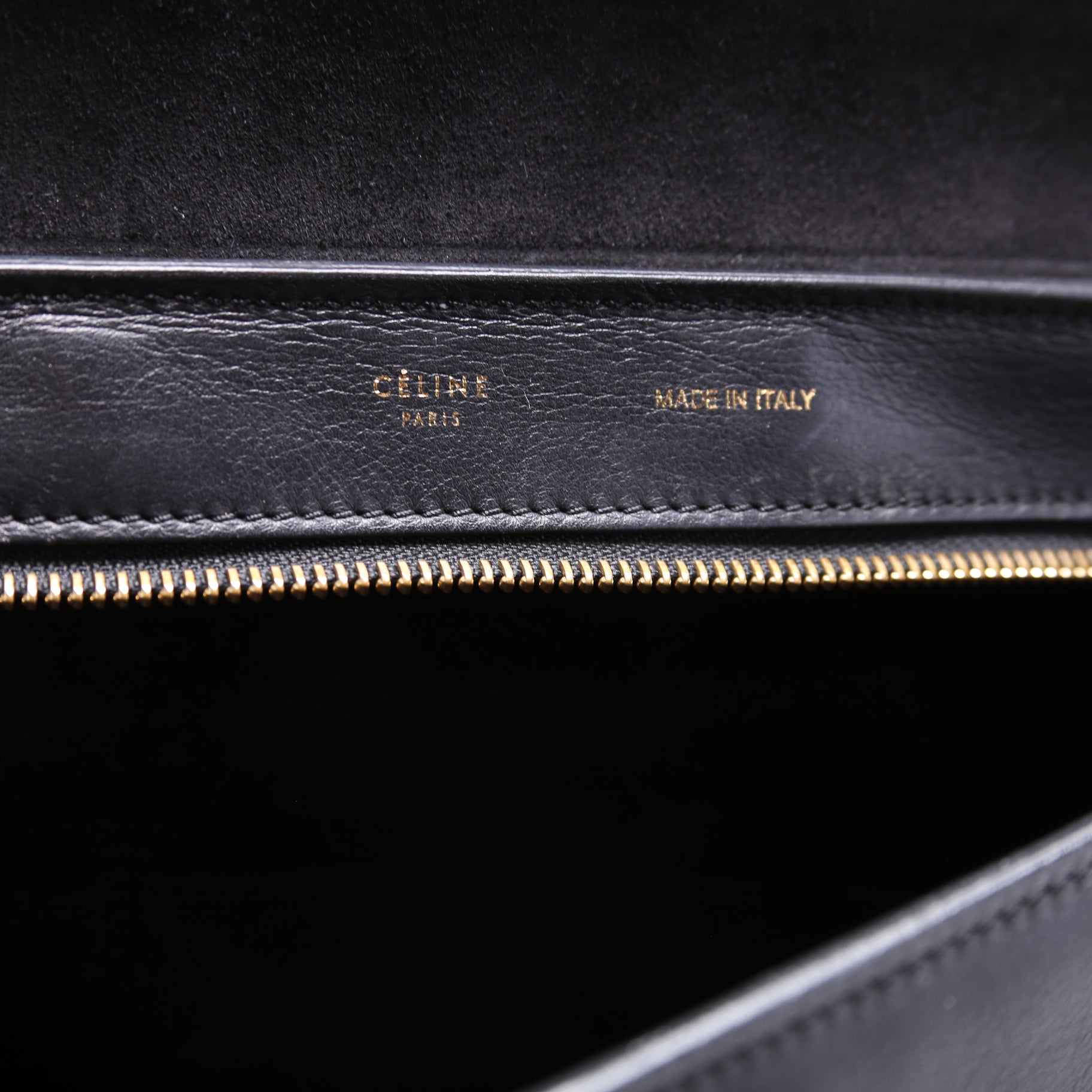 Exterior: The exterior leather shows minor scuffs and scratches throughout. The corners show minimal wear. The exterior features one zipper pocket.
