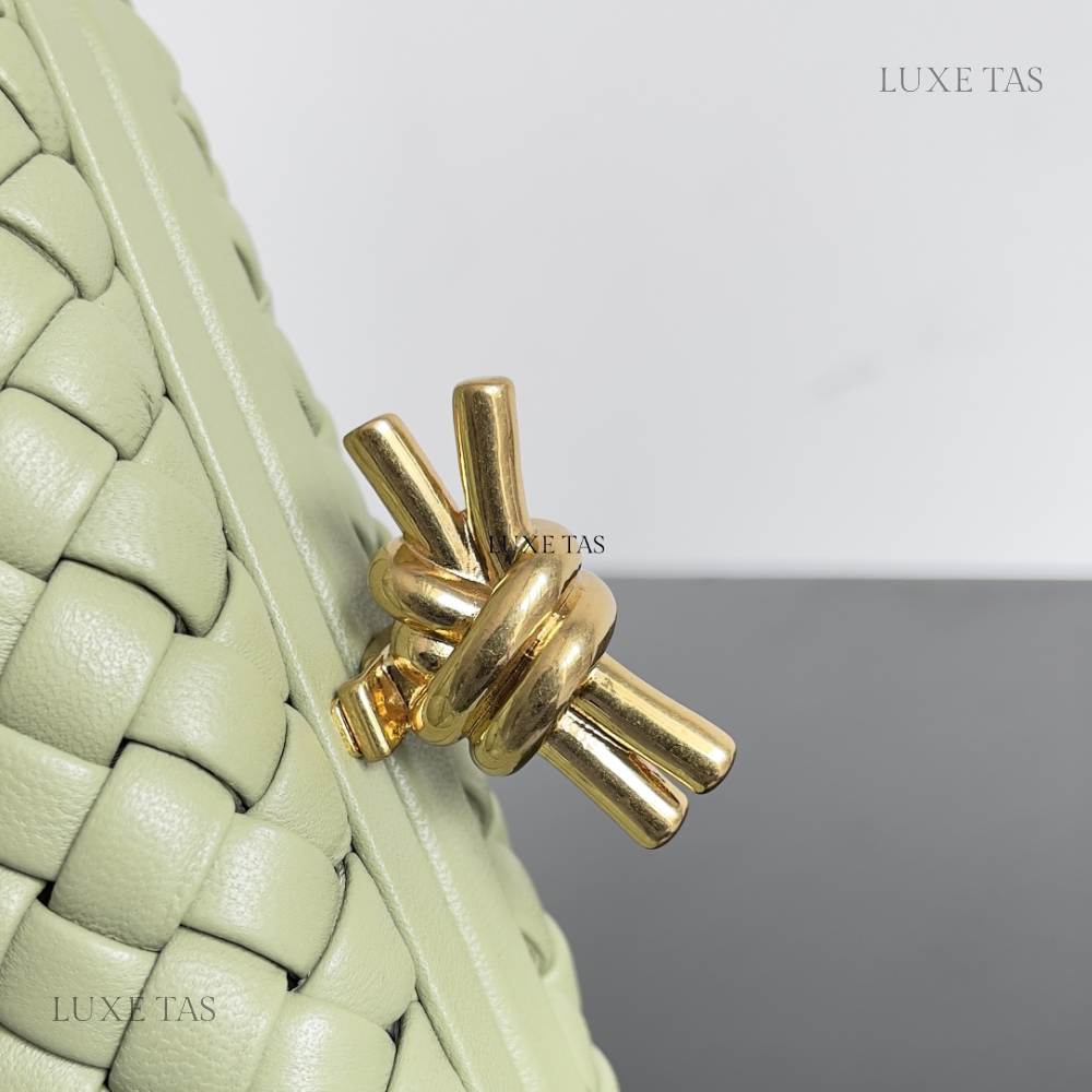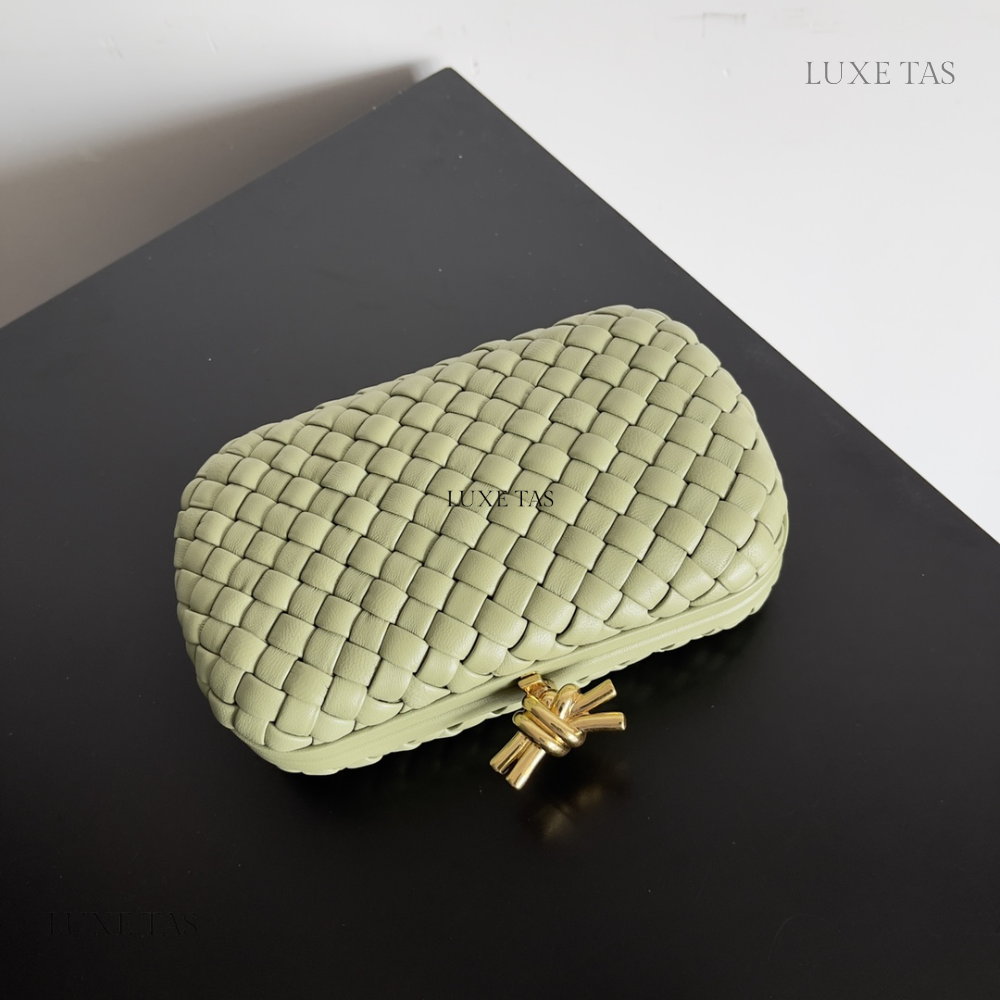 Introducing our stunning Minaudière clutch, meticulously crafted from soft padded Intreccio leather, complete with our signature knot detail! This exquisite accessory combines luxurious craftsmanship with timeless elegance, making it the perfect choice for any special occasion. With its sleek design and impeccable attention to detail, it's sure to make a statement wherever you go. Elevate your ensemble with our Minaudière clutch and add a touch of sophistication to your look!