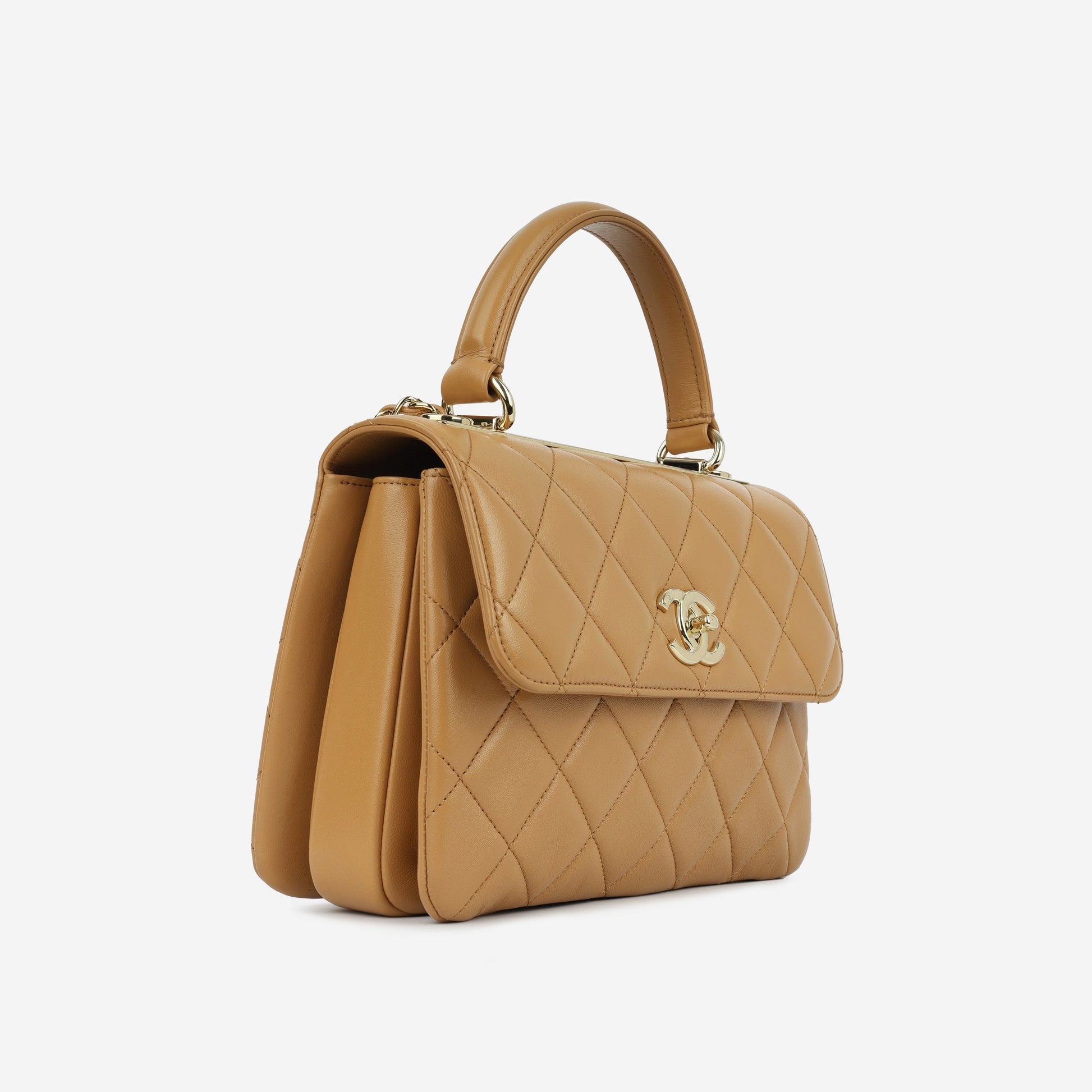 - Caramel quilted lambskin leather