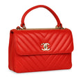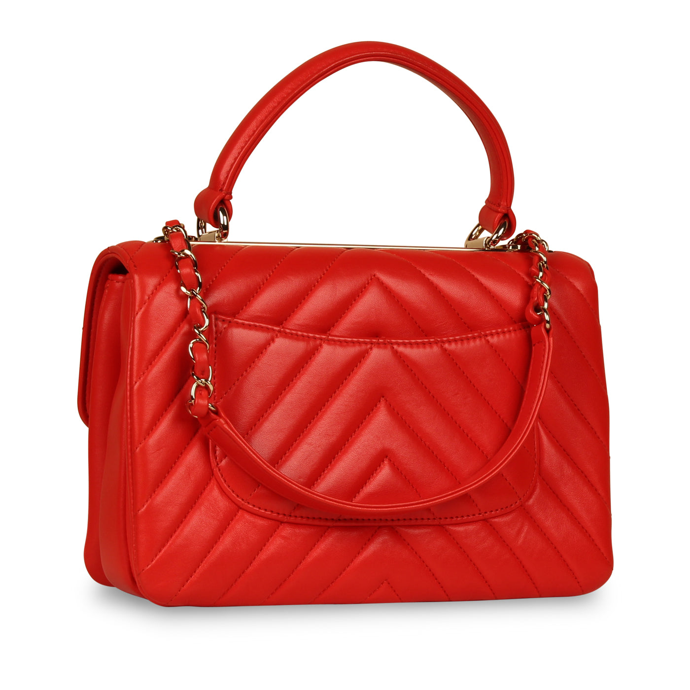 Oozing allure and sophistication, Chanel presents one of its most ravishing, highly acclaimed handbags, the Chanel Trendy CC Flap in Small. Crafted from radiant red lambskin and punctuated with in Chevron, the handbag features a sporty yet sharp silhouette. Its exterior is adorned in polished gold hardware with a rather enlarged CC clasp and Chanel’s signature chain strap. Ideal for the lady who bears an adoration for Chanel handbags but wants to steer away from the classic collection without compromising on aesthetic, the Trendy CC flap can be worn both during the day and night. Simply pair with an elegant pair of court heels and blasé dress to create a look that is as contemporary as it is Marilyn Monroe.