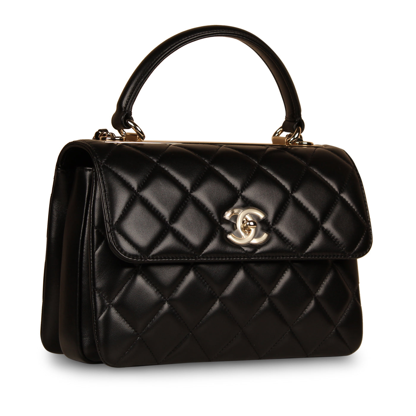 Oozing allure and sophistication, Chanel presents one of its most ravishing, highly acclaimed handbags, the Chanel Trendy CC Flap in Small. Crafted from radiant black lambskin and punctuated with in Chevron, the handbag features a sporty yet sharp silhouette. Its exterior is adorned in polished gold hardware with a rather enlarged CC clasp and Chanel’s signature chain strap. Ideal for the lady who bears an adoration for Chanel handbags but wants to steer away from the classic collection without compromising on aesthetic, the Trendy CC flap can be worn both during the day and night. Simply pair with an elegant pair of court heels and blasé dress to create a look that is as contemporary as it is Marilyn Monroe.