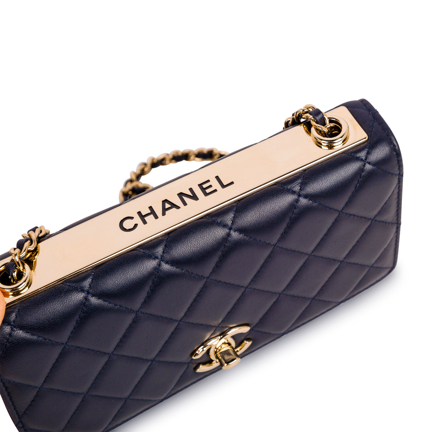 Ahh…is there anything not to love about the Trendy Chanel Wallet-On-Chain? It’s as practical as the classic WOC, has the same iconic features, but also showcases and elegant and edgy metal plate featuring a cut Chanel logo, synonymous with the ever-popular Trendy line by Chanel. This particular WOC crafted in the brand’s signature lambskin leather, in Navy Blue, featuring Champagne Gold Hardware. Sleek, stylish and sophisticated the WOC is a classic piece that you will have forever. Perfect for any monochromatic look, knowing that regardless of what you’re wearing, this WOC is the ideal compliment. A true must-have for any woman with a love for luxury and a chic sense of style, this little gem is a well-worthy addition to any handbag collection.