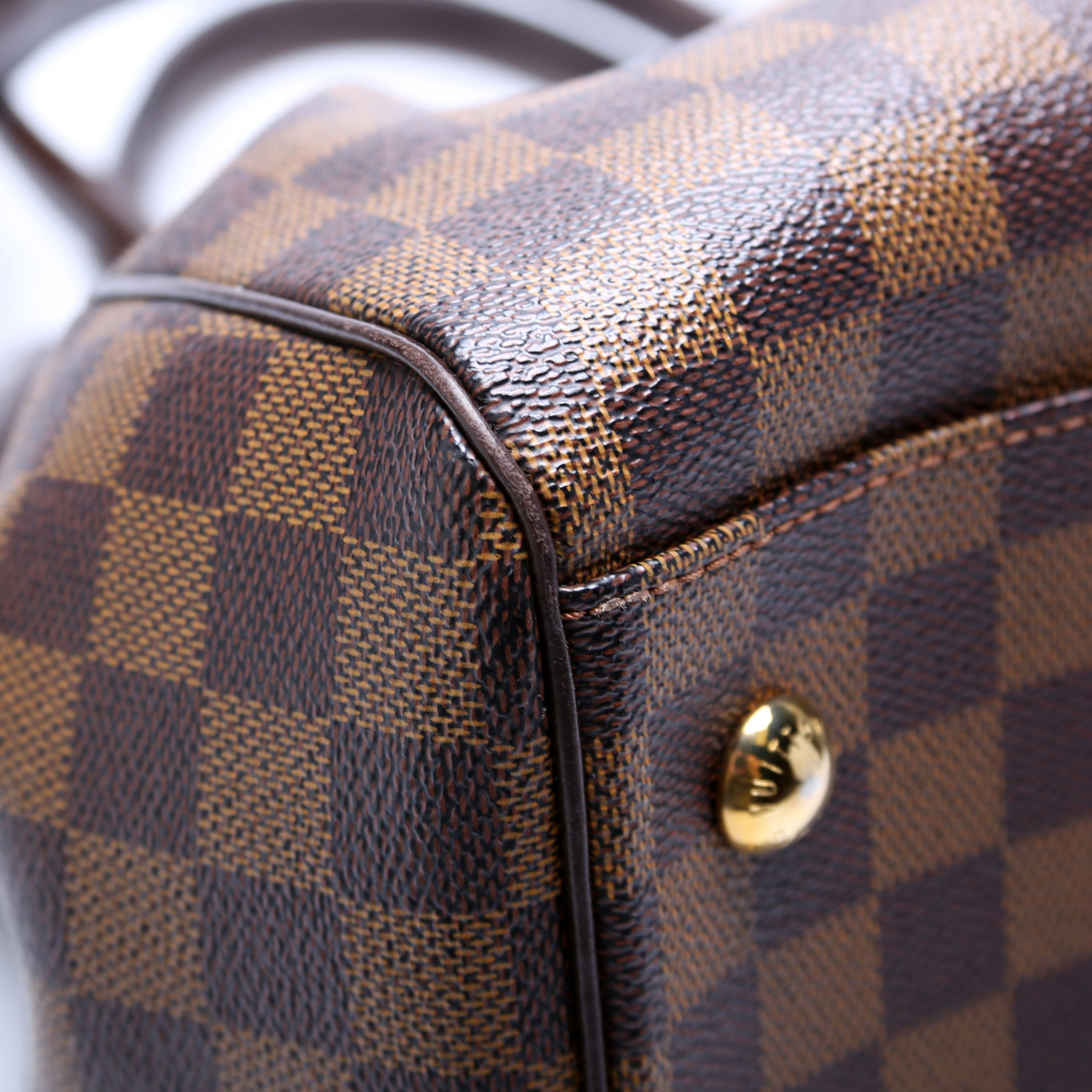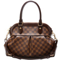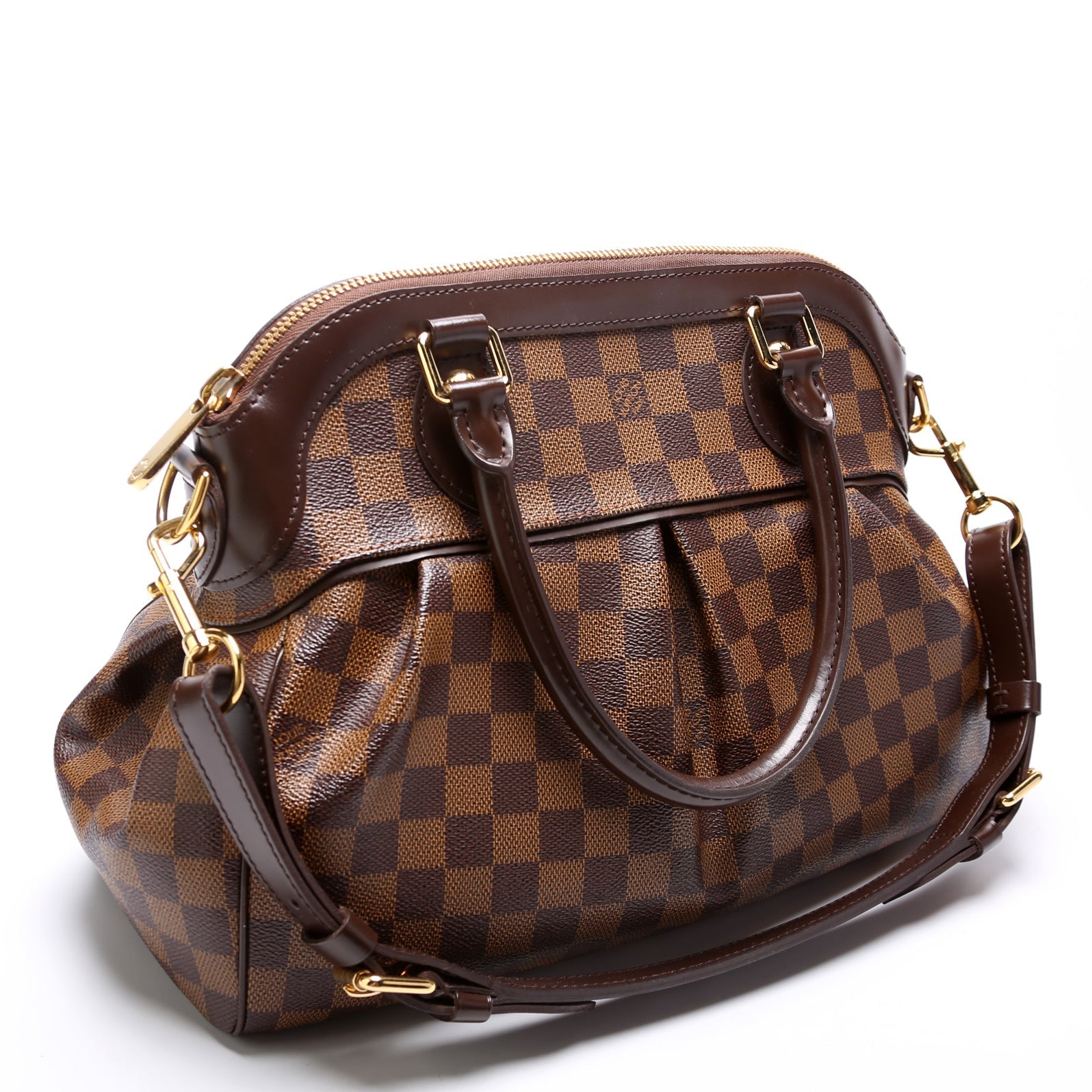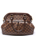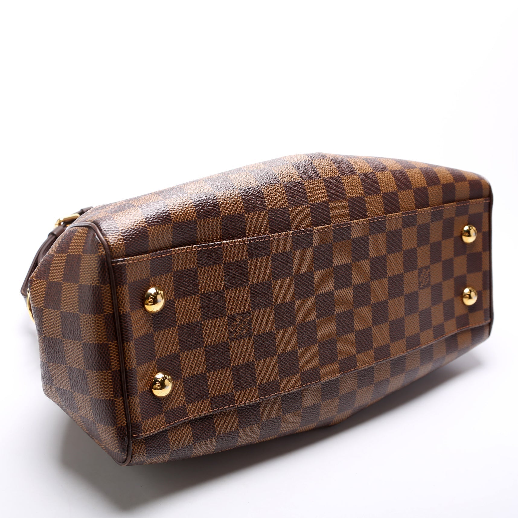 This Louis Vuitton Trevi PMis eye catching bag. The exterior is in the classic Louis Vuitton Damier Ebene coated canvas.