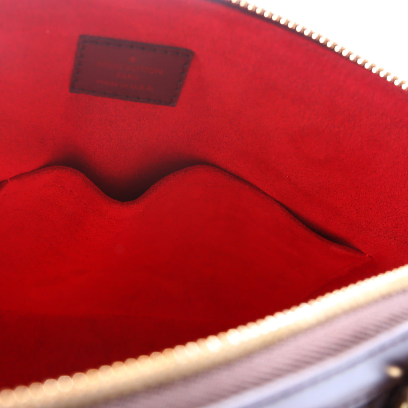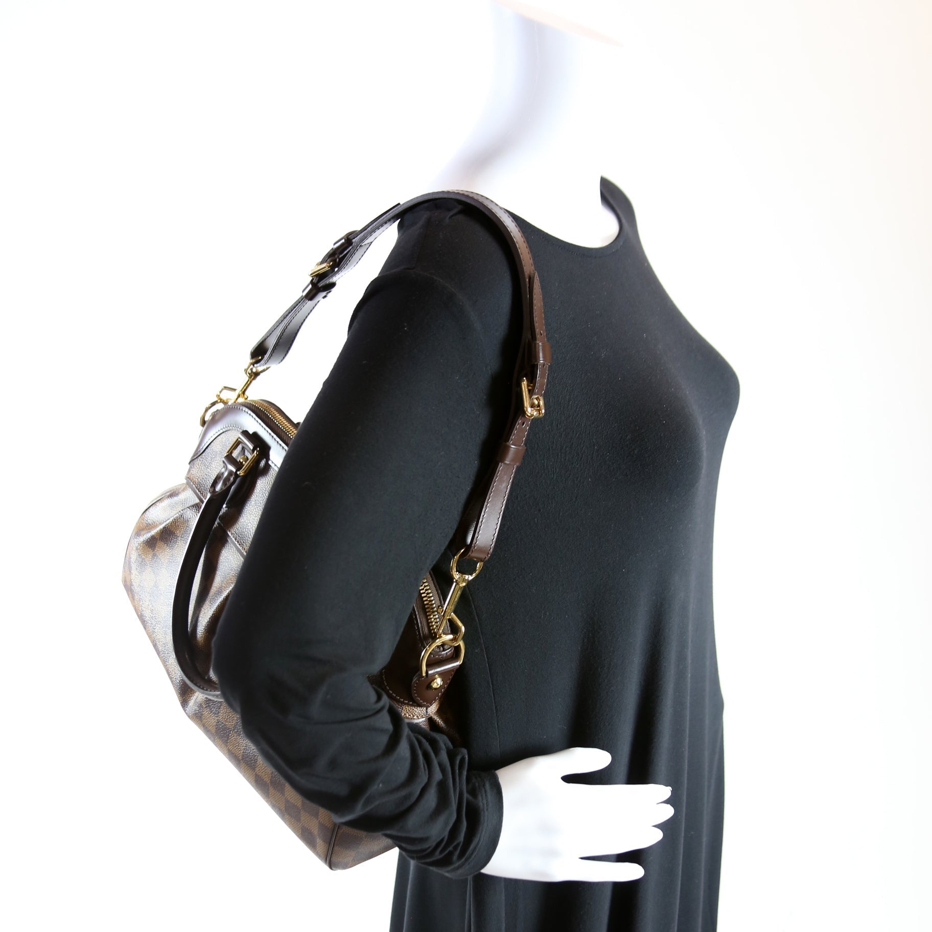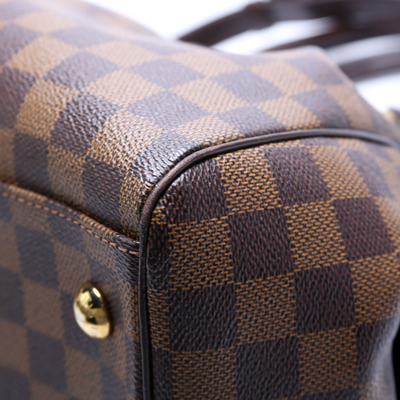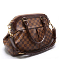 This Louis Vuitton Trevi PMis eye catching bag. The exterior is in the classic Louis Vuitton Damier Ebene coated canvas.