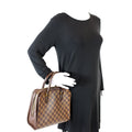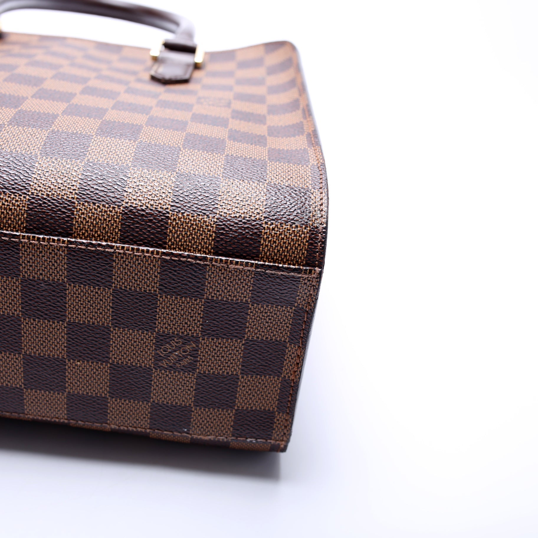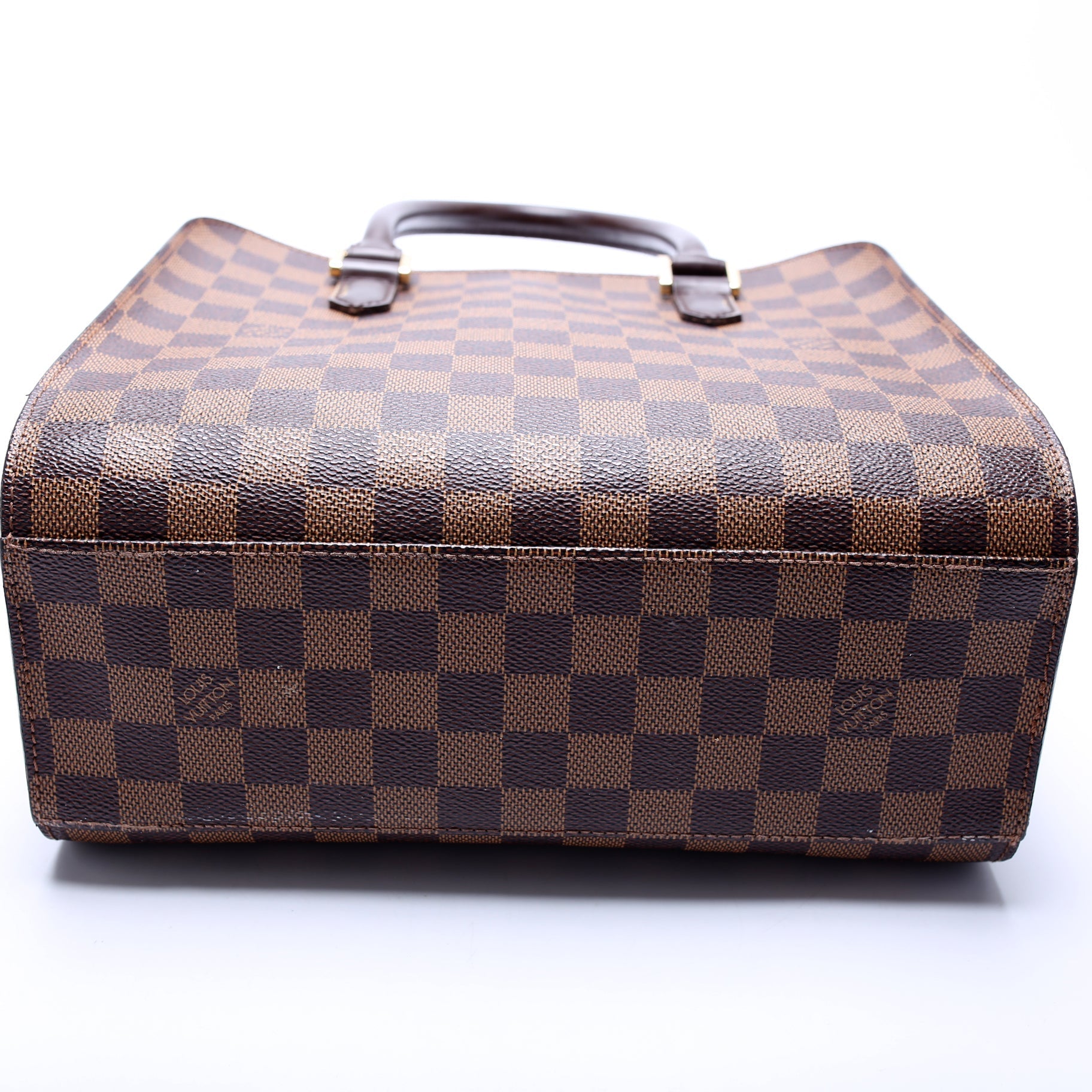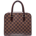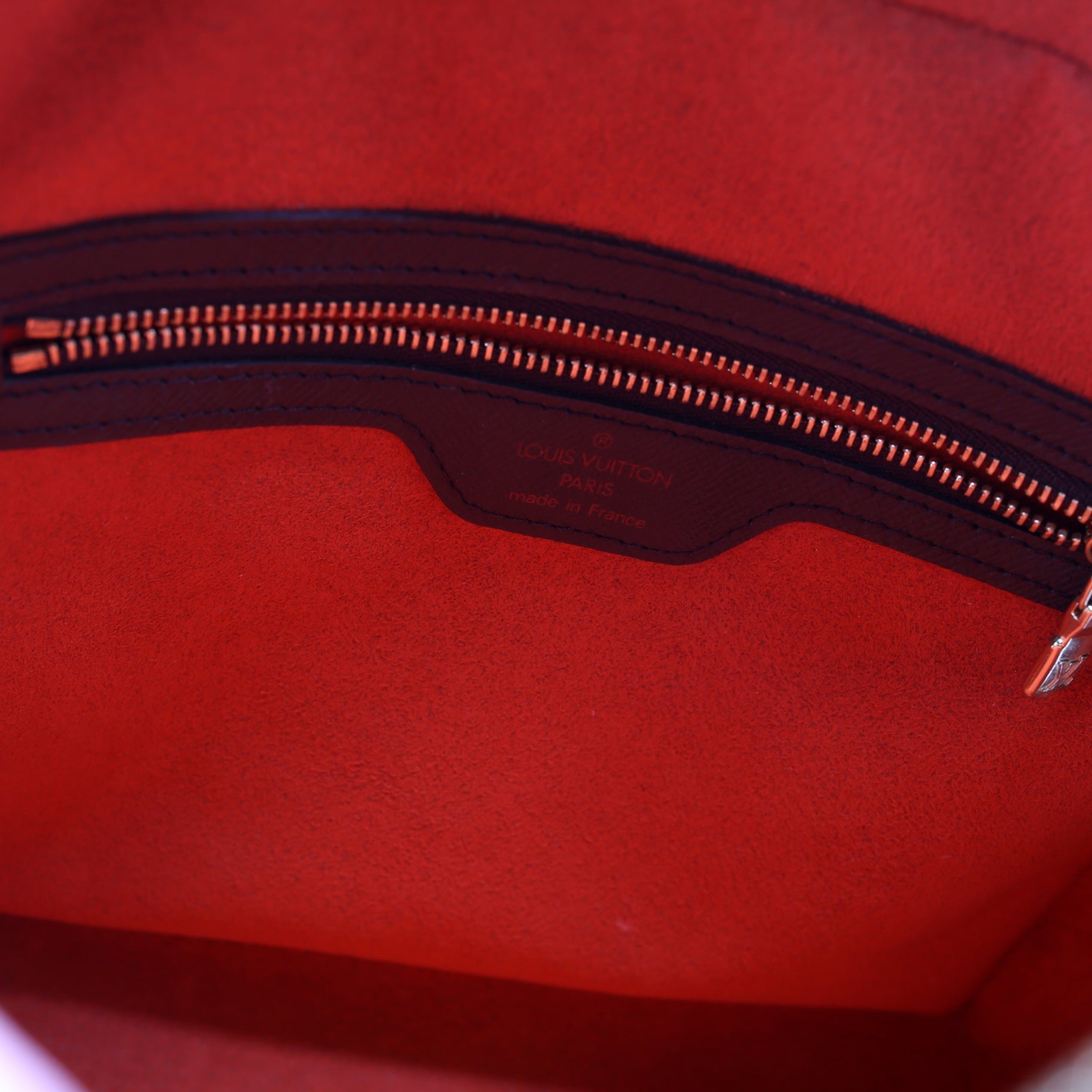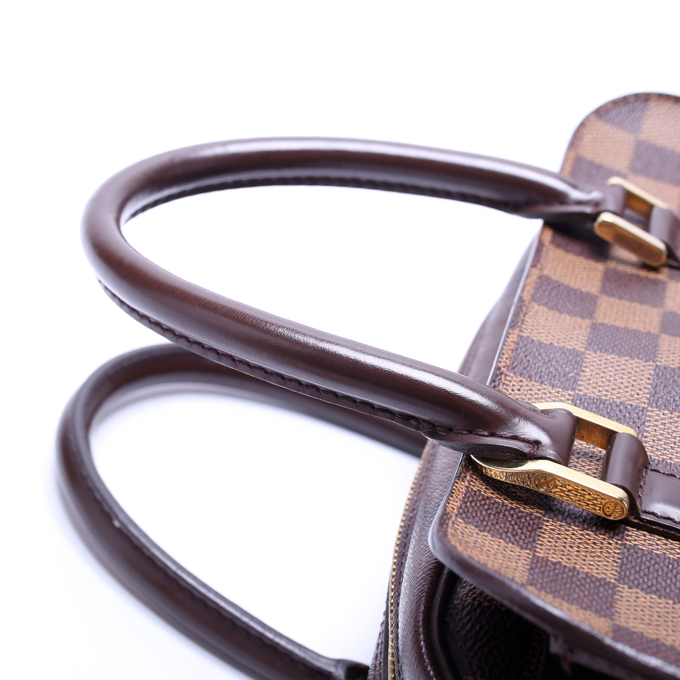 This Louis Vuitton Trianais eye catching bag. The exterior is in the classic Louis Vuitton Damier Ebene coated canvas.