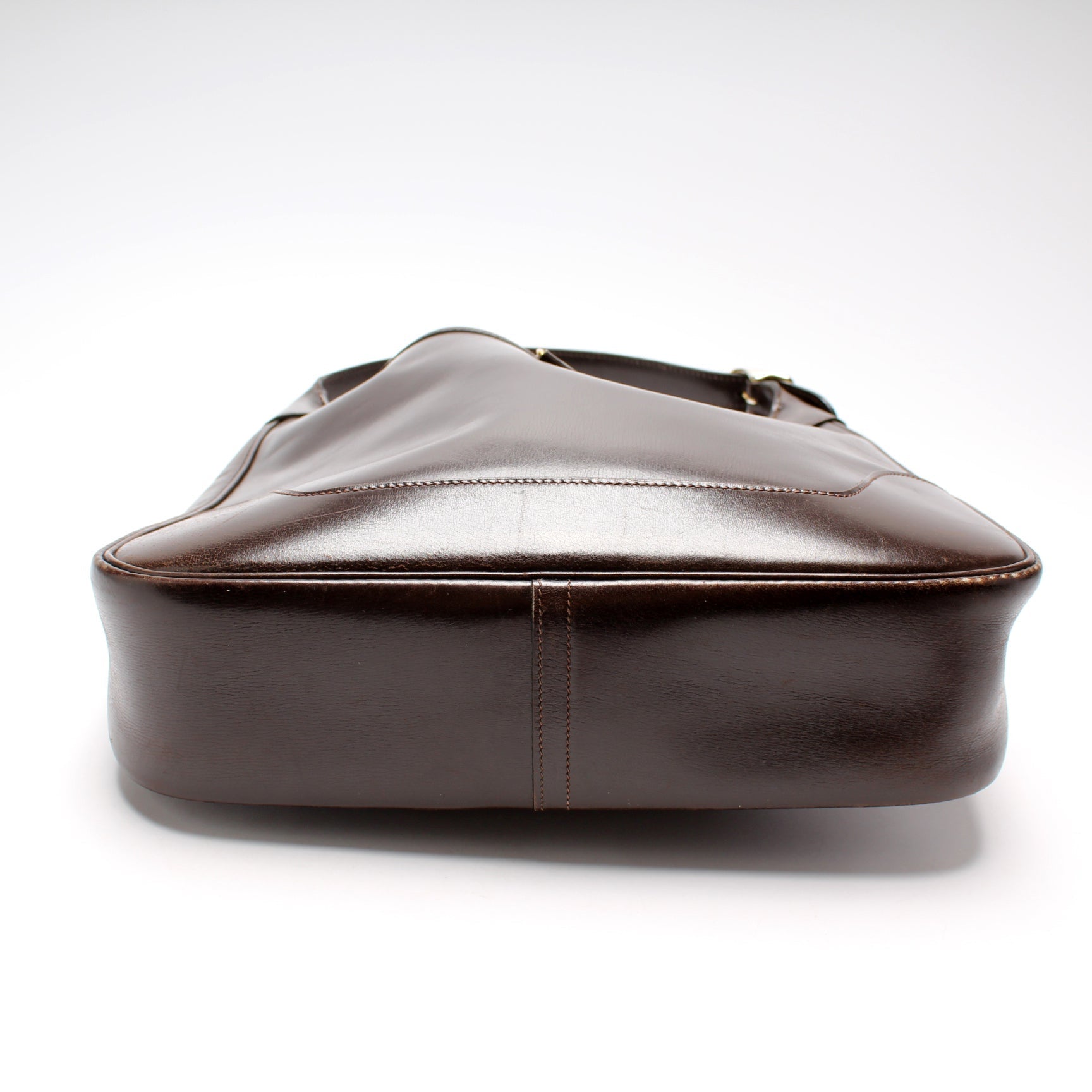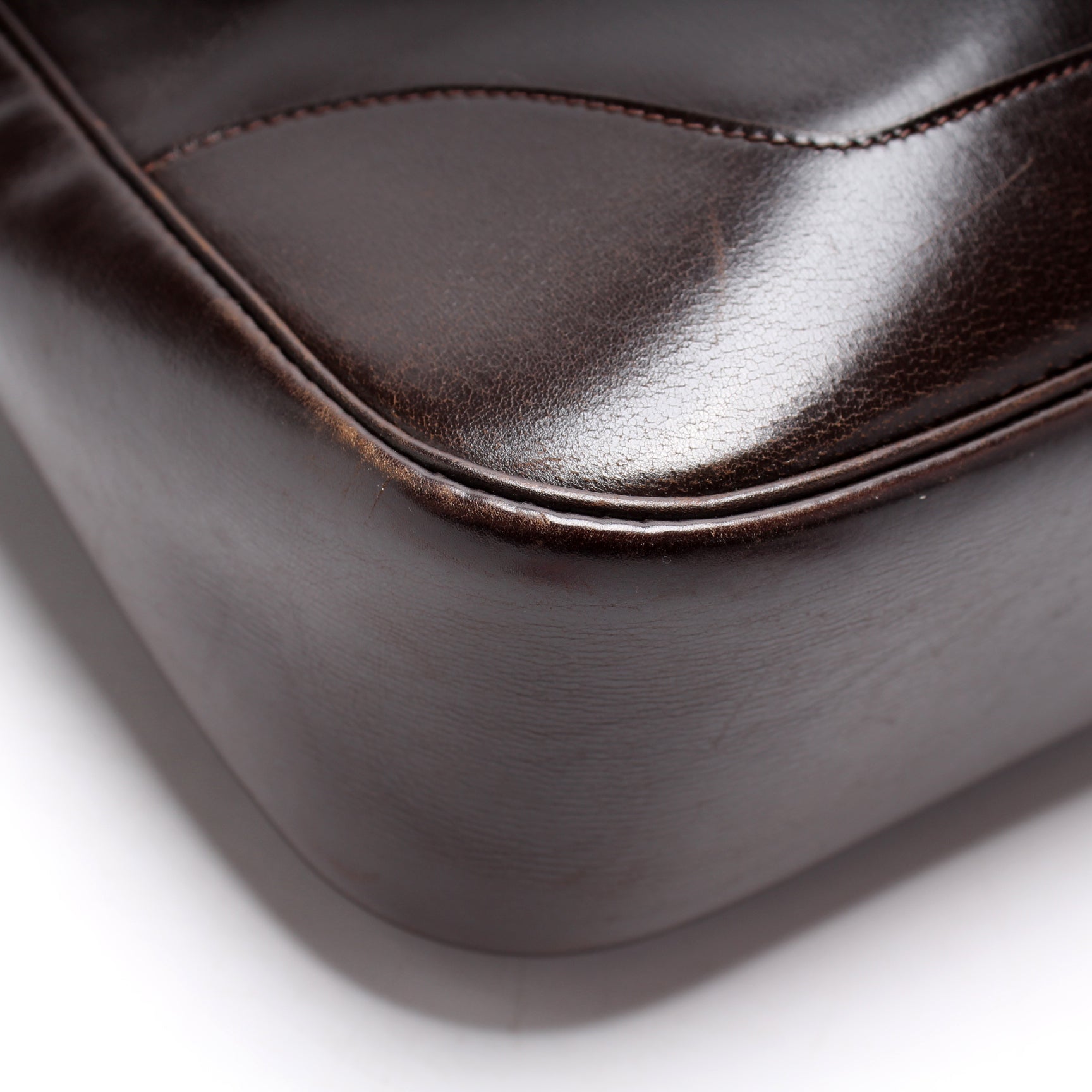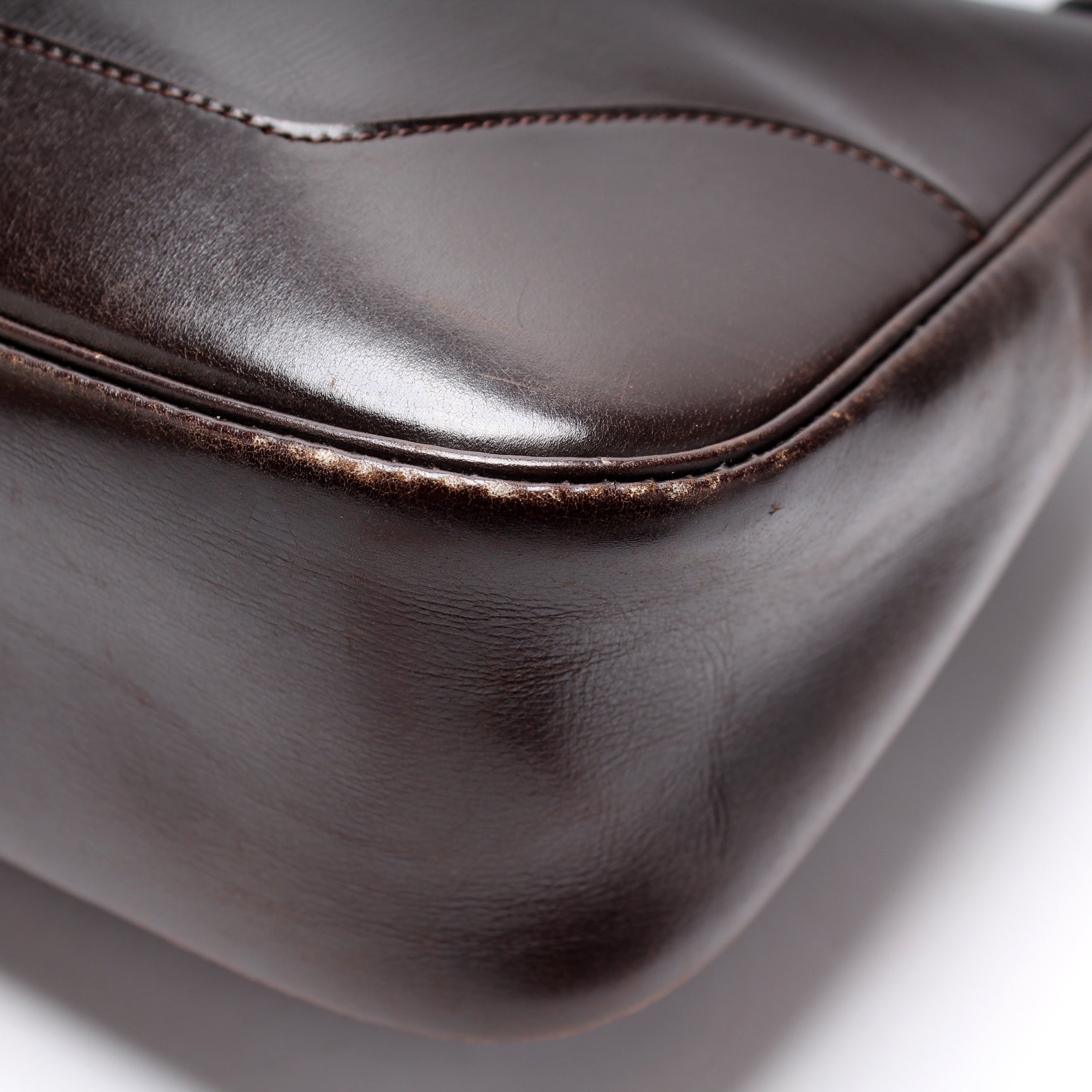 Exterior: The exterior leather has minor scuffs. The corners show minor wear.