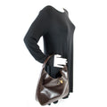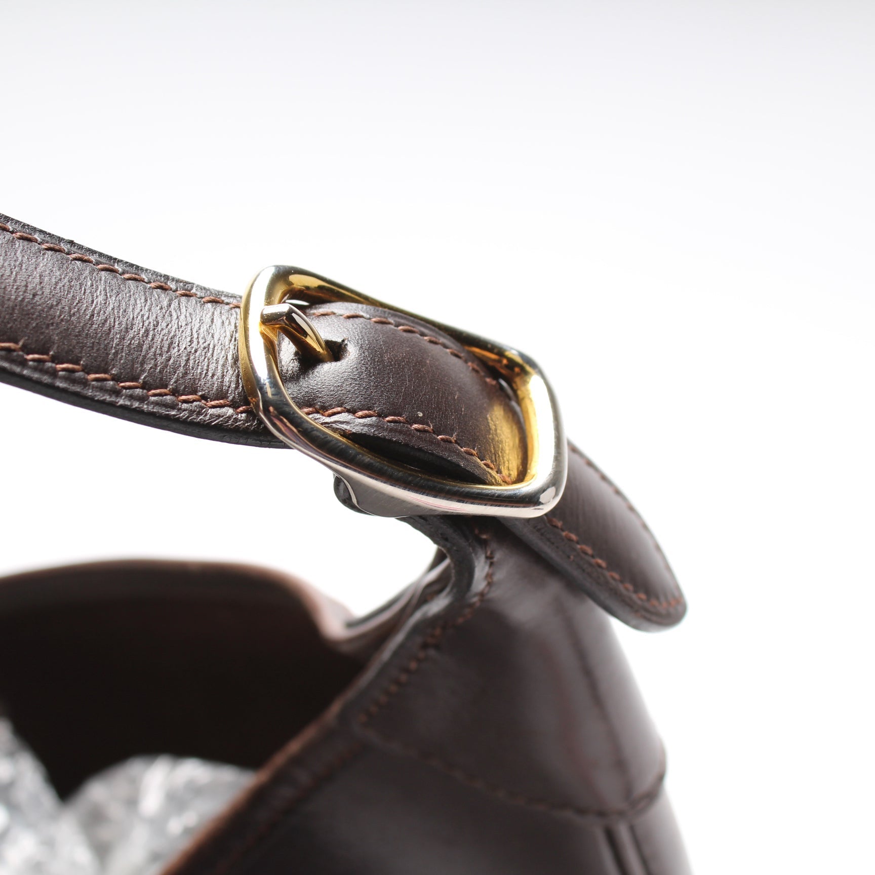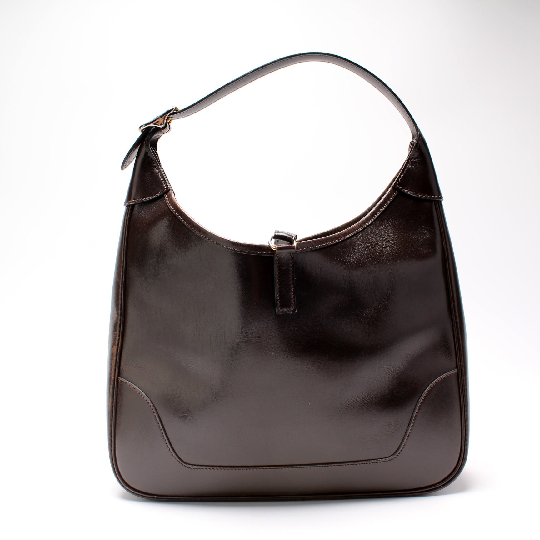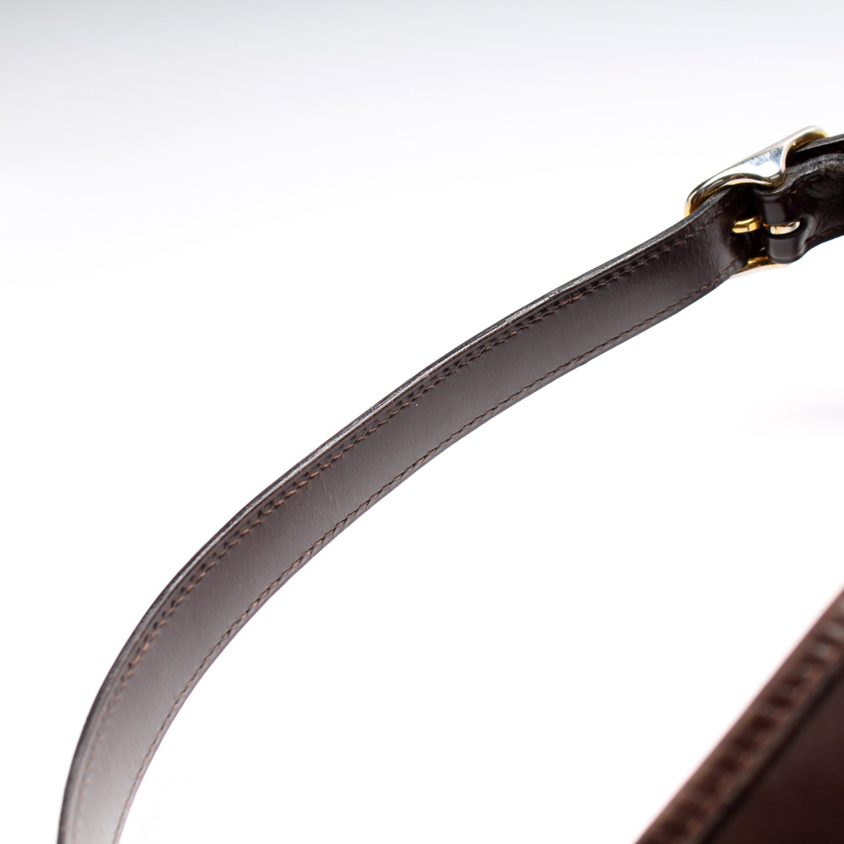Exterior: The exterior leather has minor scuffs. The corners show minor wear.
