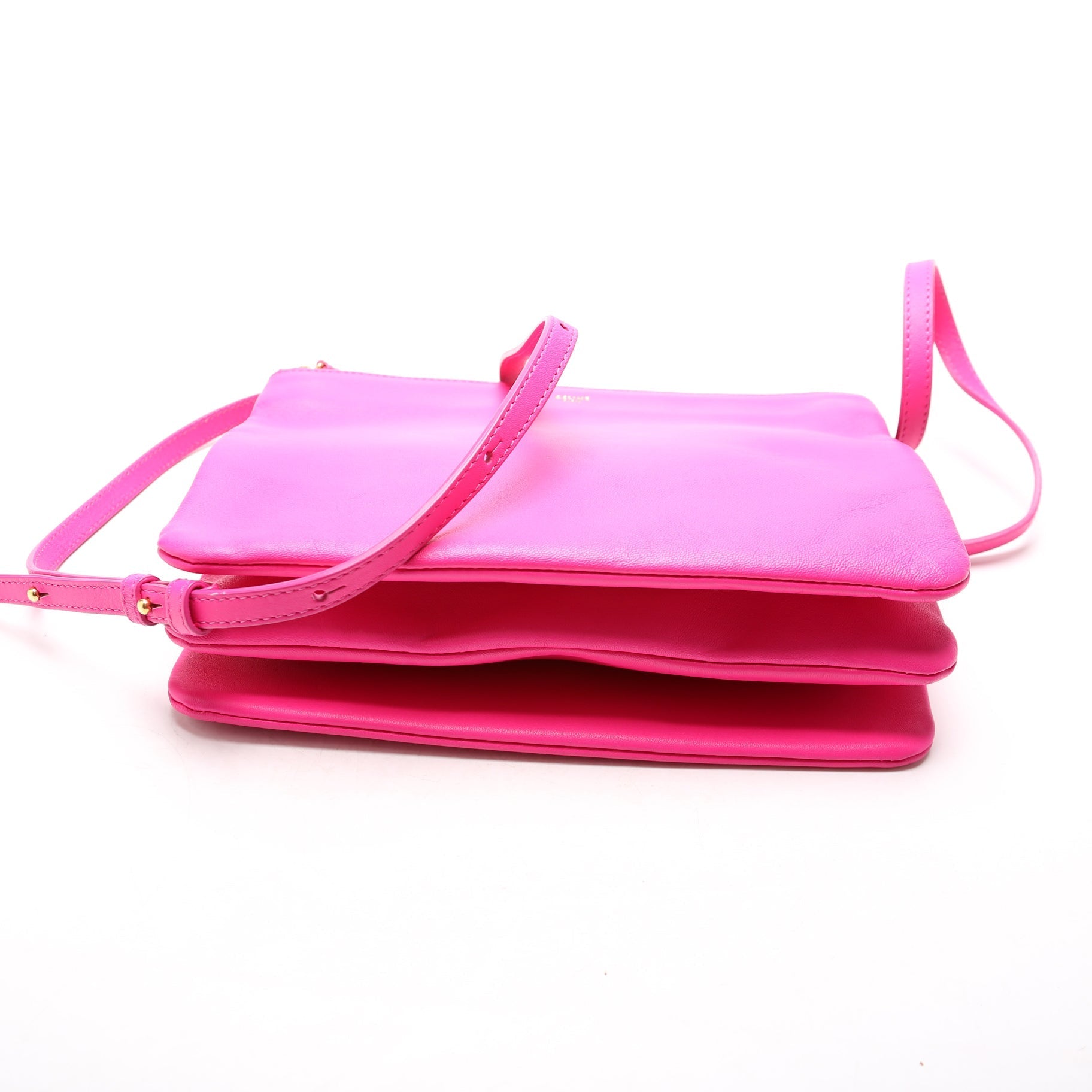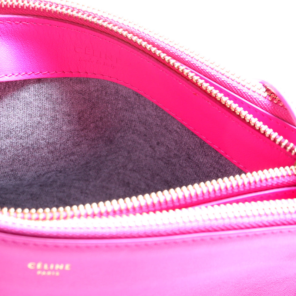 This Celine Trio Crossbody Largeis eye catching bag. The exterior is in the classic Celine calfskin leather.