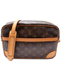 Exterior: The exterior Monogram coated canvas is free of any rips or cracks. The leather trim has minimal signs of wear.