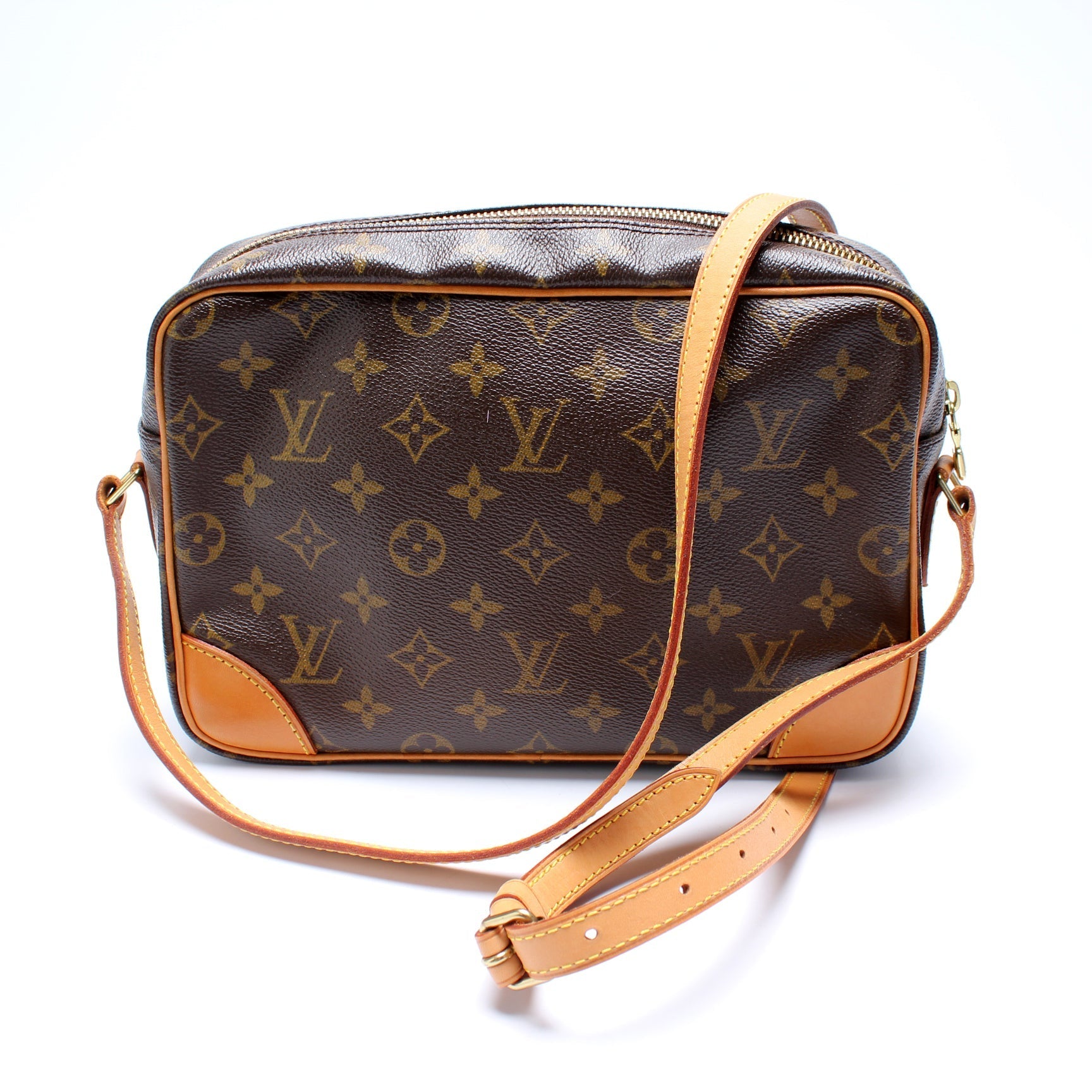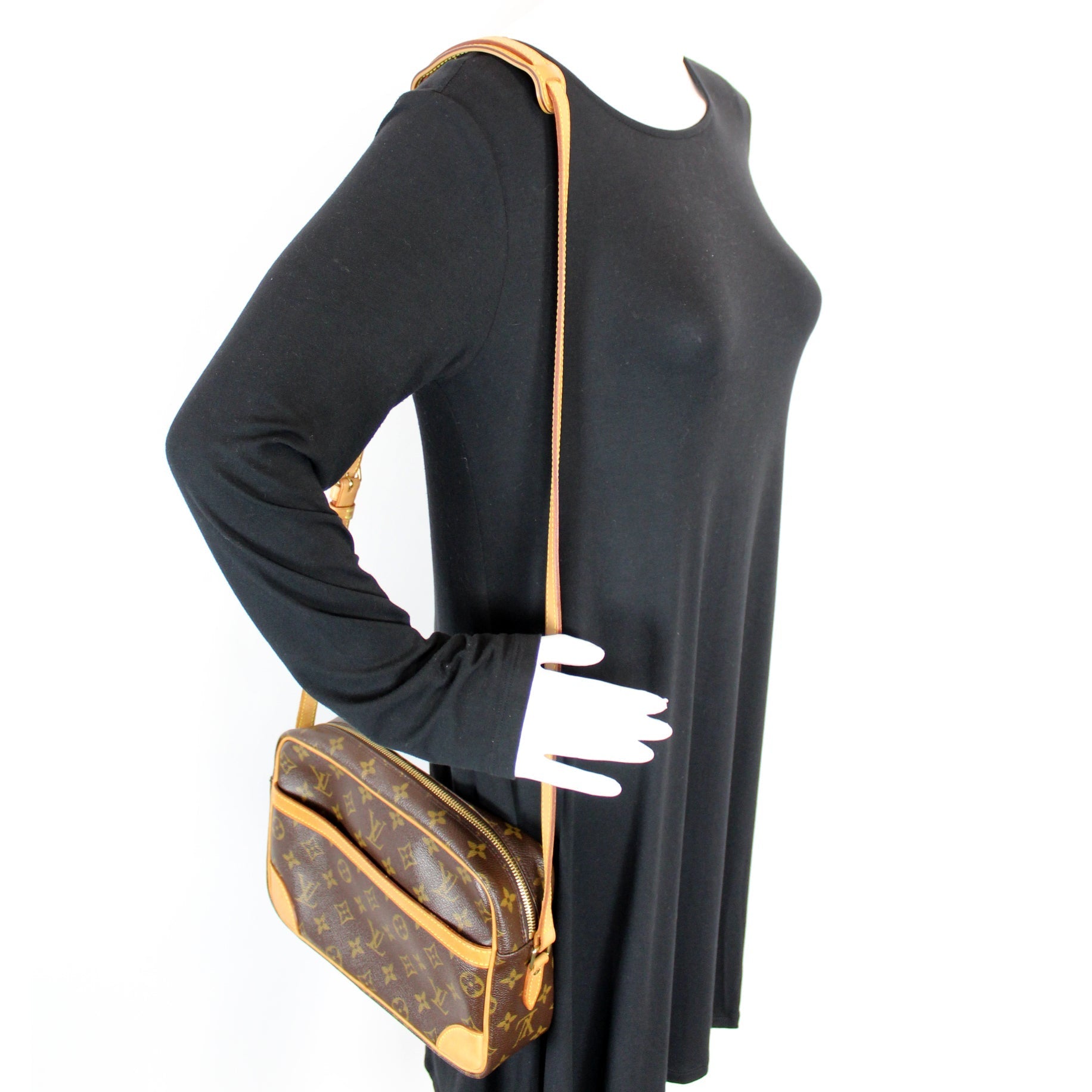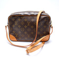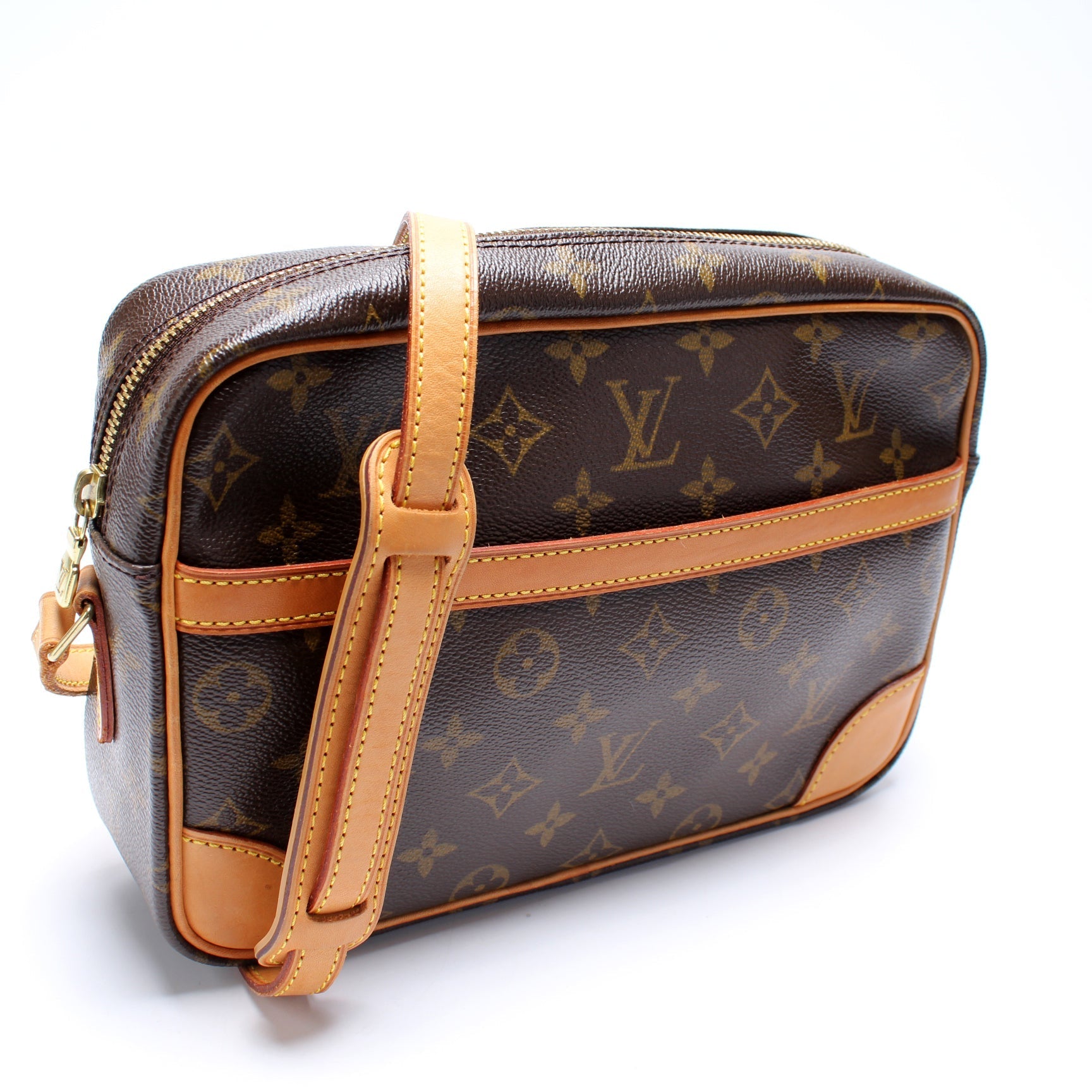 This Louis Vuitton Trcadero 27is eye catching bag. The exterior is in the classic Louis Vuitton Monogram coated canvas.