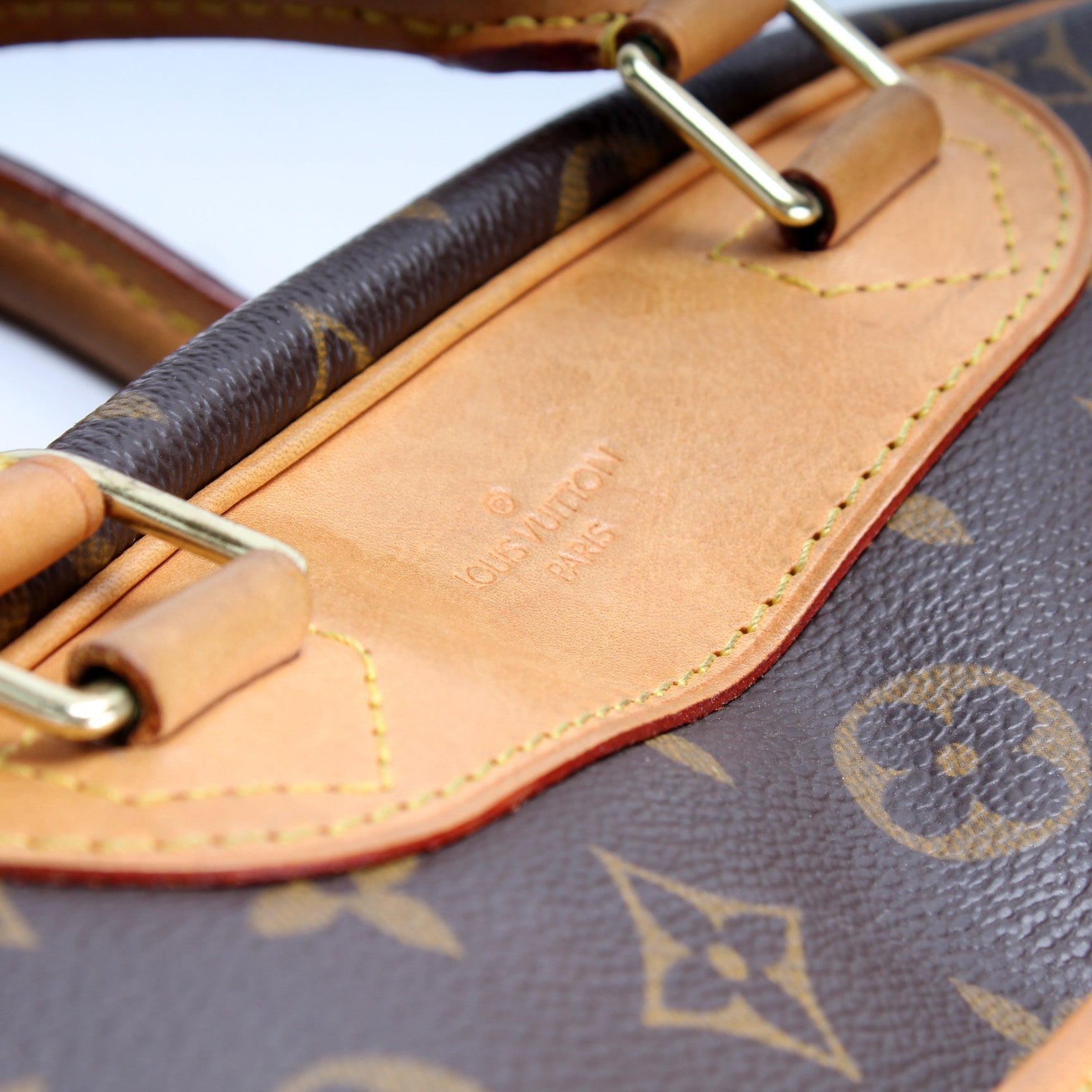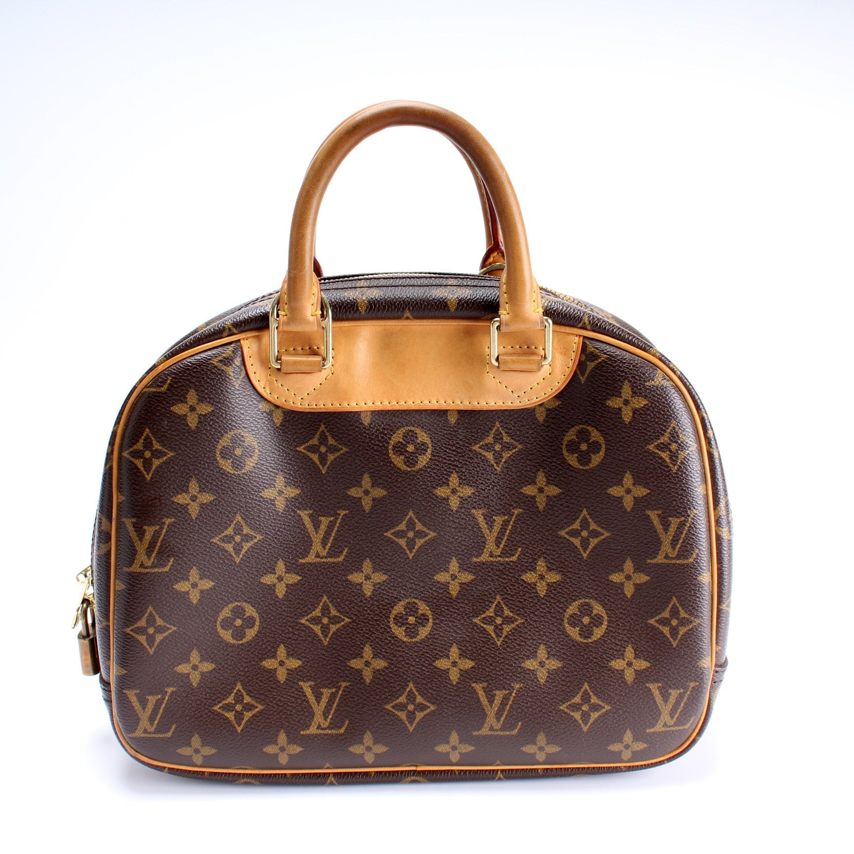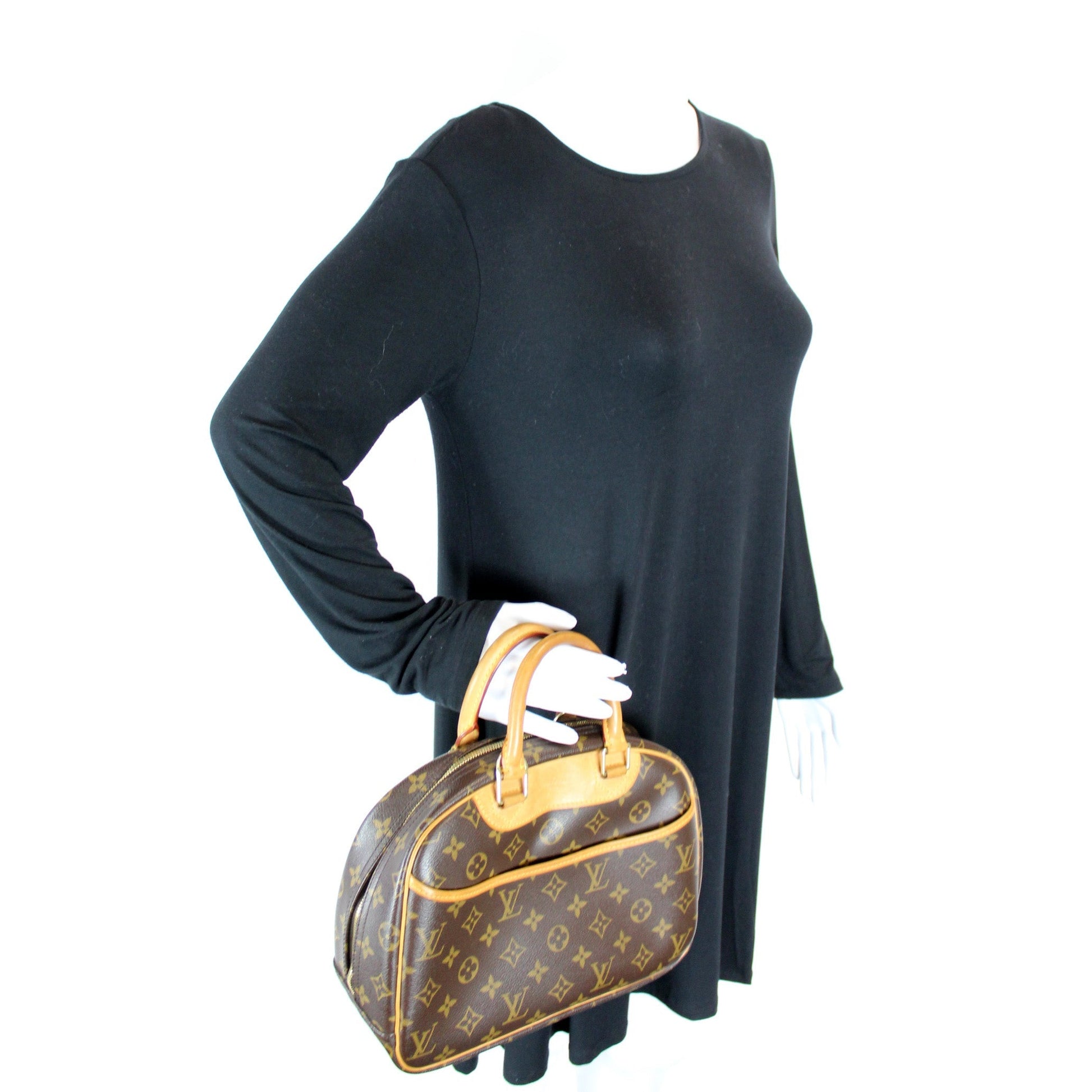 This Louis Vuitton Trouvilleis eye catching bag. The exterior is in the classic Louis Vuitton Monogram coated canvas.