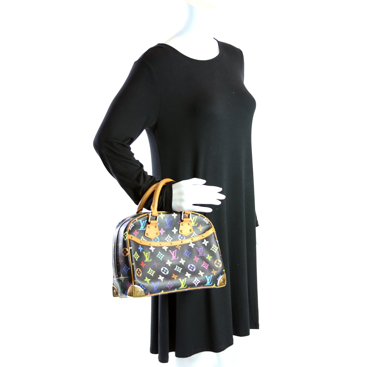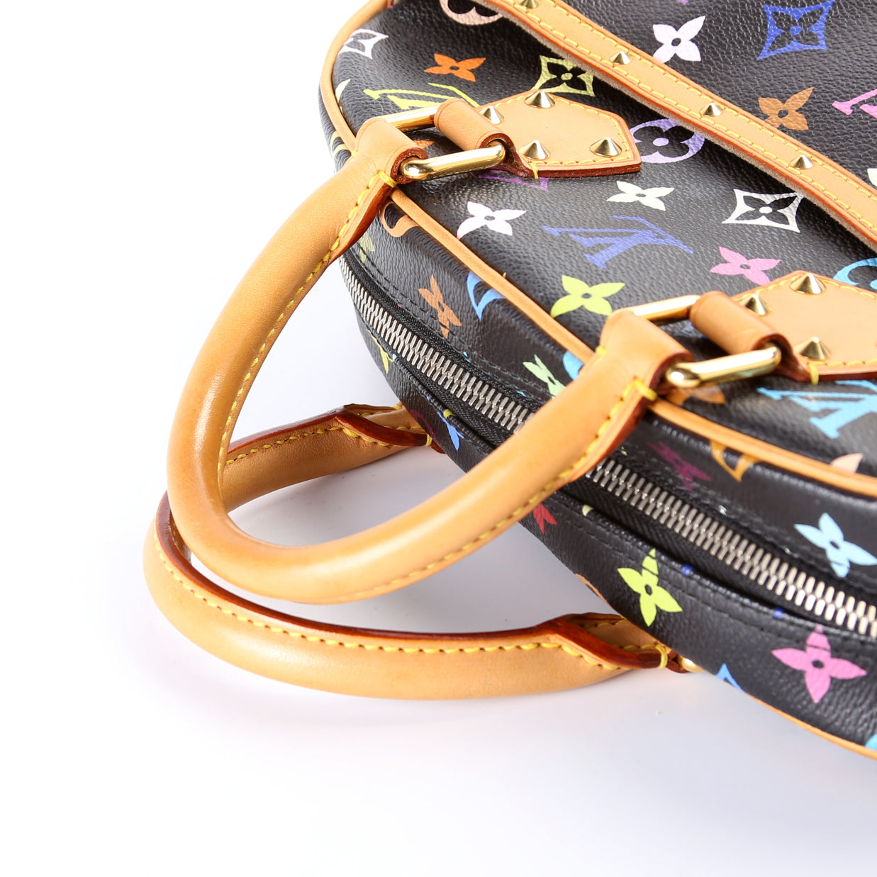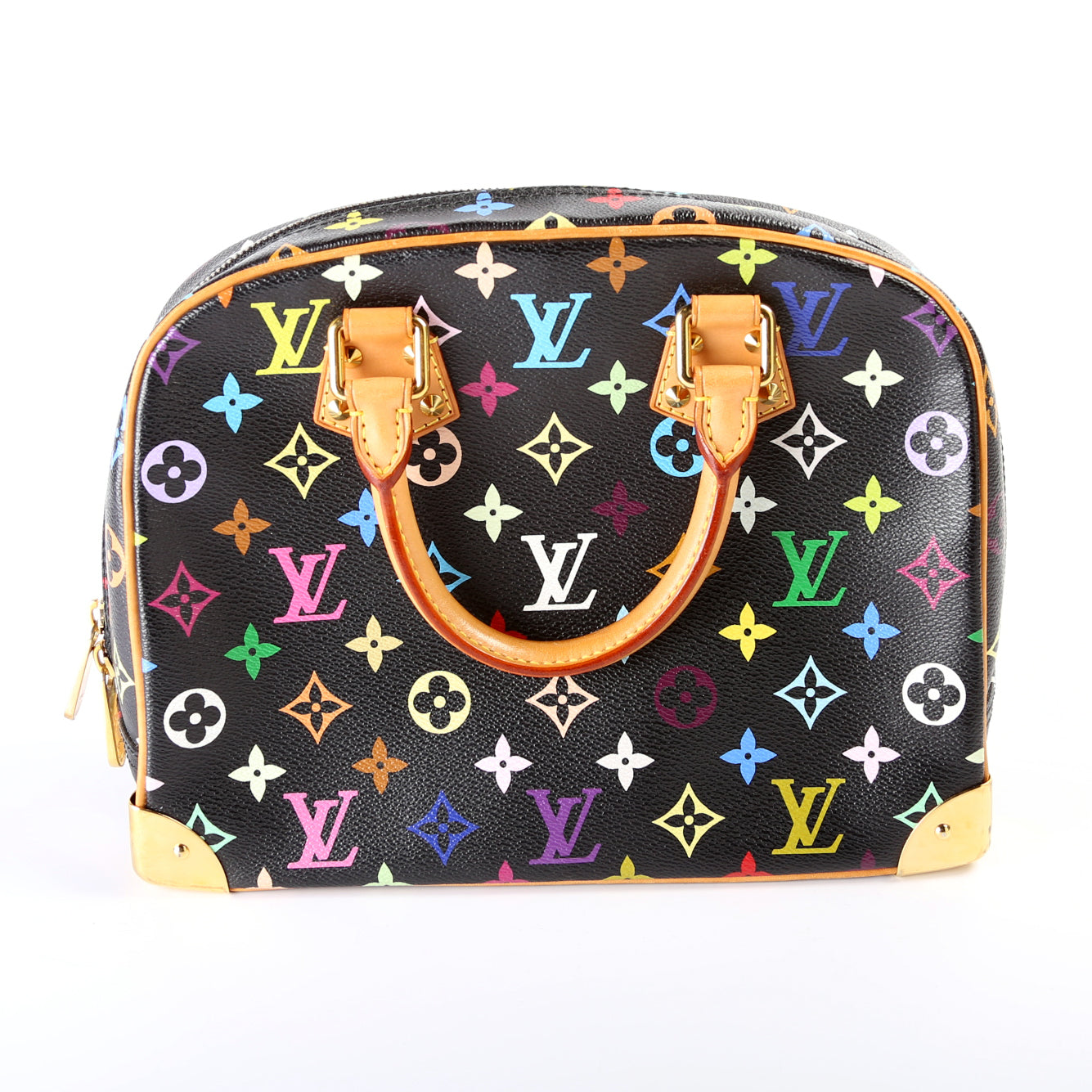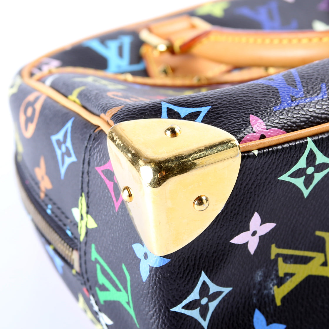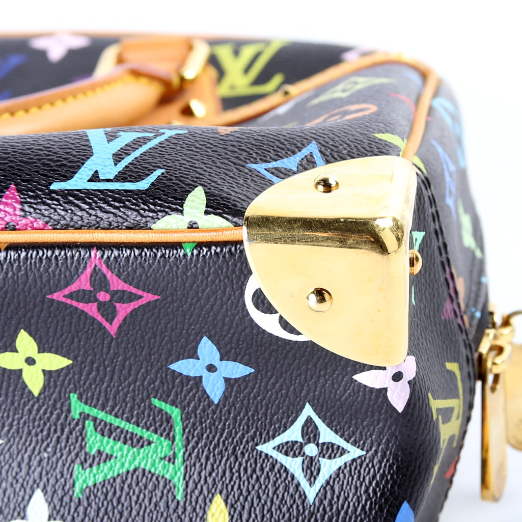 This Louis Vuitton Trouvilleis eye catching bag. The exterior is in the classic Louis Vuitton Multicolore coated canvas.