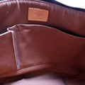 Exterior: The exterior coated canvas is free of any rips or cracks. The exterior features a flap pocket. The leather has discoloration and wear throughout as pictured. The corners show wear.