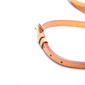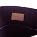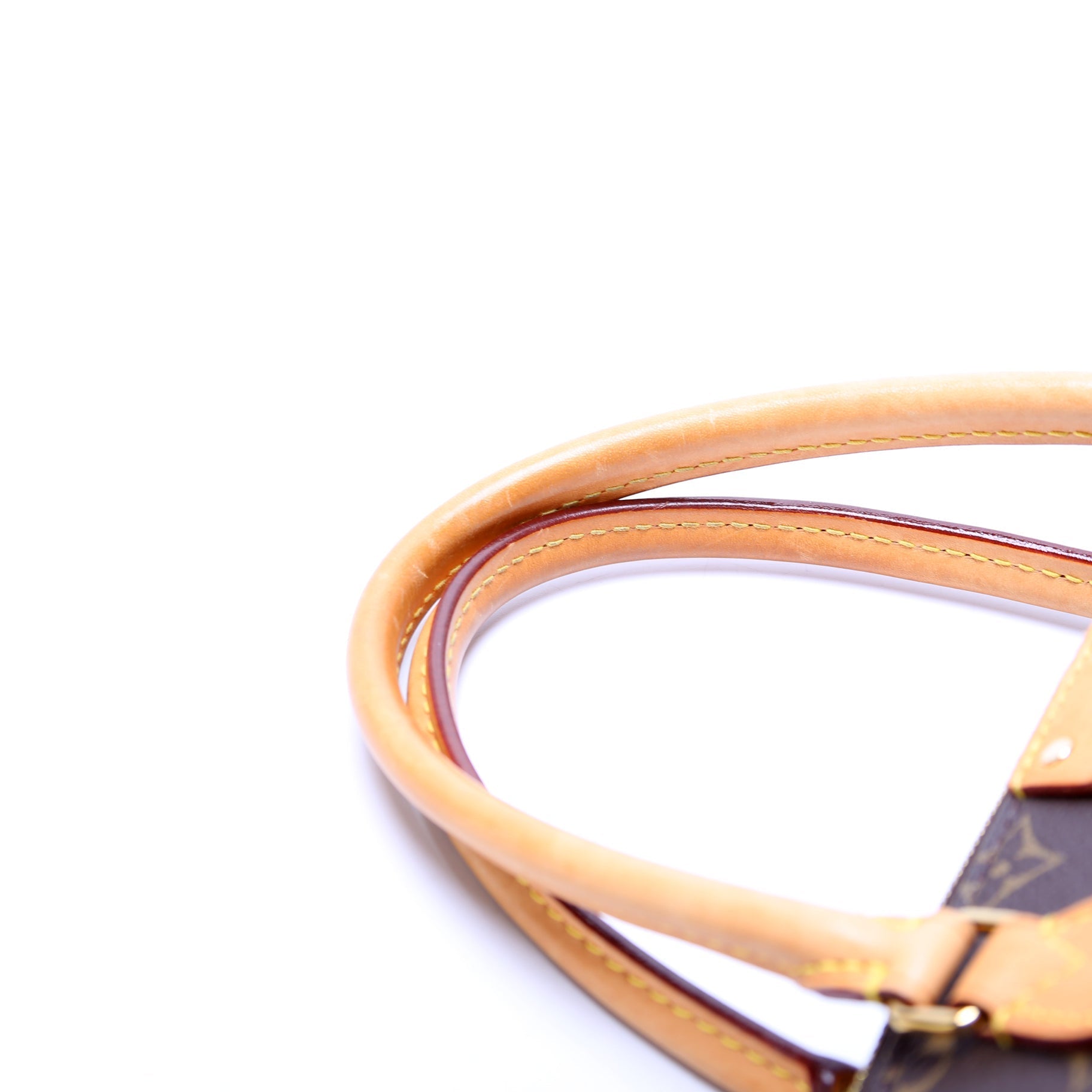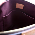 Exterior: The exterior coated canvas is free from any major signs of wear. The corners show minimal wear. The leather tabs show minor wear and discoloration.