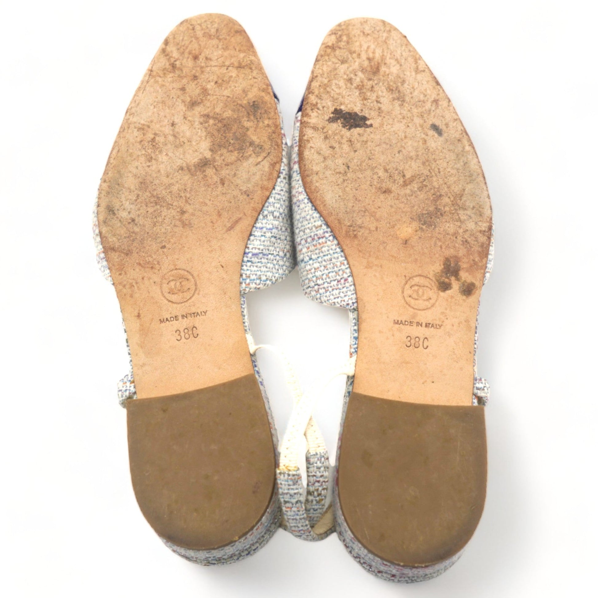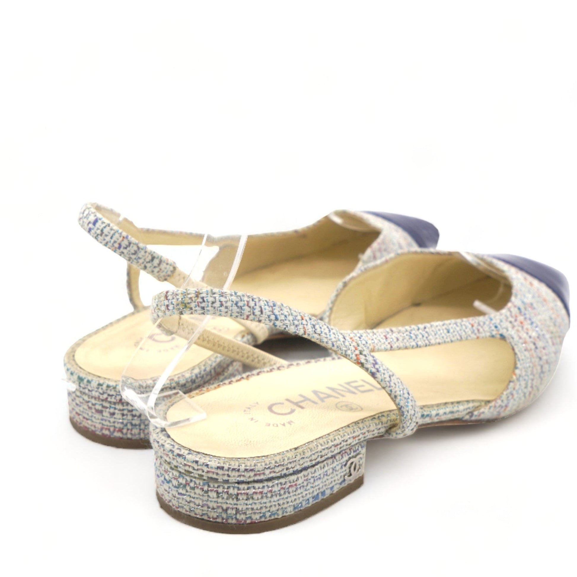 Chanel Tweed Cap Toe Singback Pumps Blue 38