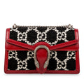 Inspired by the Greek God of wine and celebration, the Gucci Dionysus is an absolute must have for any woman with a love for luxury and a special spot for monograms. An instant classic, the Dionysus has become one of the most coveted bags of the past five years. The perfect companion for any and every occasion, you can easily pair your Dionysus with anything in your wardrobe. Decorated with the GG Supreme print, in a playful twist combining different materials and fabrics for this limited edition piece. Crafted from whitened black tweed fabrics and finished with a red leather trim, and of course the signature tiger clasp, this shoulder bag can easily fit all your every day essentials comfortably inside. Sleek, stylish and sophisticated, this stunning bag is the perfect balance between feminine and edgy. A classic piece you'll have for life, the Dionysus is one you'll never fall out of love with.