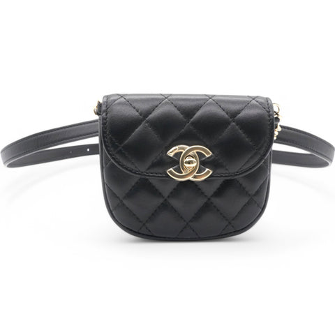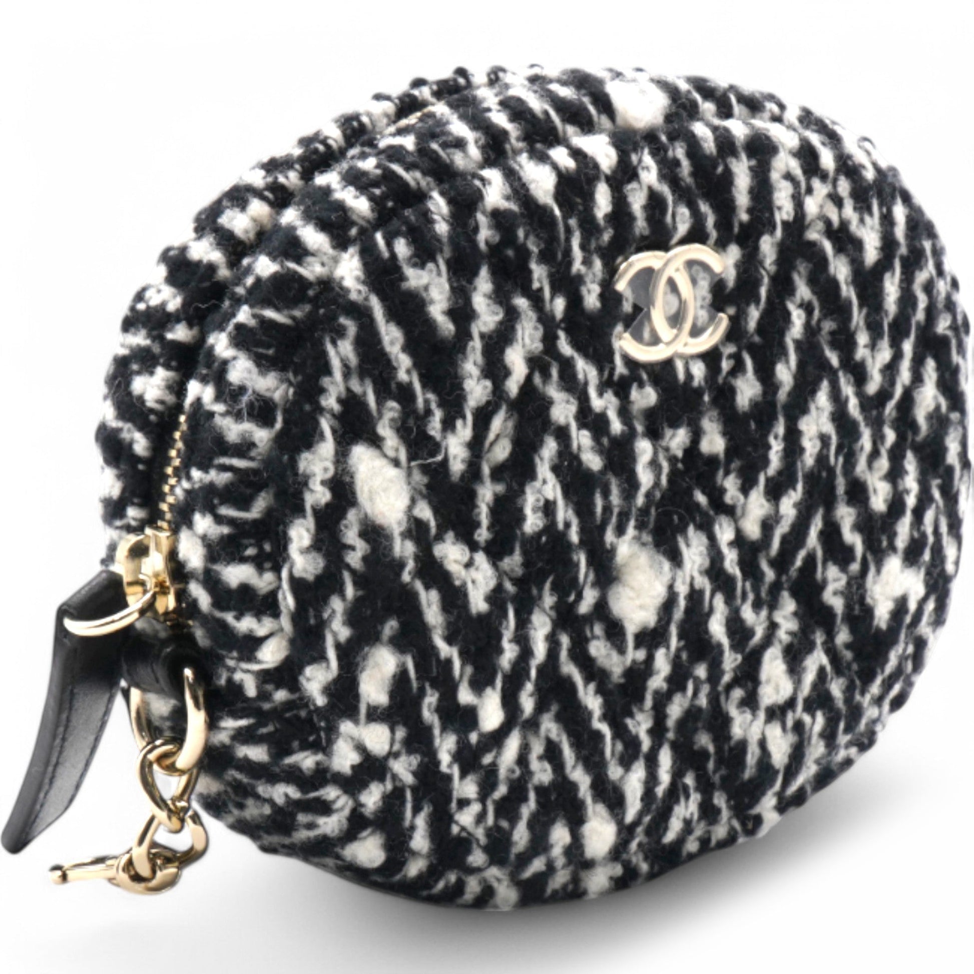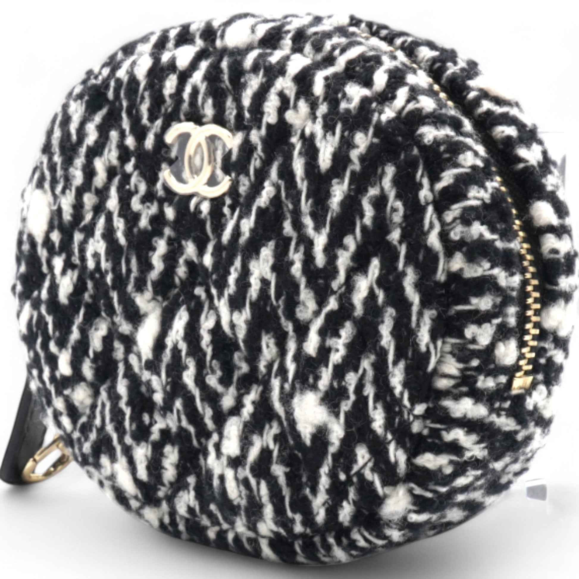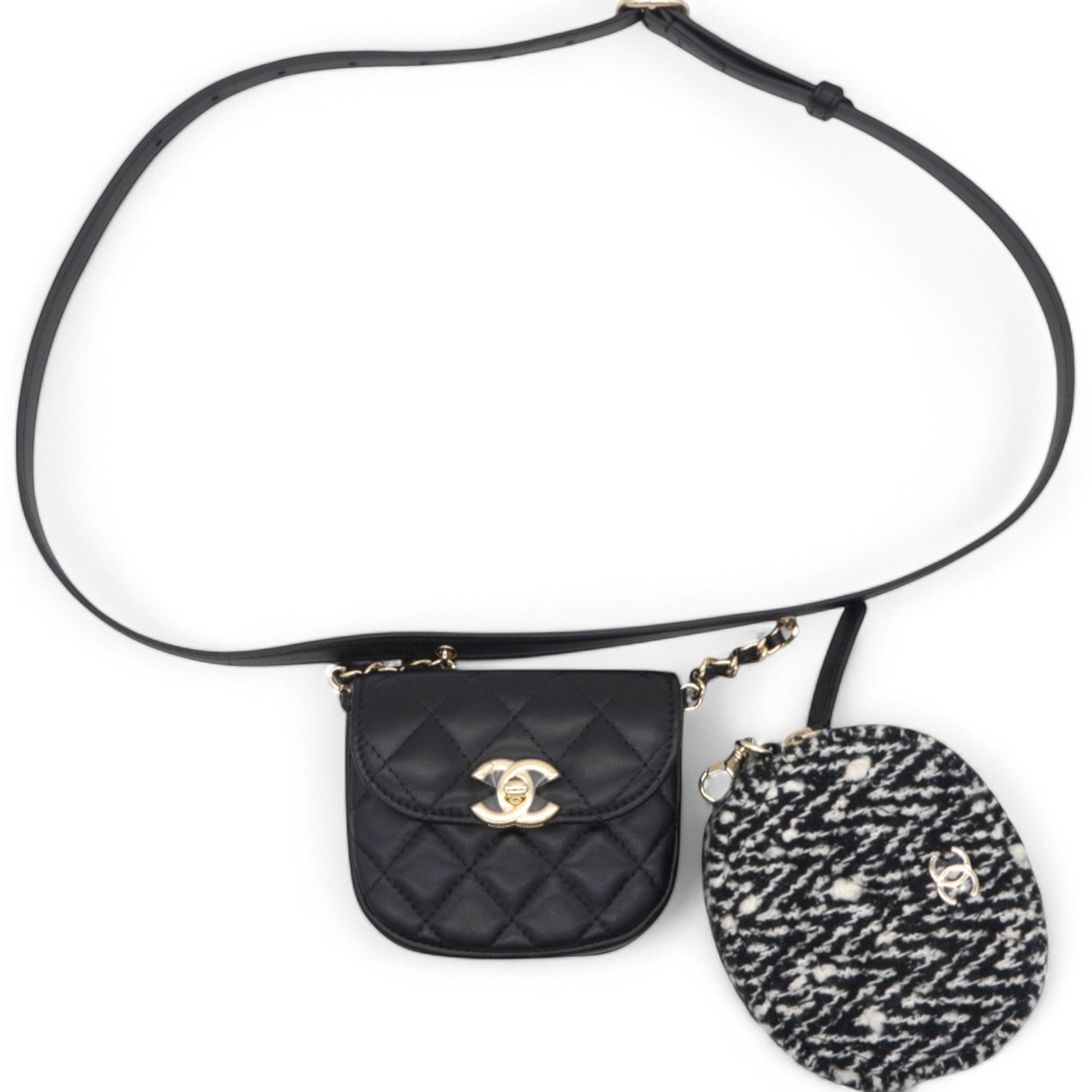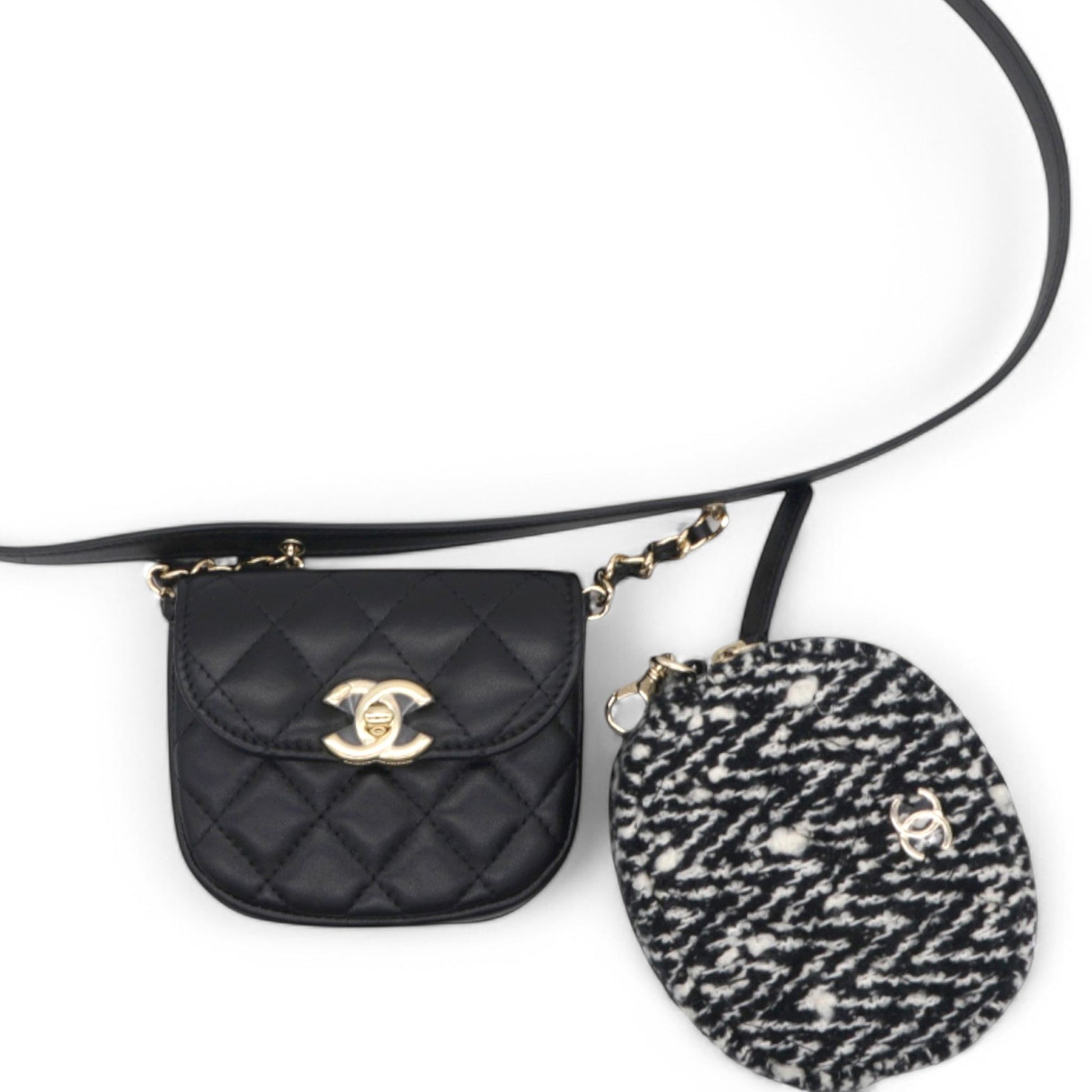 Chanel Tweed Lambskin Quilted Waist Bag With Coin Purse Black