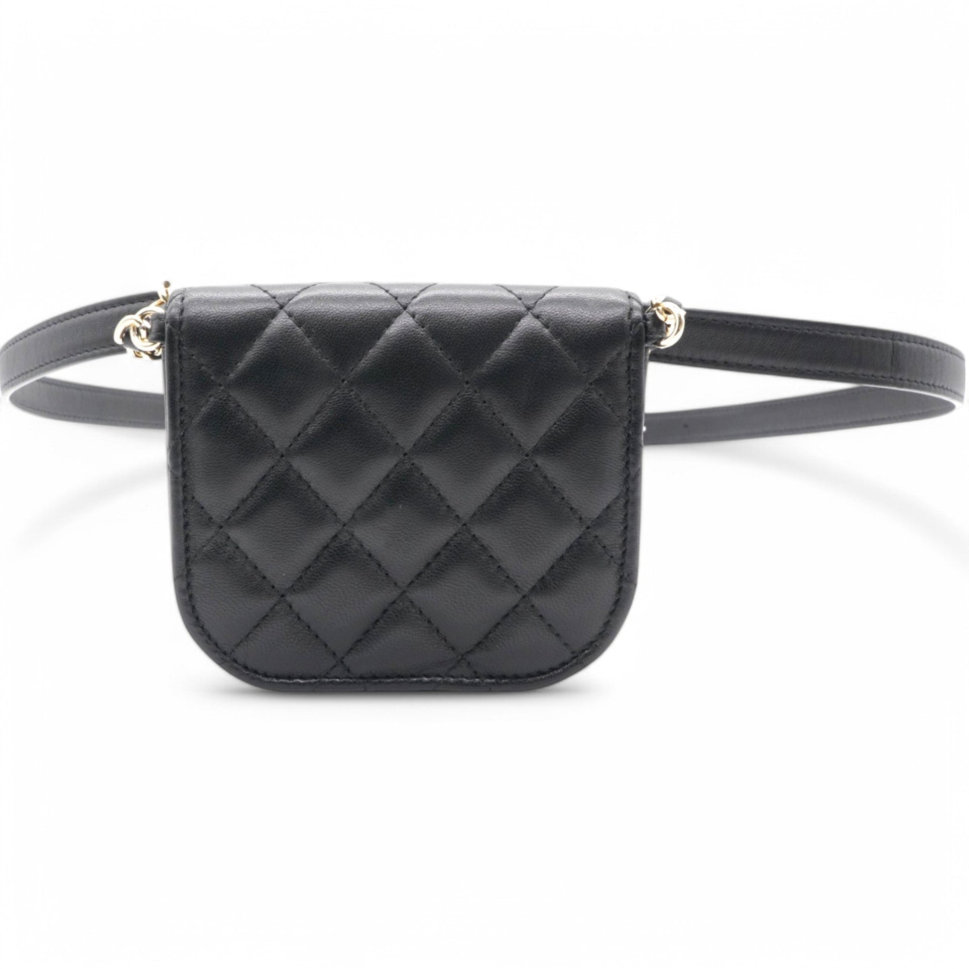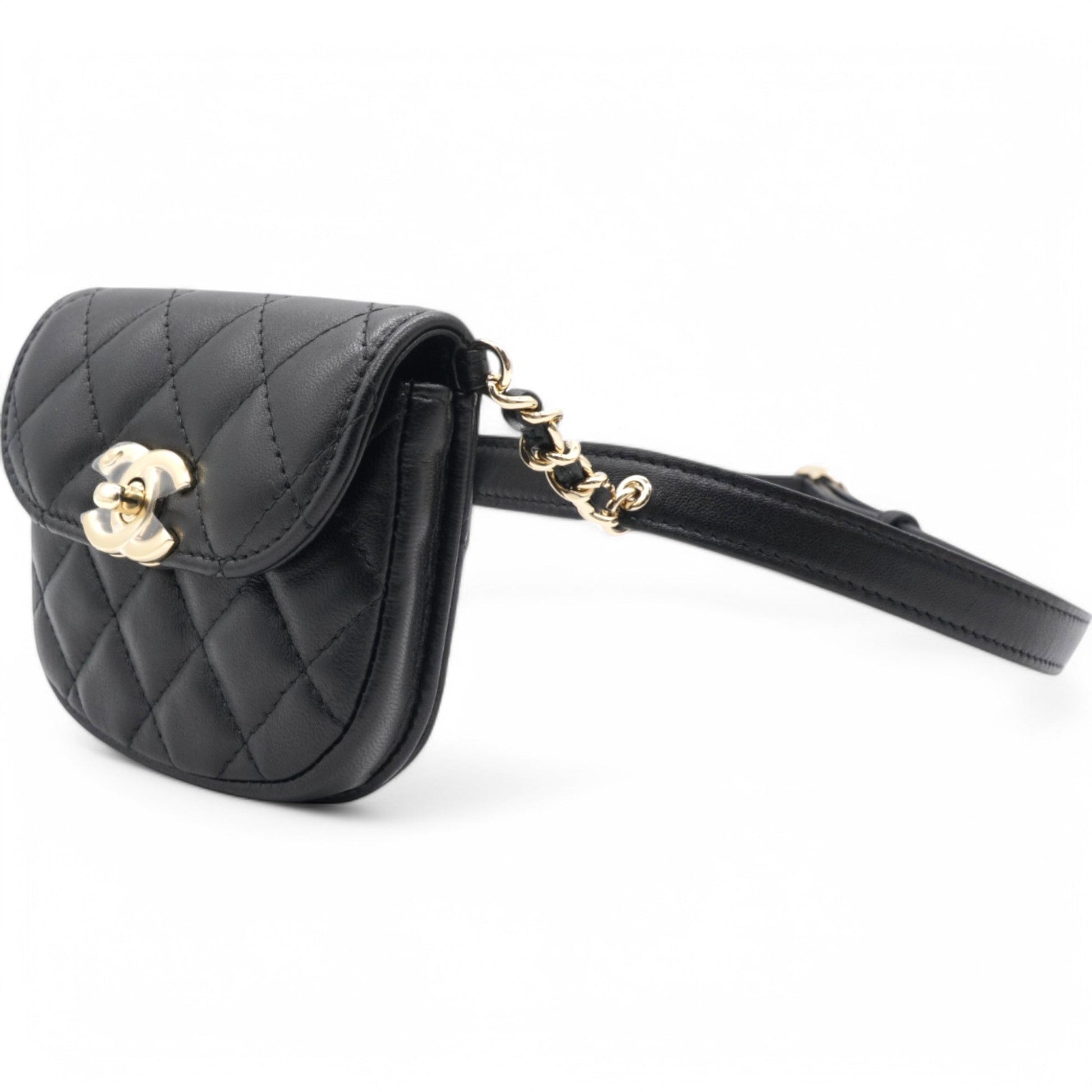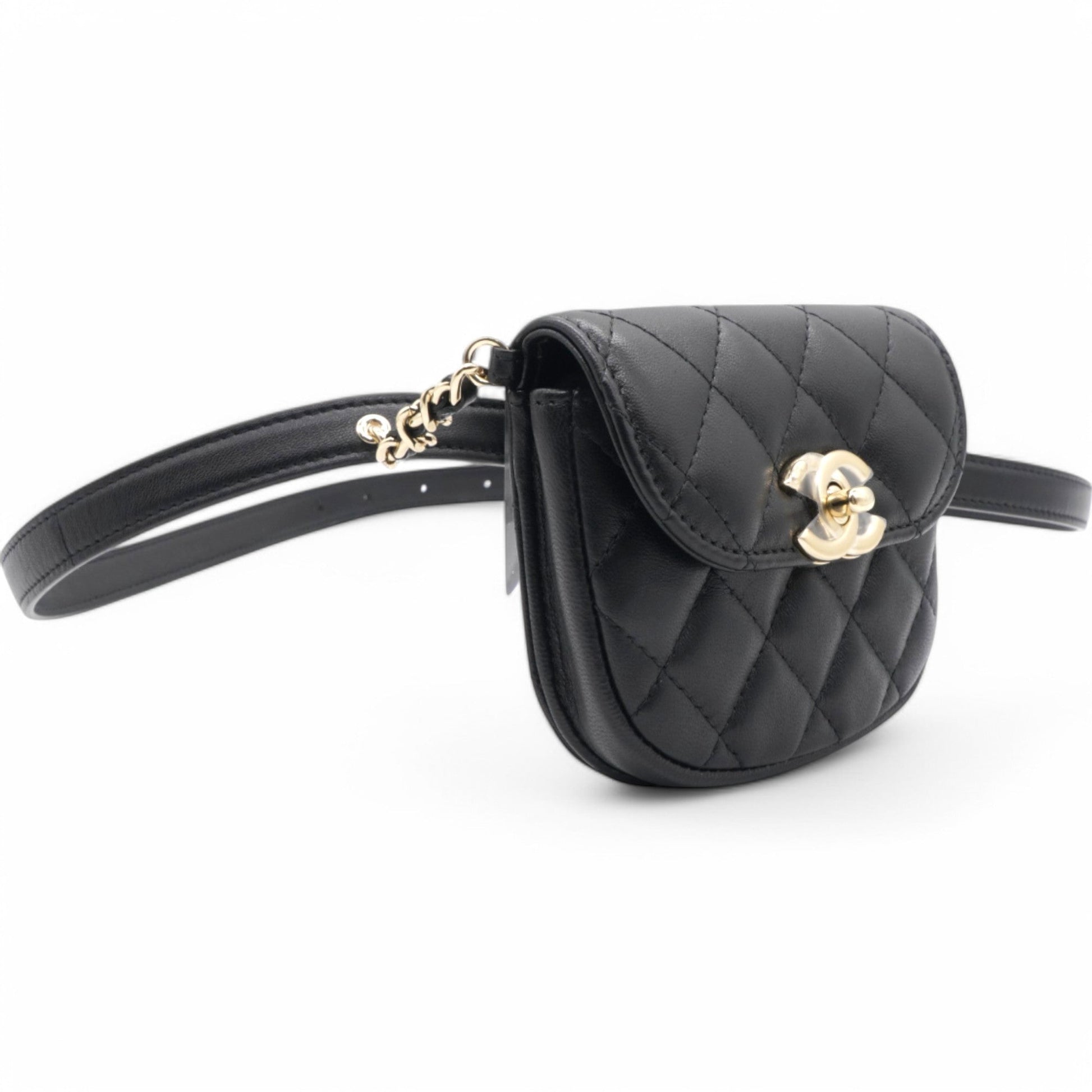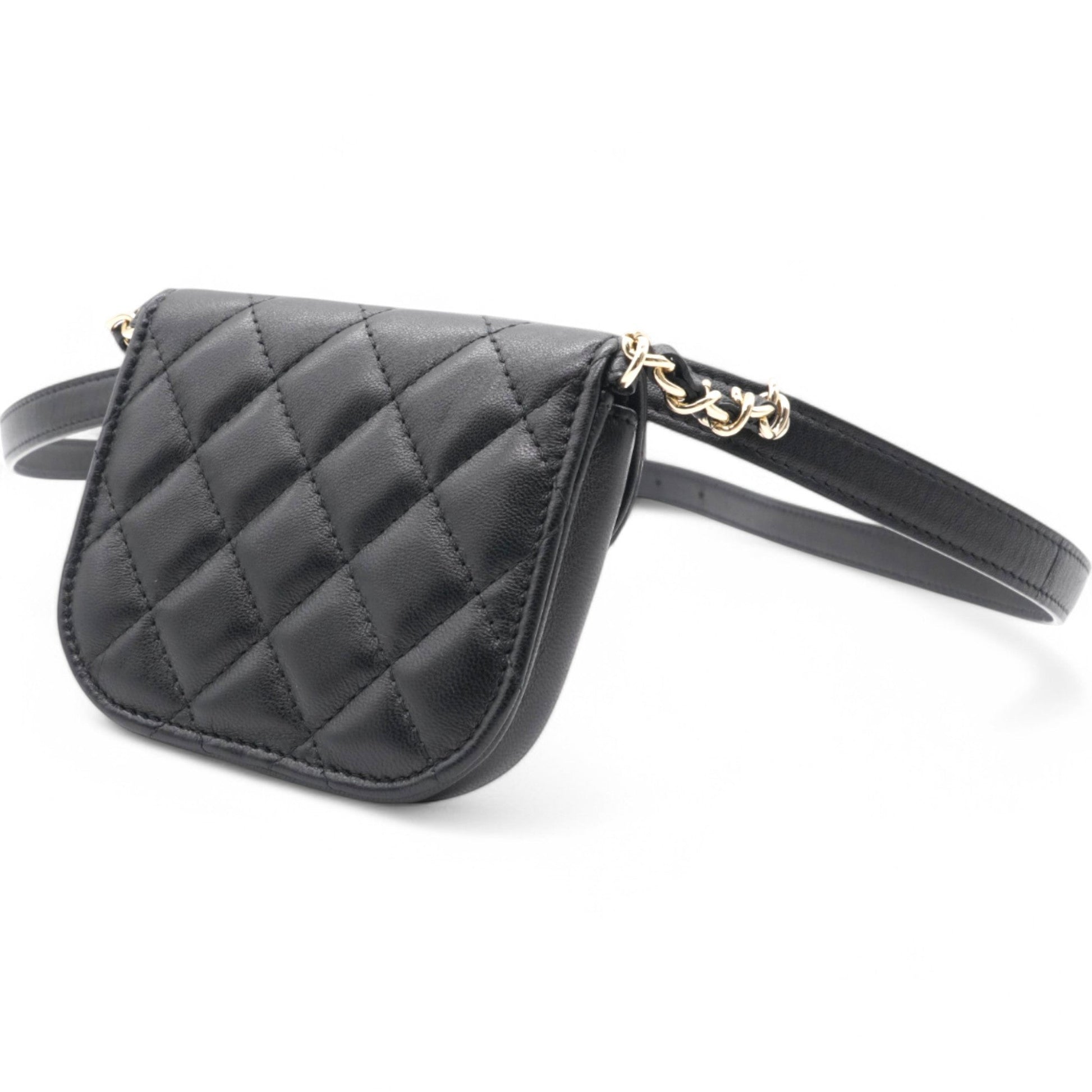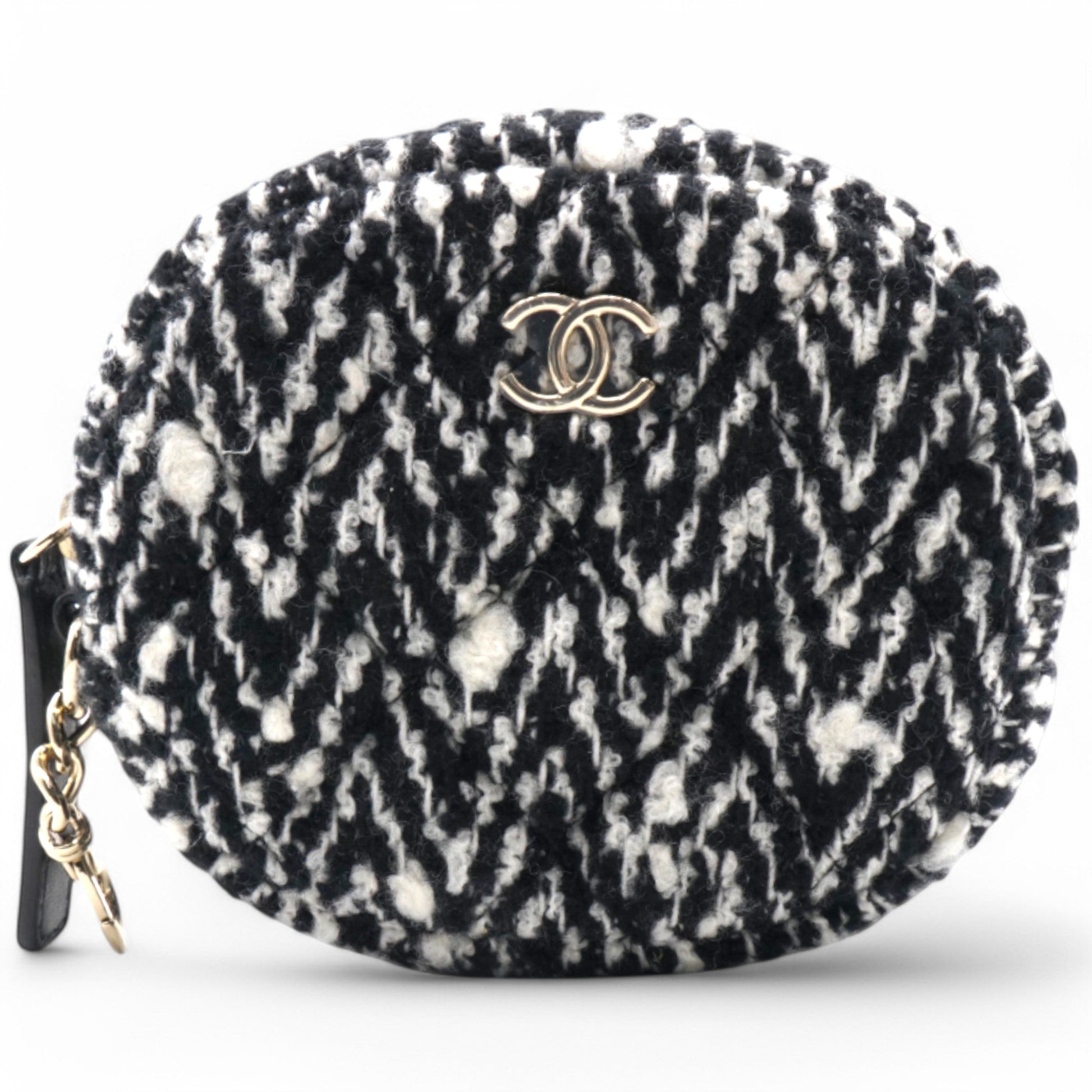 Chanel Tweed Lambskin Quilted Waist Bag With Coin Purse Black