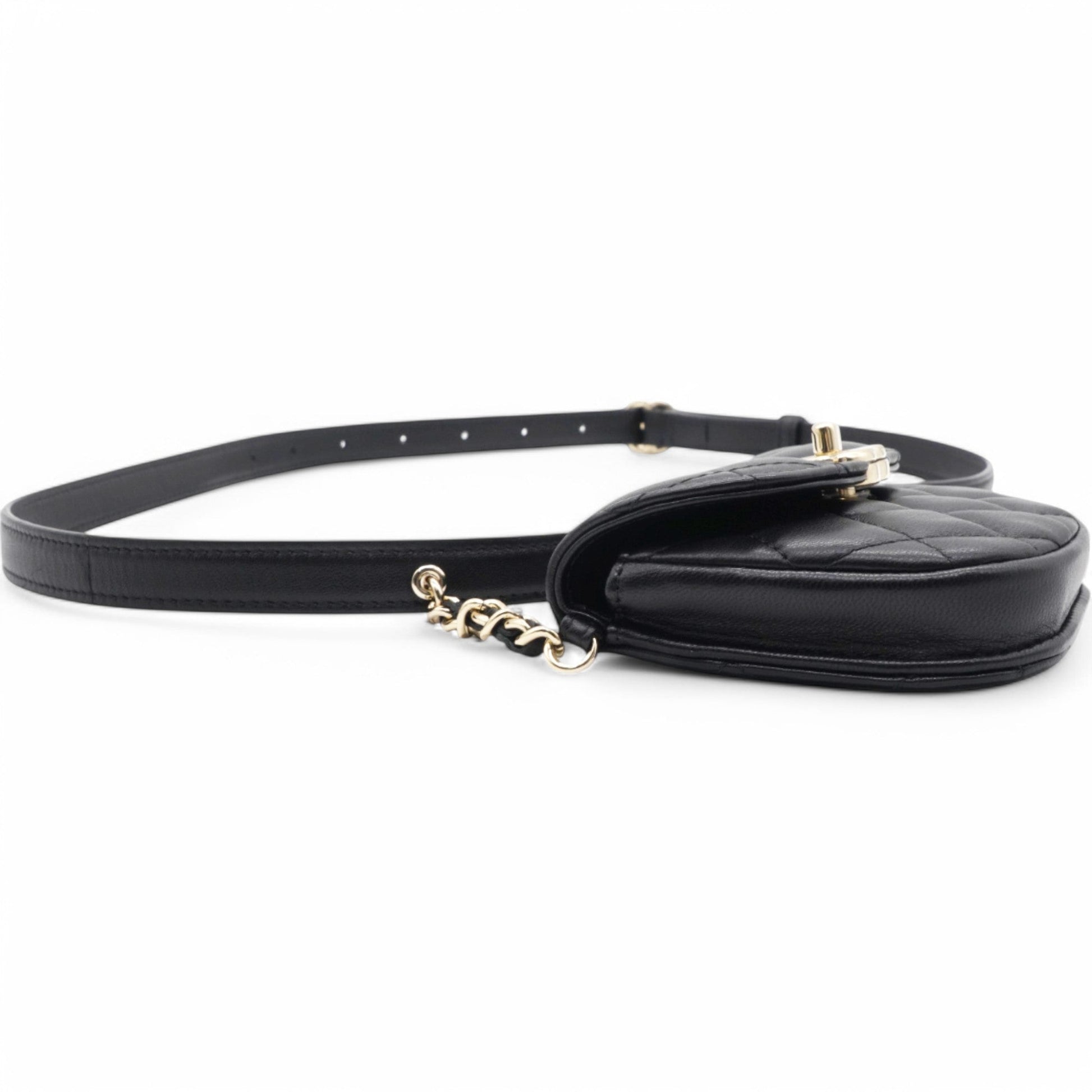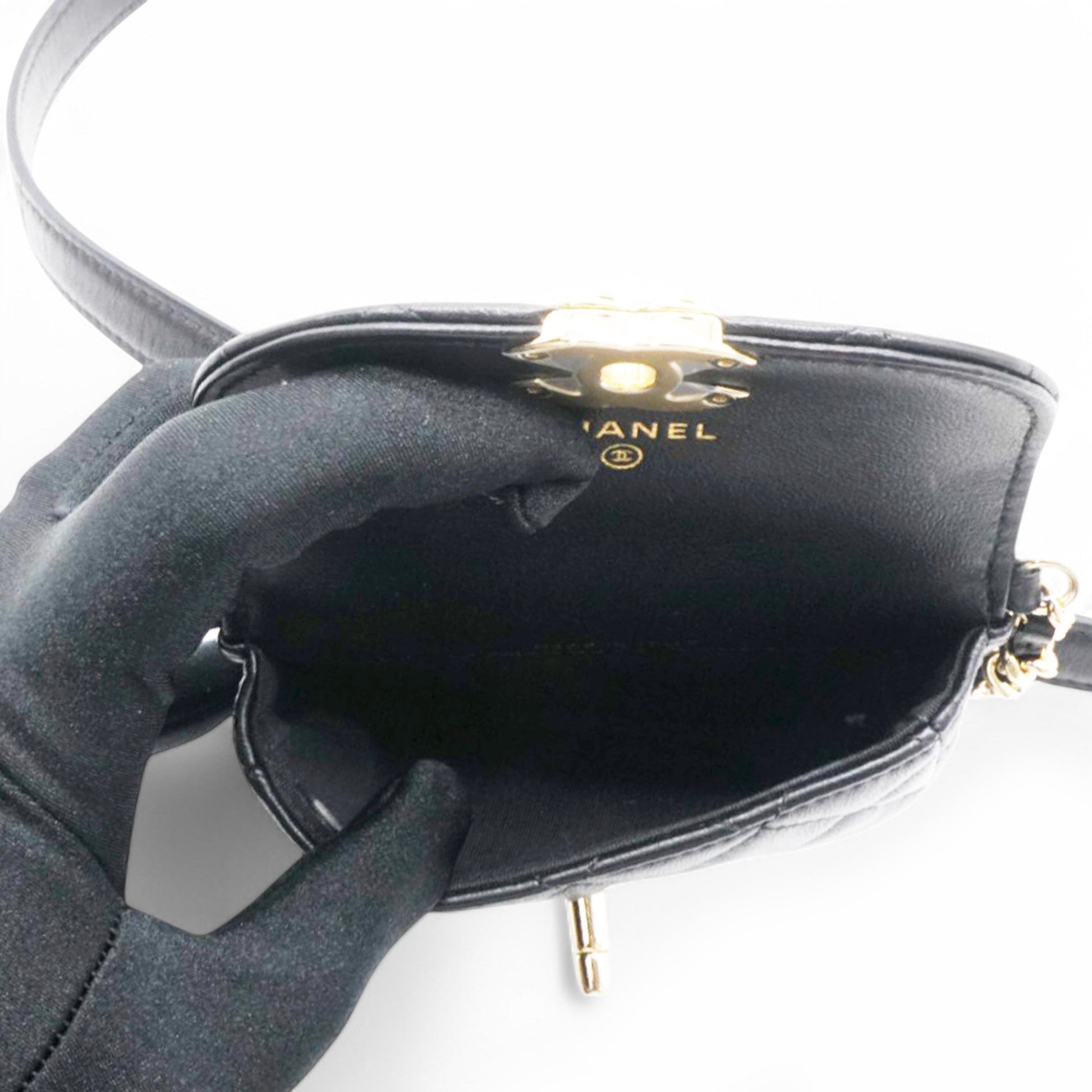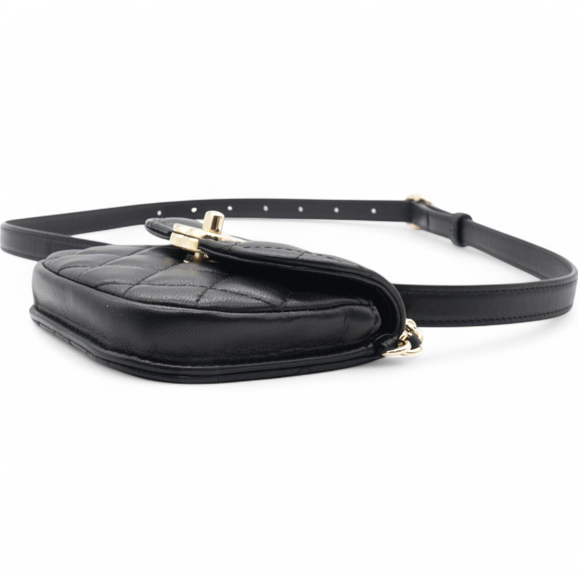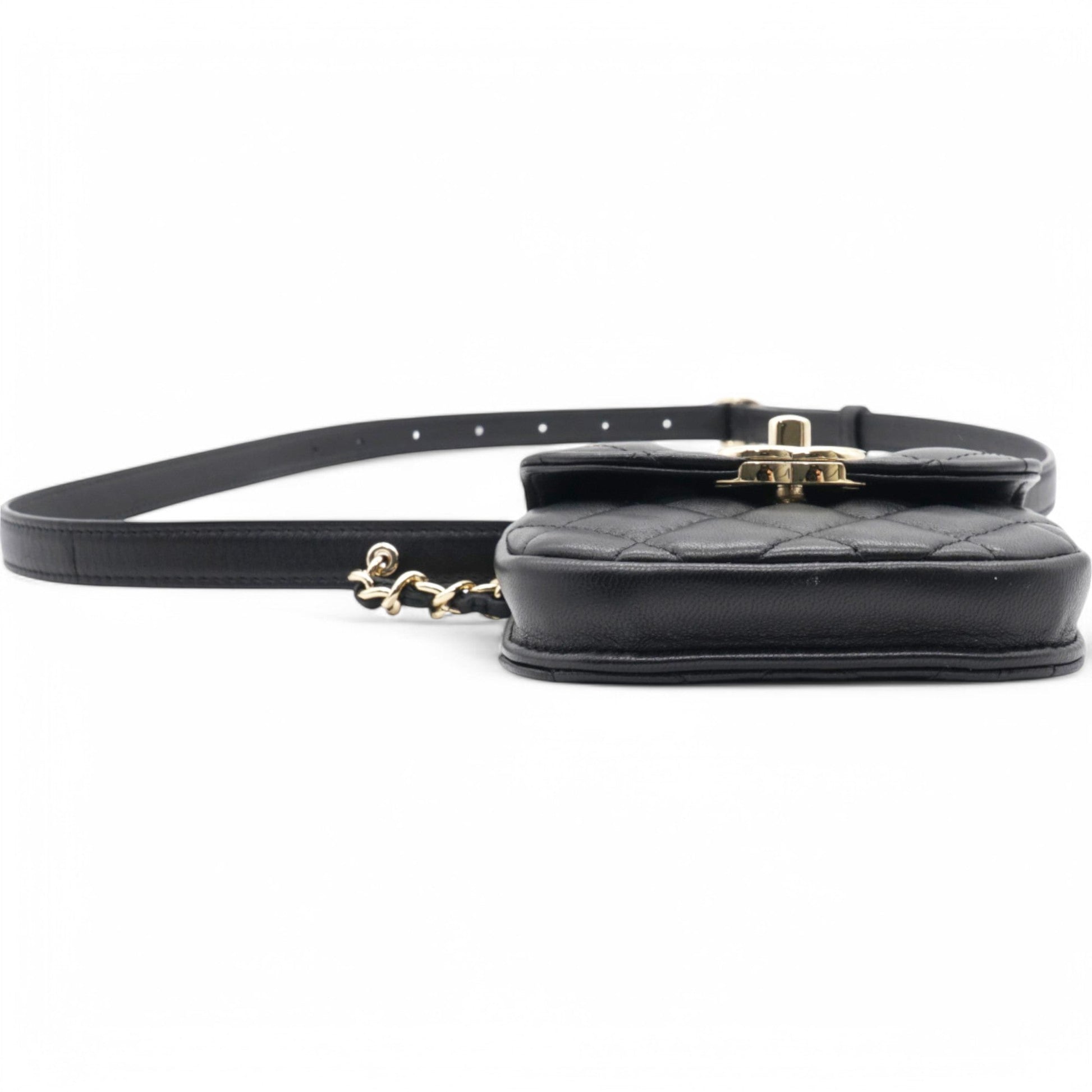 Chanel Tweed Lambskin Quilted Waist Bag With Coin Purse Black