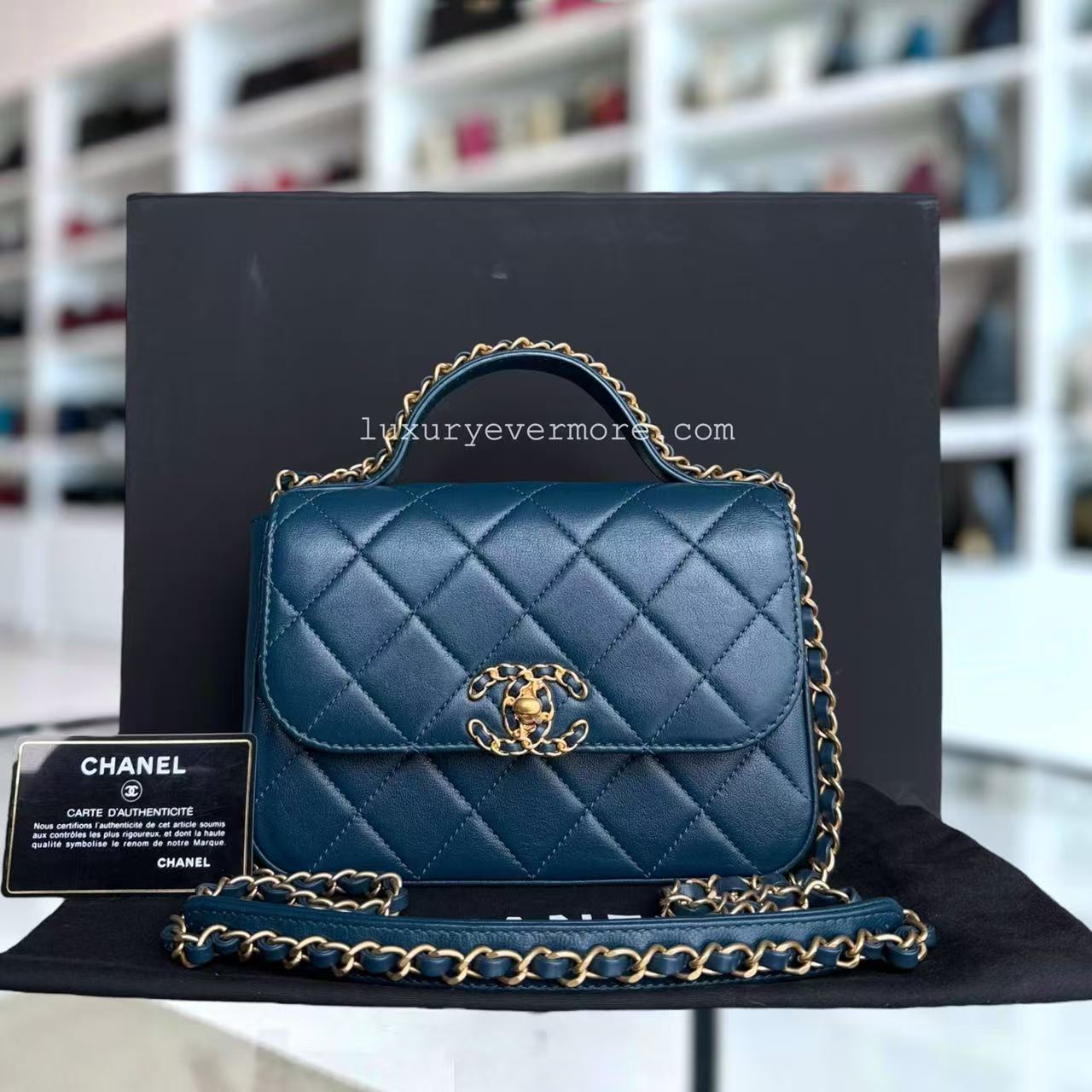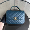 *Un* Chanel 19 Flap - C19 With Top Handle 19 Bag Quilted Lambskin Blue Gold Hardware Series 28