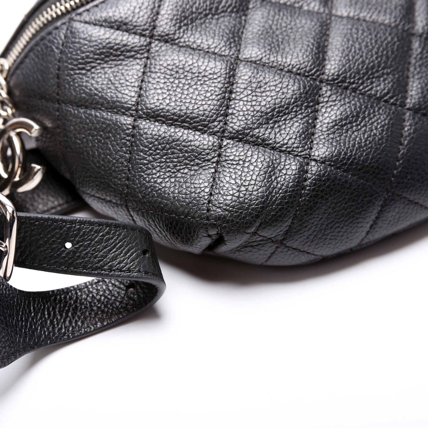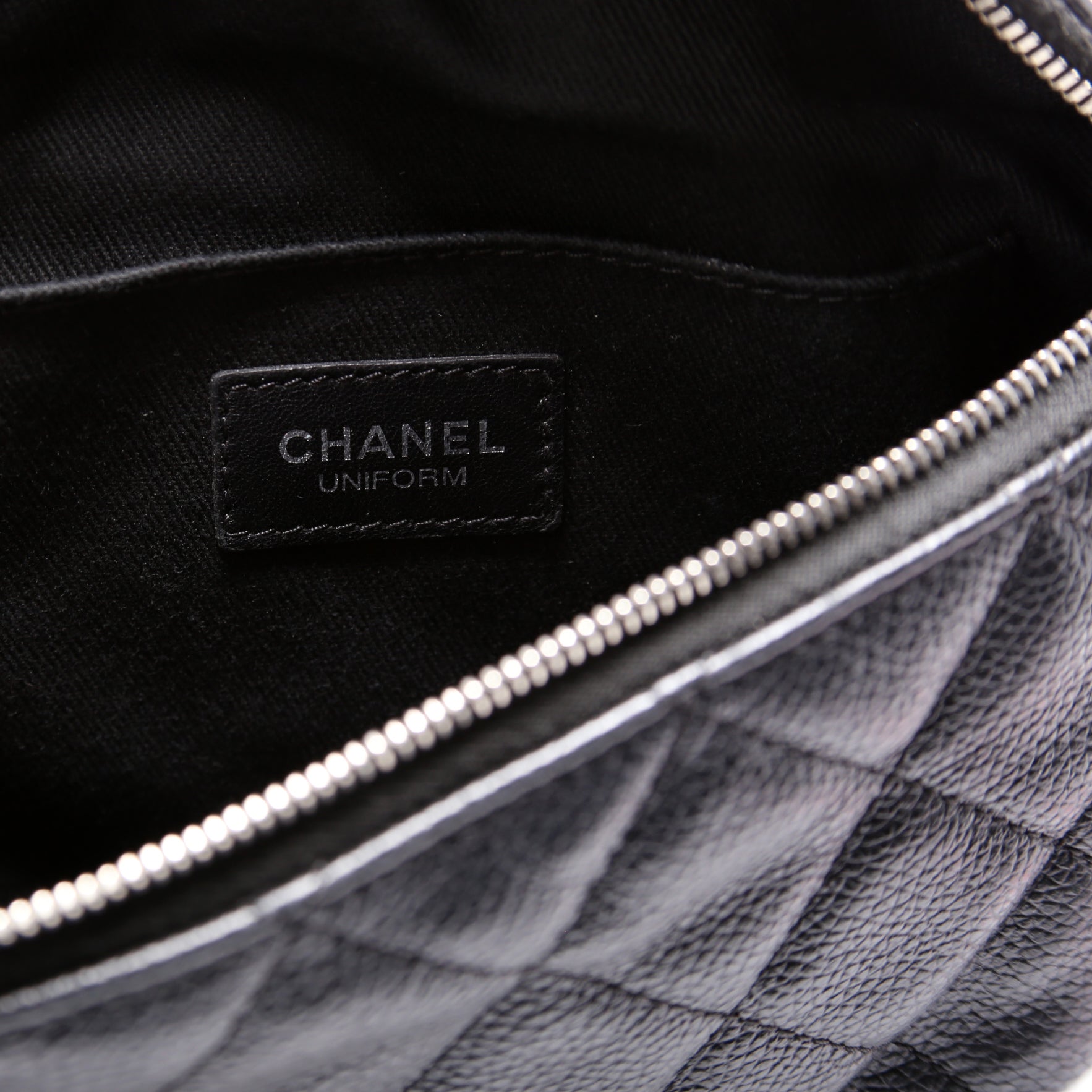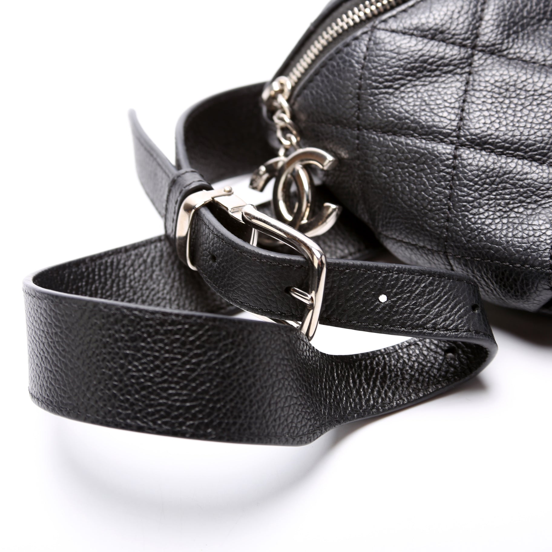 This Chanel Uniform Waist Belt Bagis eye catching bag. The exterior is in the classic Chanel Caviar leather.