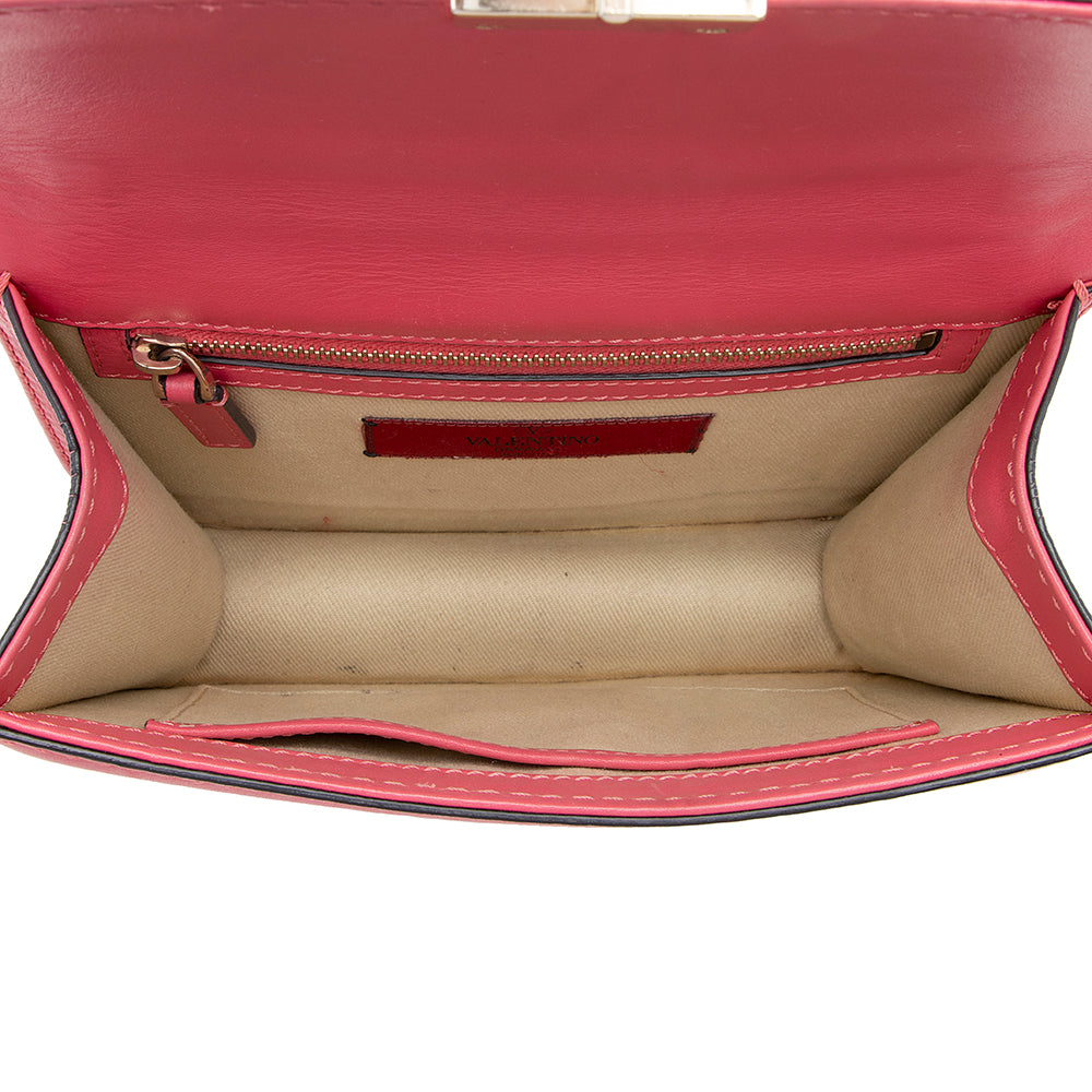 Valentino Calfskin Glam Lock Small Shoulder Bag