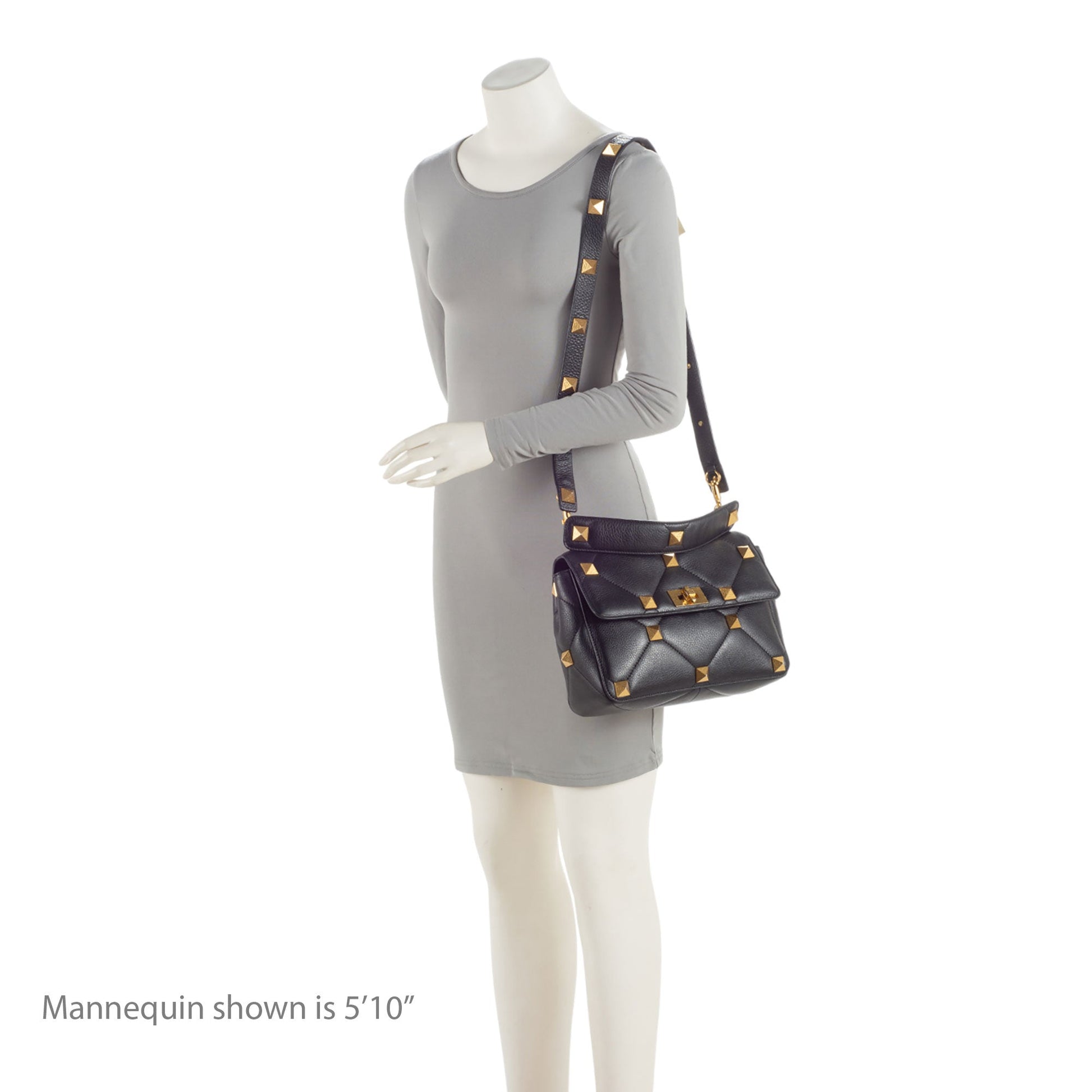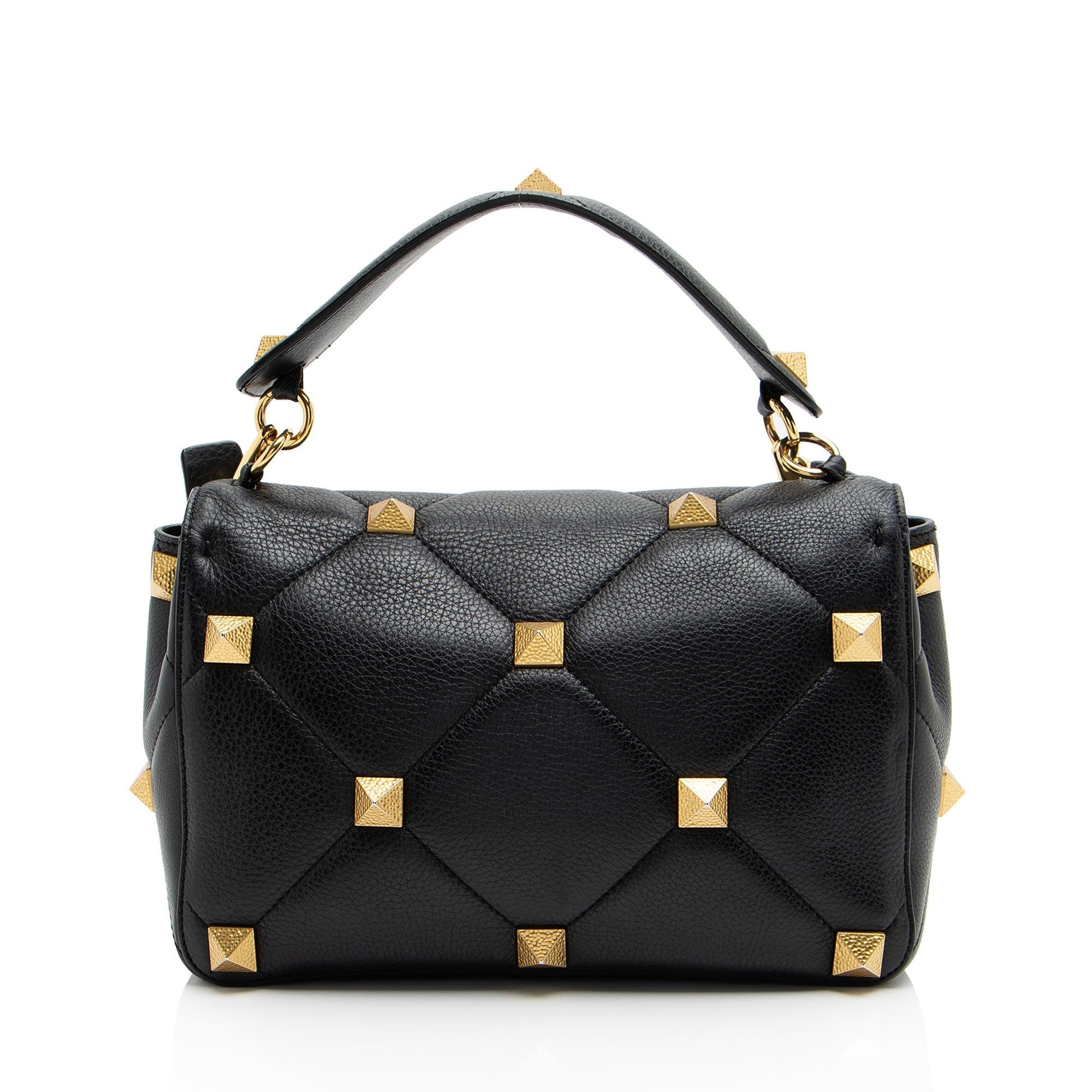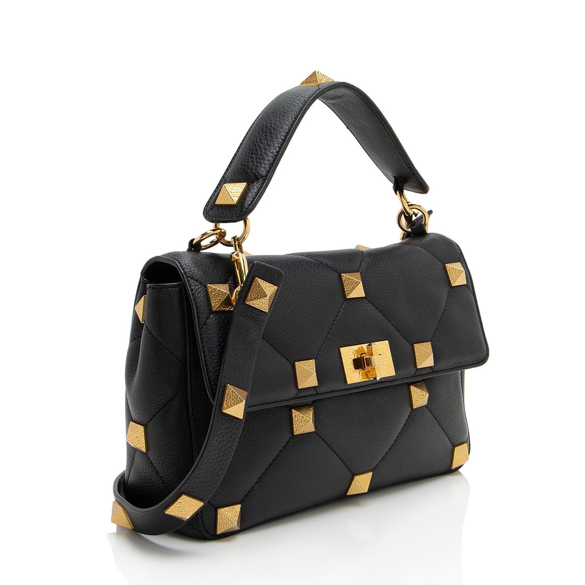 Valentino Grained Calfskin Hammered Roman Stud Medium Shoulder Bag