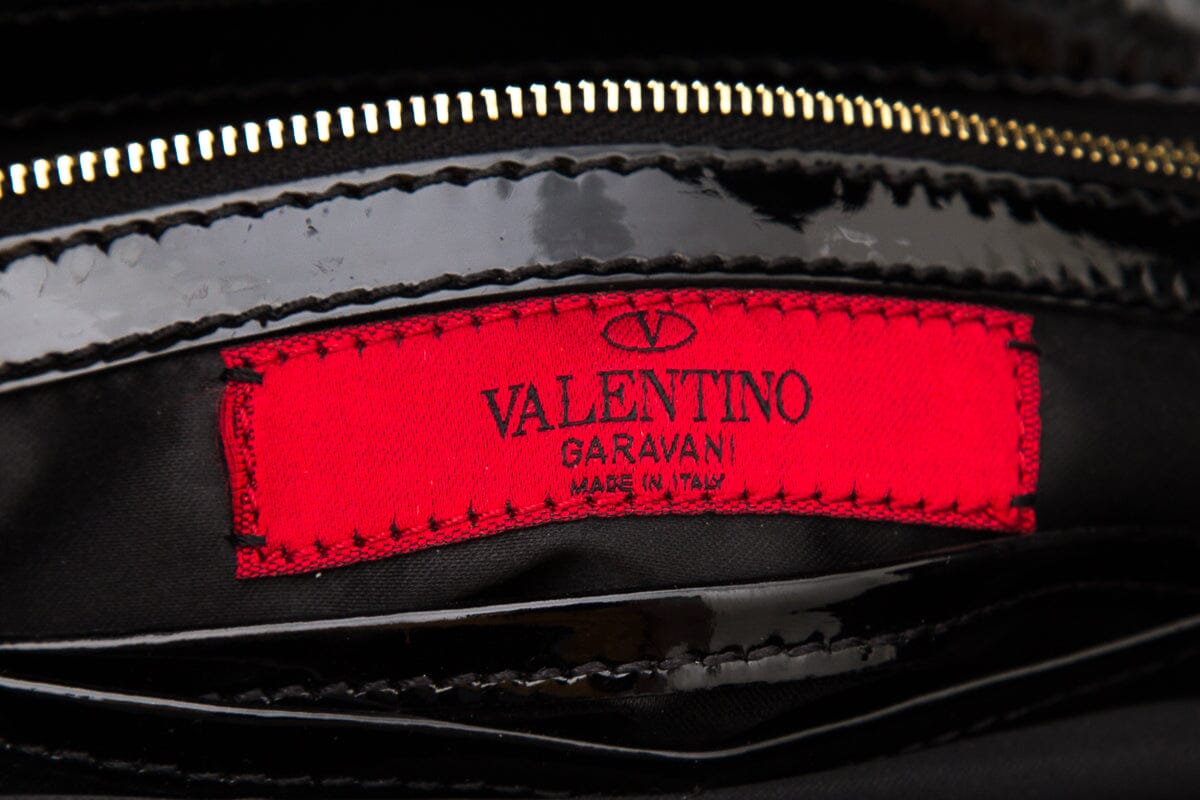 Valentino Raffia Black Patent Leather Shoulder Bag