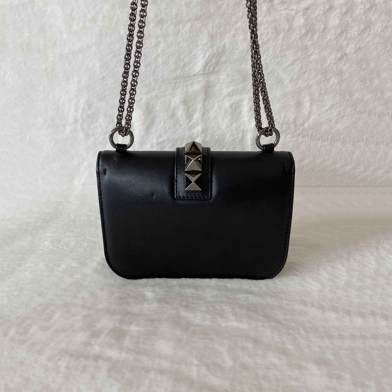 Description: Authentic Pre-Owned Valentino Rockstud Small Glam Lock Noir Crossbody Bag