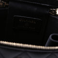 This Chanel Vanity Mini W/ Pearl Chain is d 100% . The exterior is in Lambskin leather.
