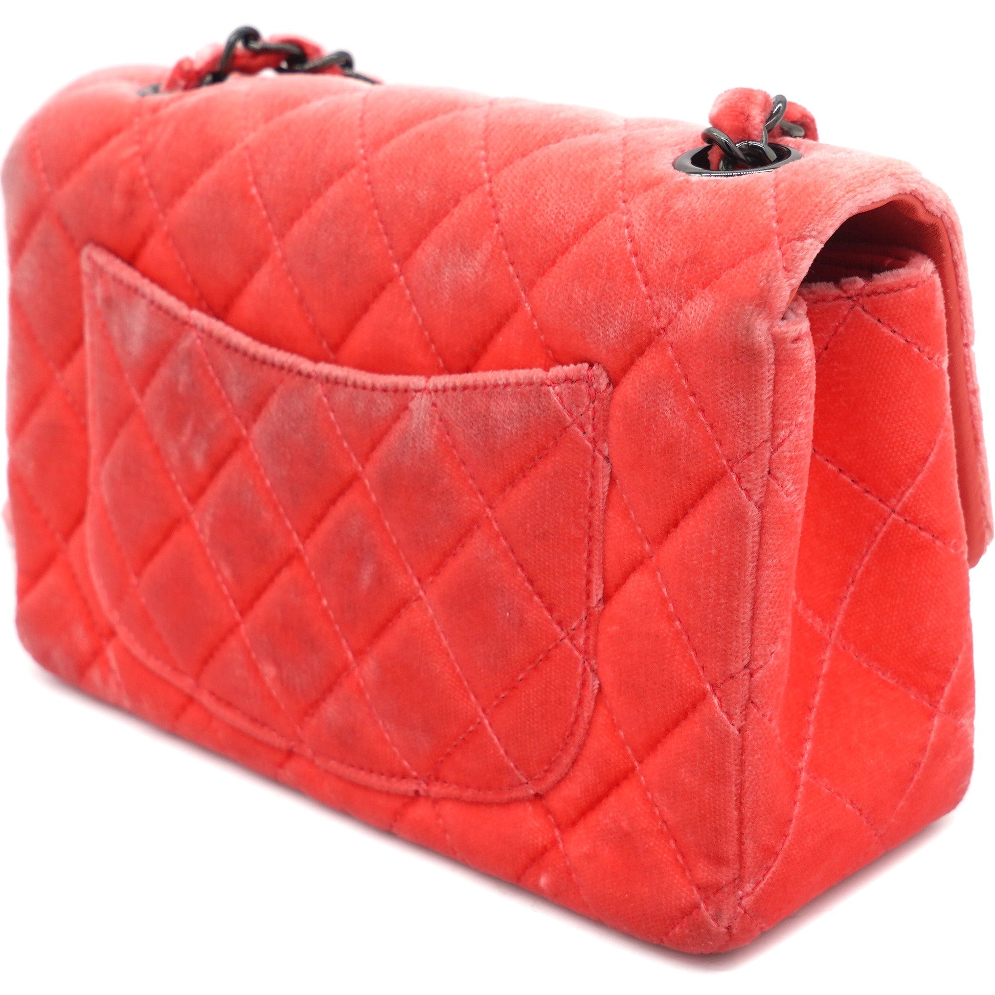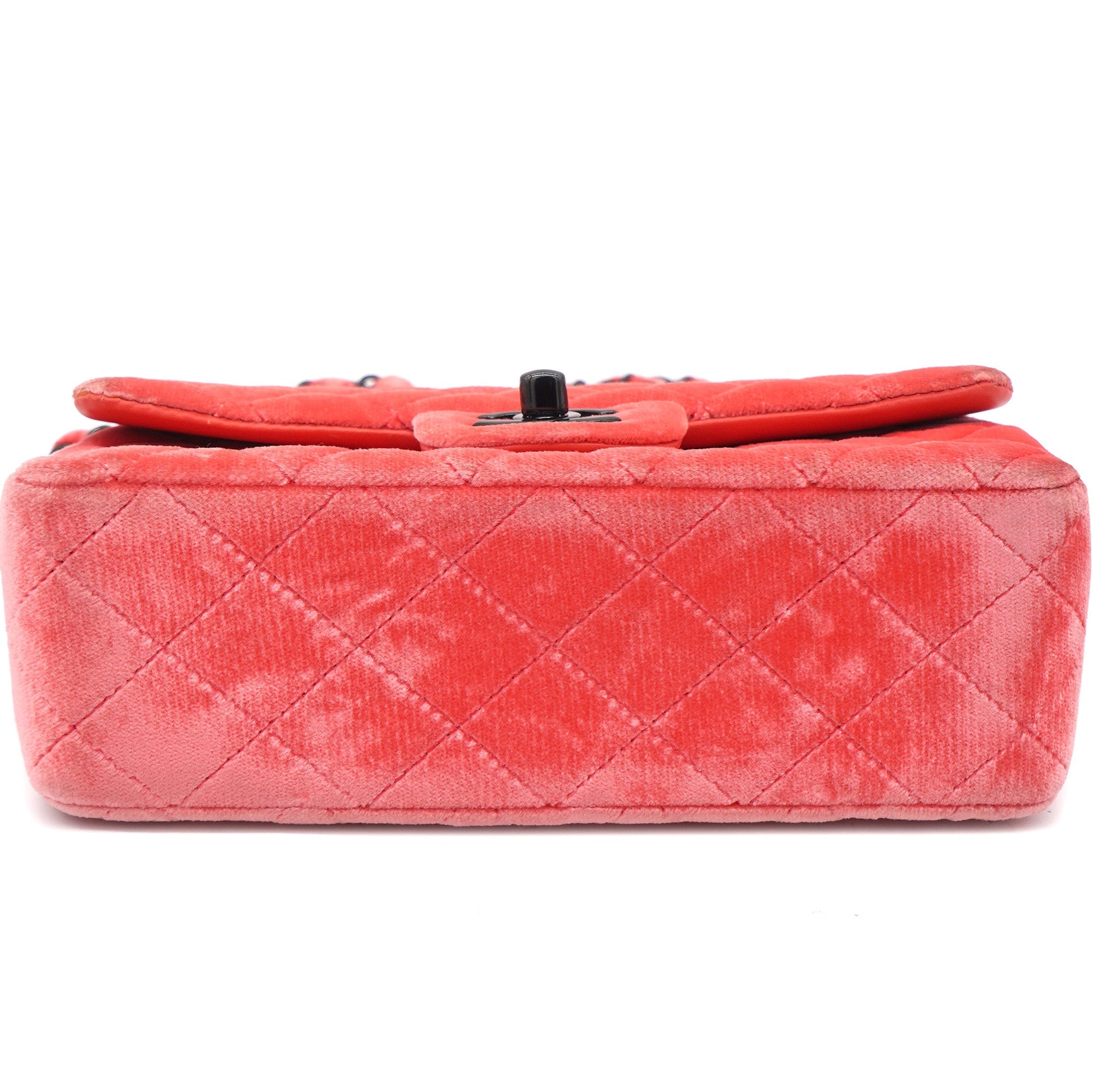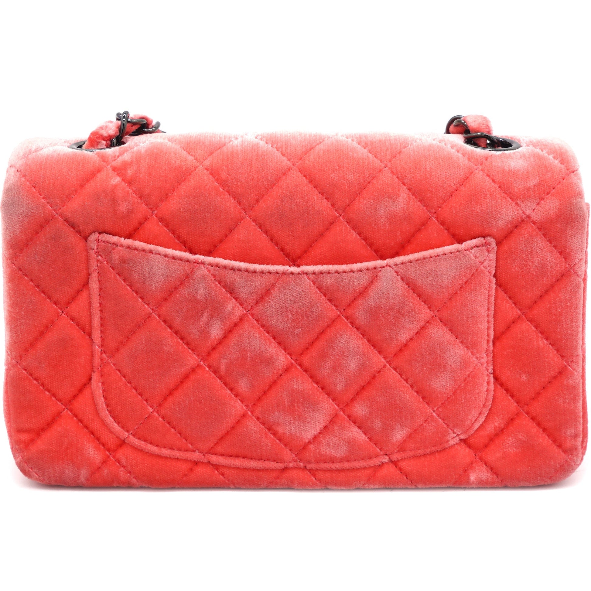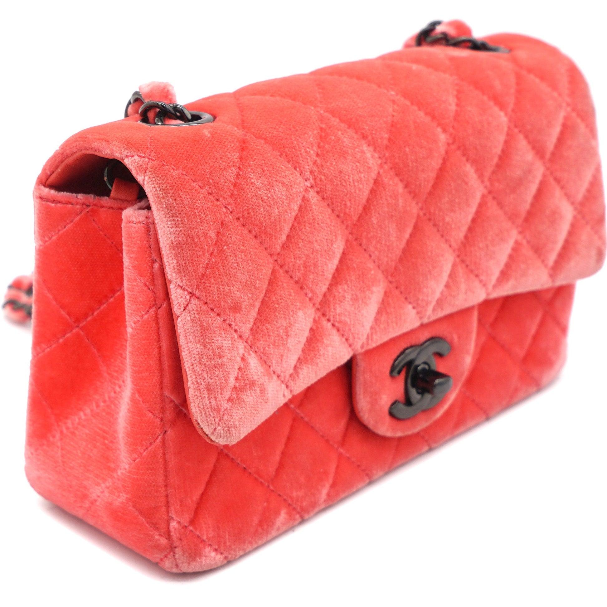 Chanel Velvet Quilted Mini Rectangular Flap Peachy Pink