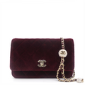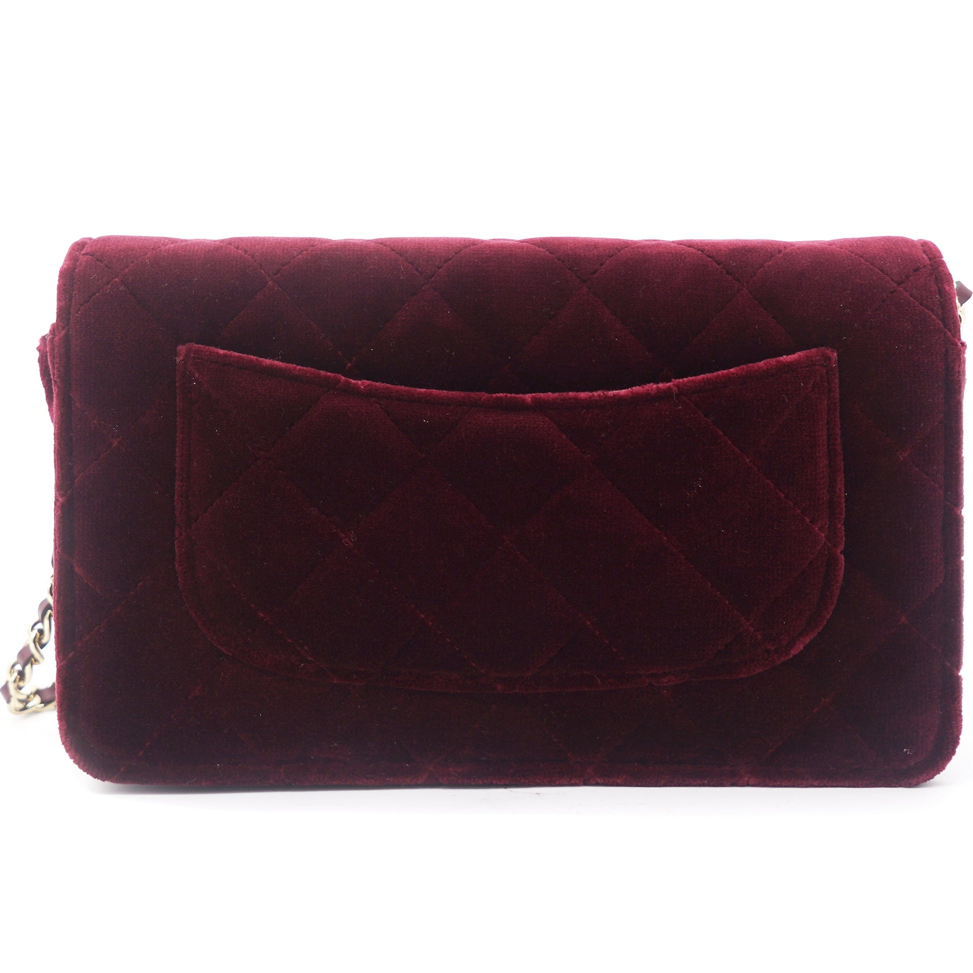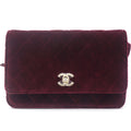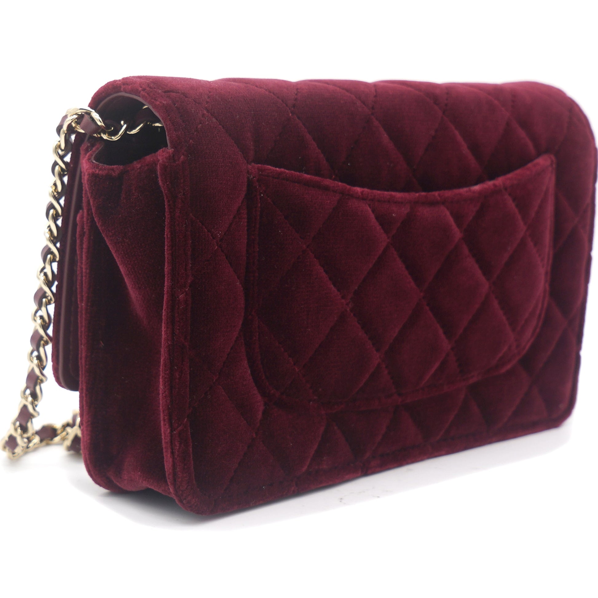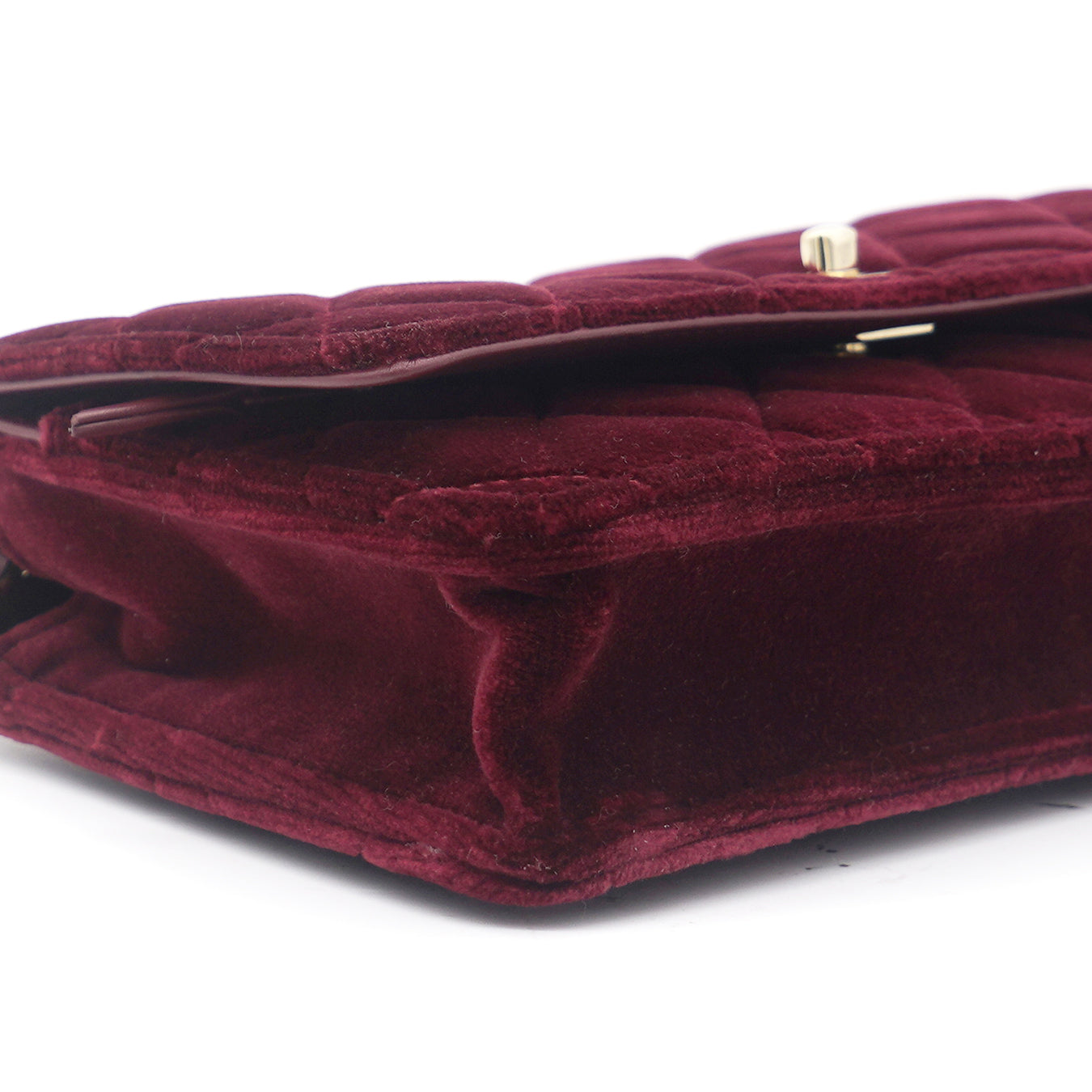 Chanel Velvet Quilted Pearl Crush Wallet On Chain WOC Burgundy