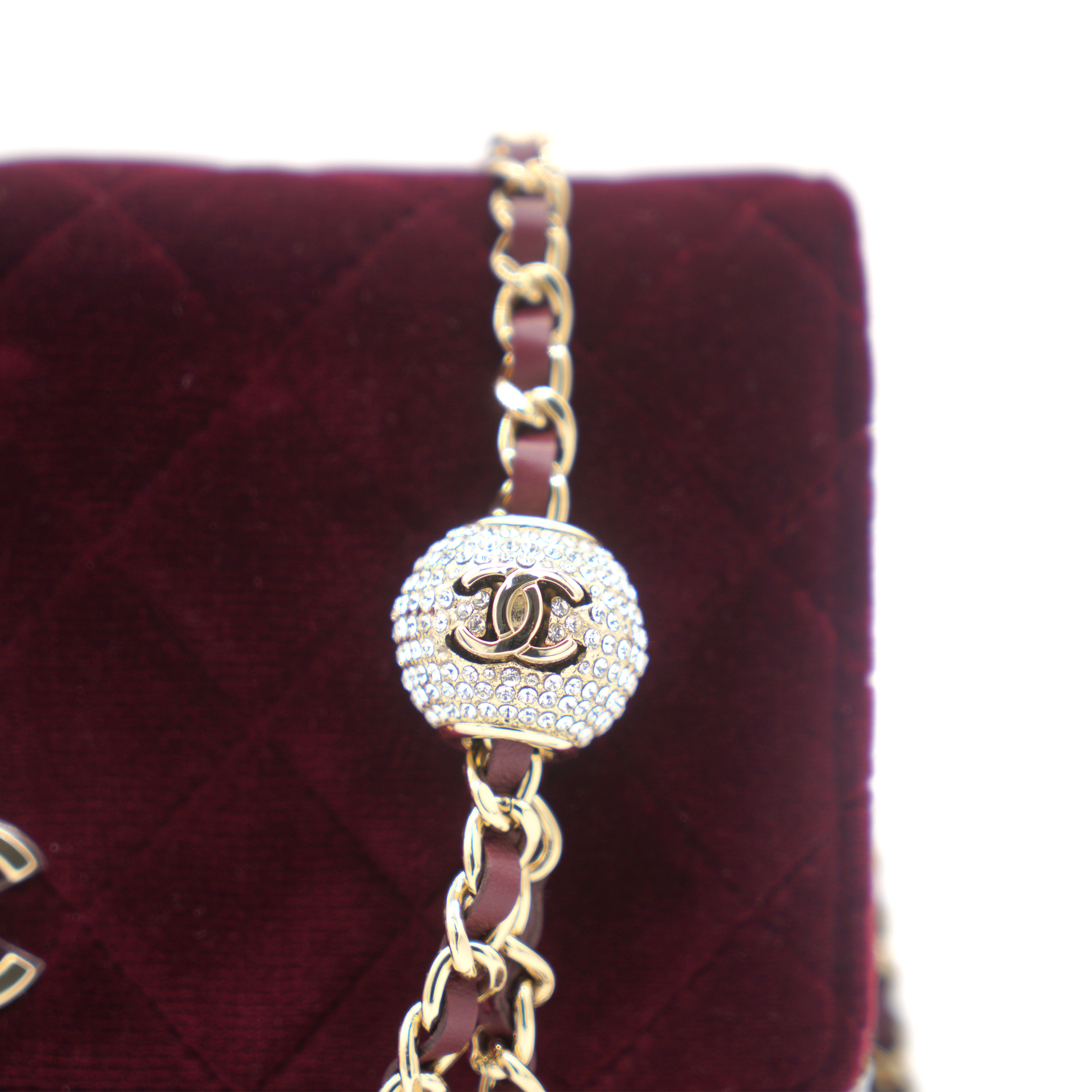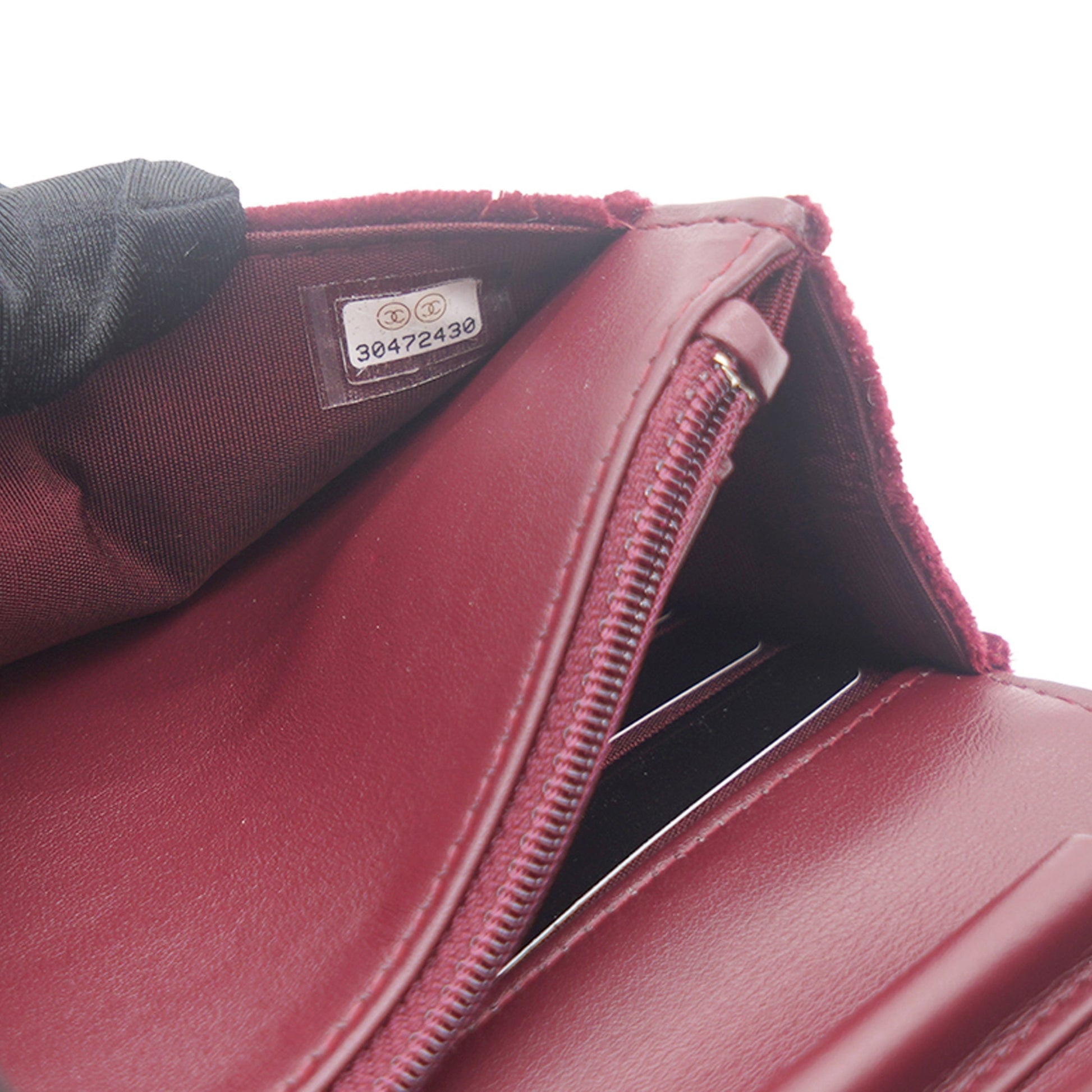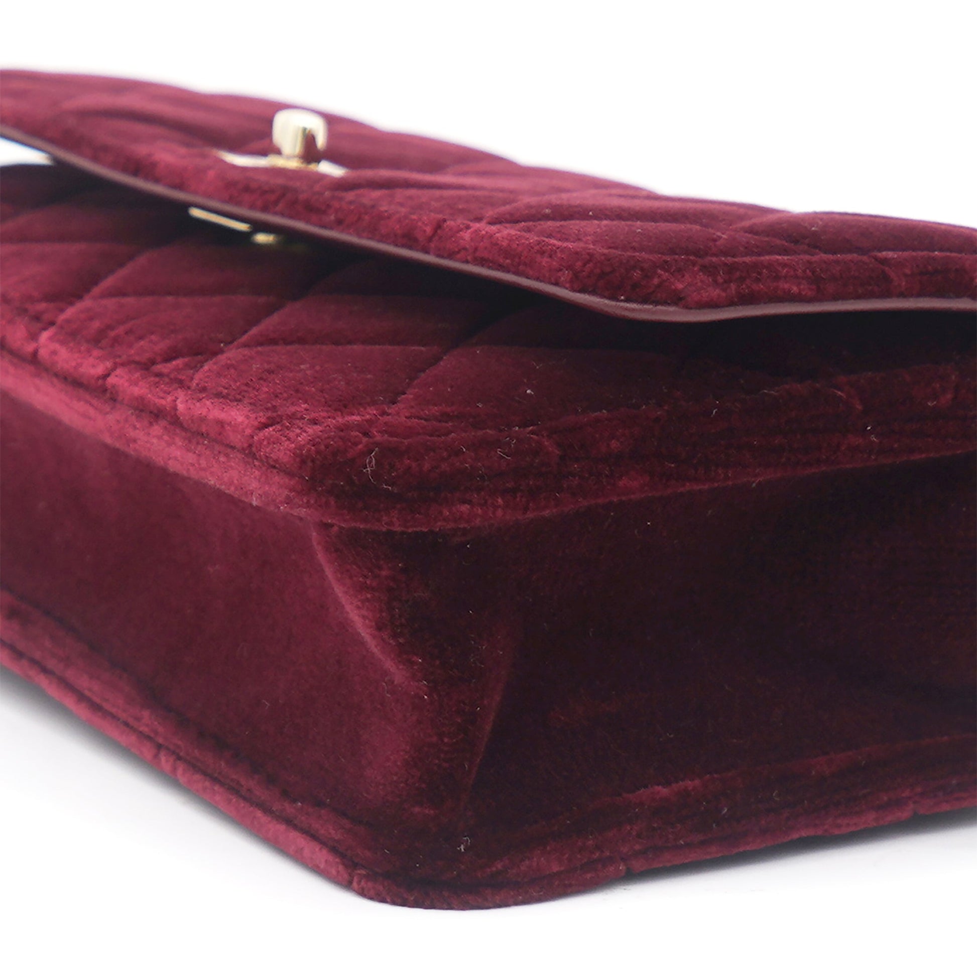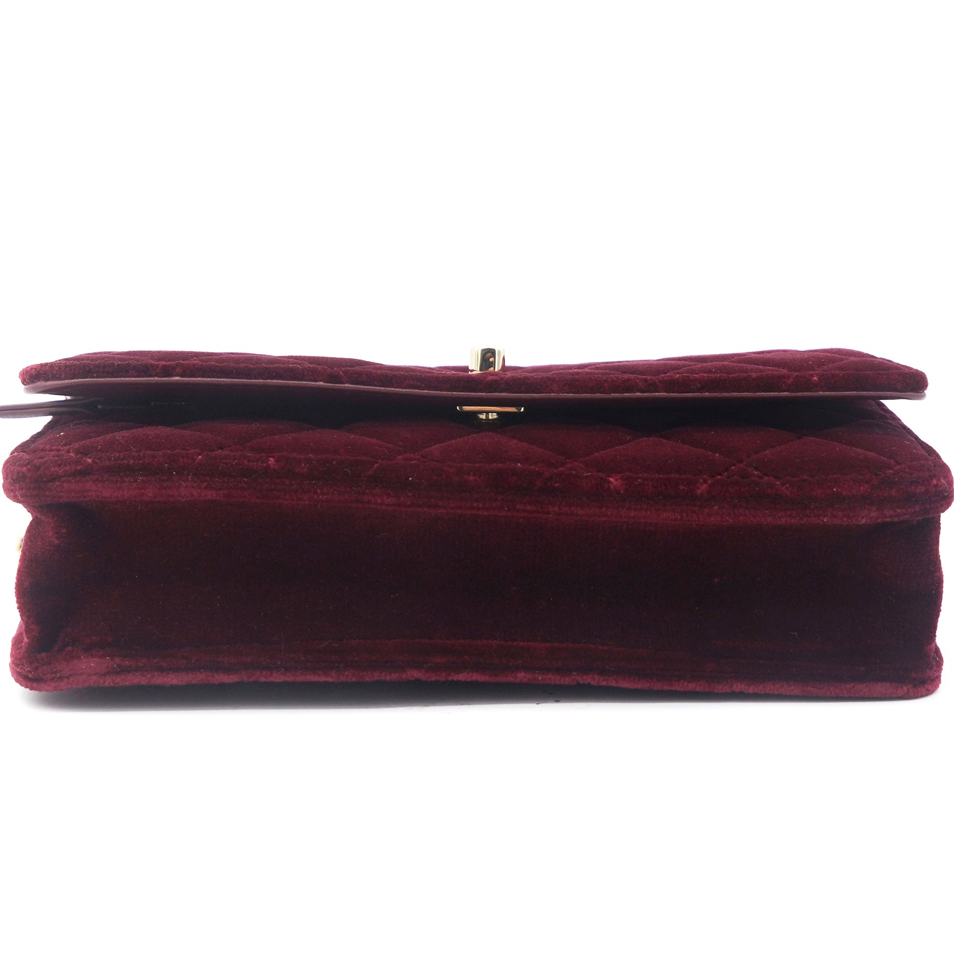 Chanel Velvet Quilted Pearl Crush Wallet On Chain WOC Burgundy