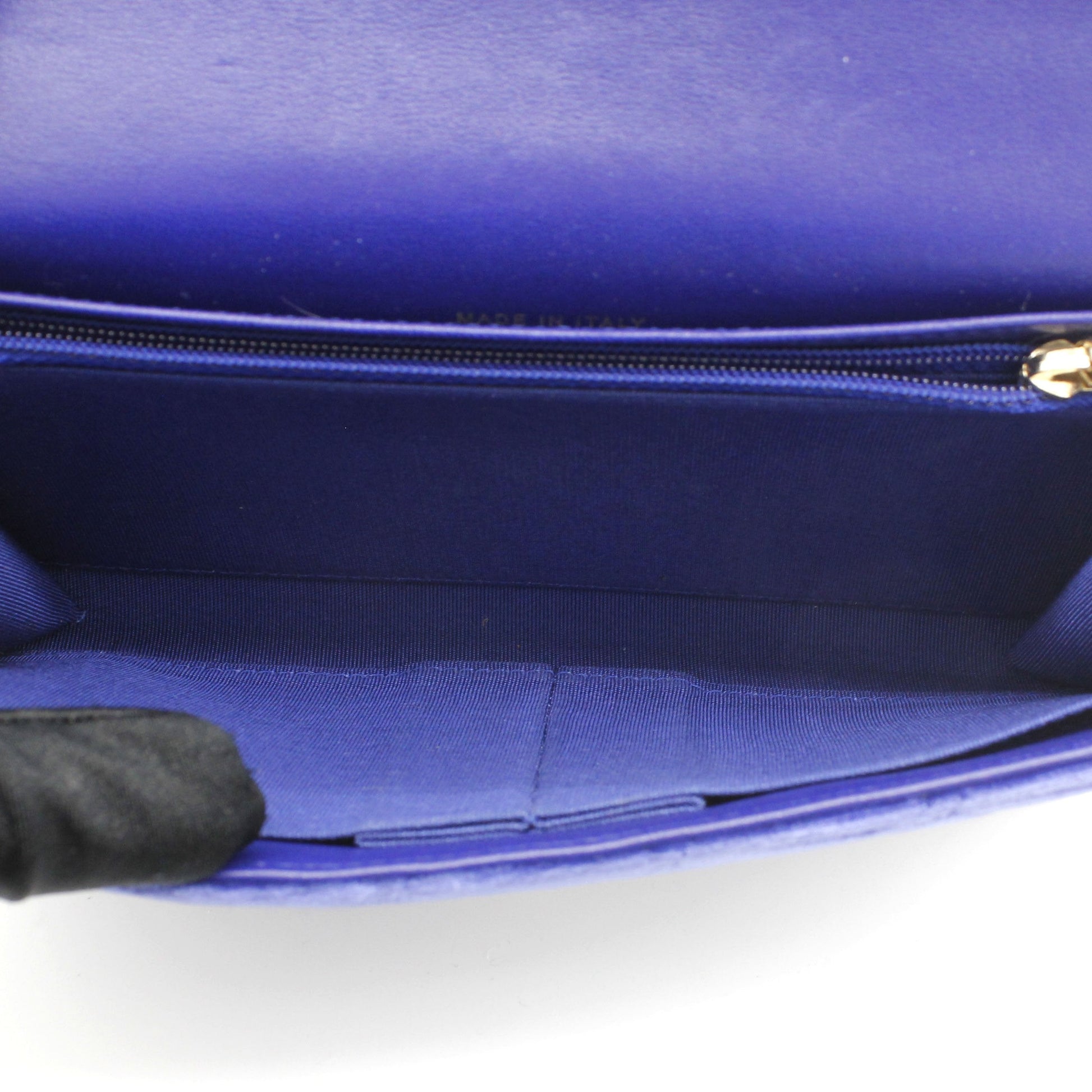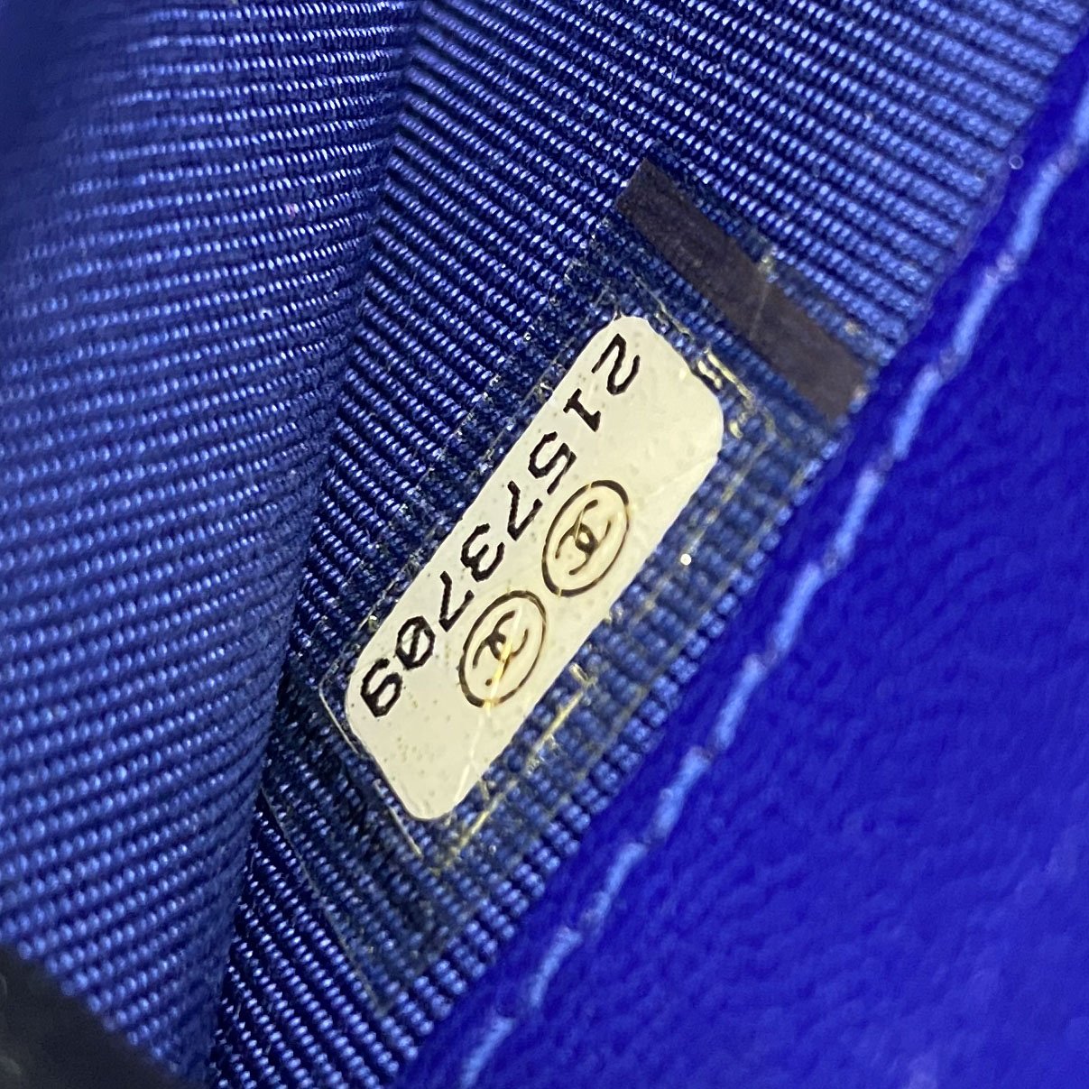 | This stylish wallet on a chain is crafted of luxuriously blue velvet diamond quilted leather. The bag features a short removable ruthenium chain link leather threaded shoulder strap and a small gold-tone Chanel CC logo on the facing flap. This flap opens to a leather and fabric interior with zipper and patch pockets and a matching companion pouch. | Exterior Material: Blue velvet exterior with a short removable leather threaded shoulder strap. Interior Material: Blue fabric lining with one main compartment, zipped pocket, card slots and a removable matching lambskin pouch. Accessories: Dust Bag Serial Number: 21573709 Bought Year: 2016 | ![]() |