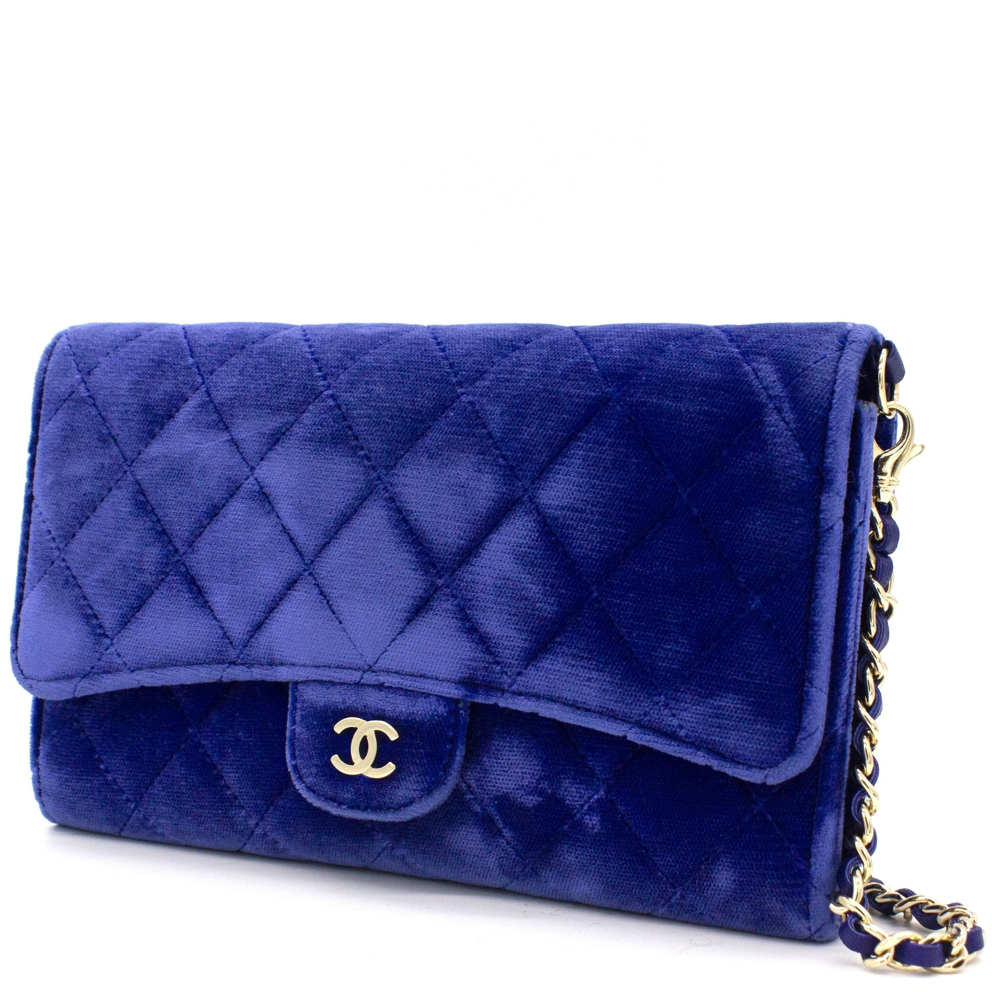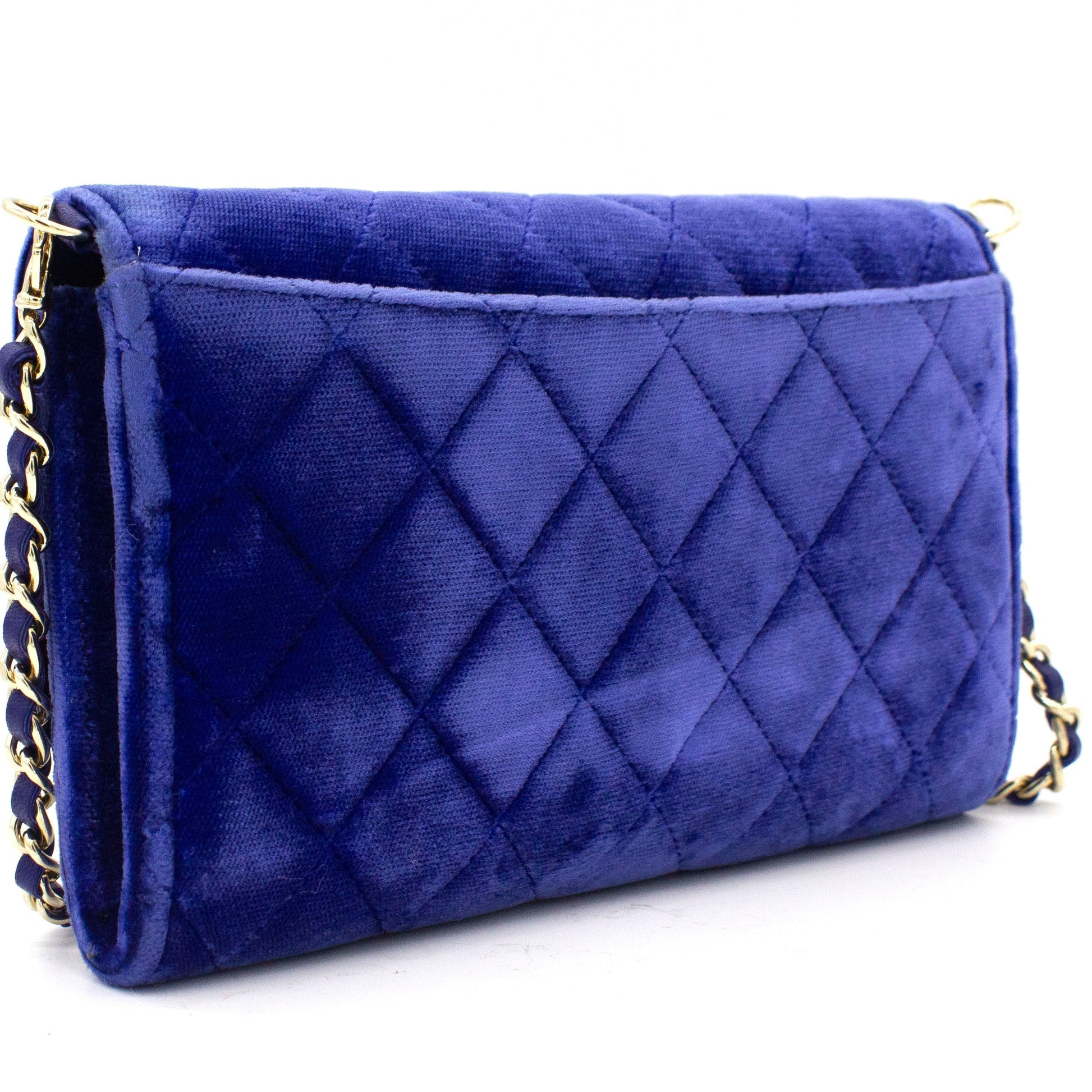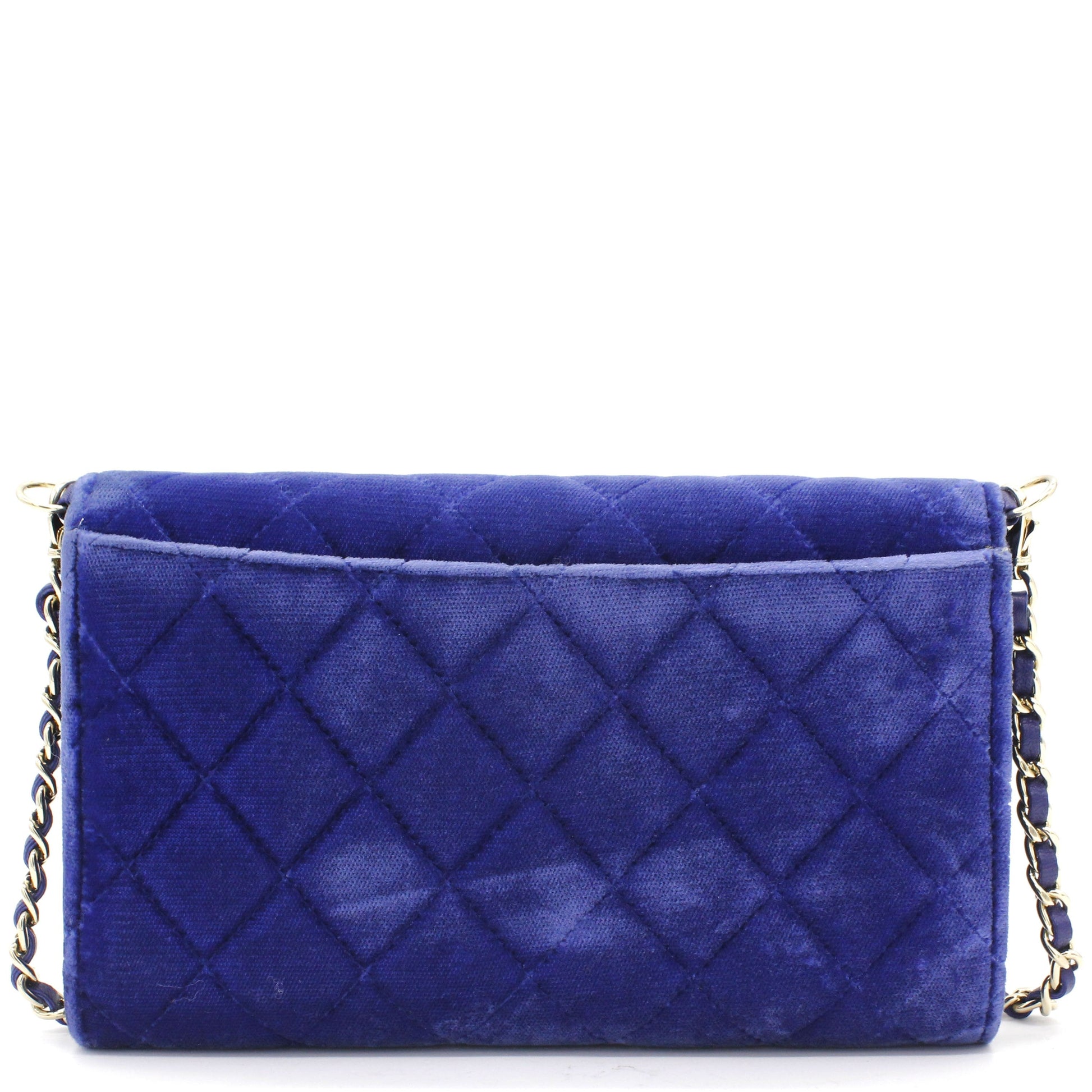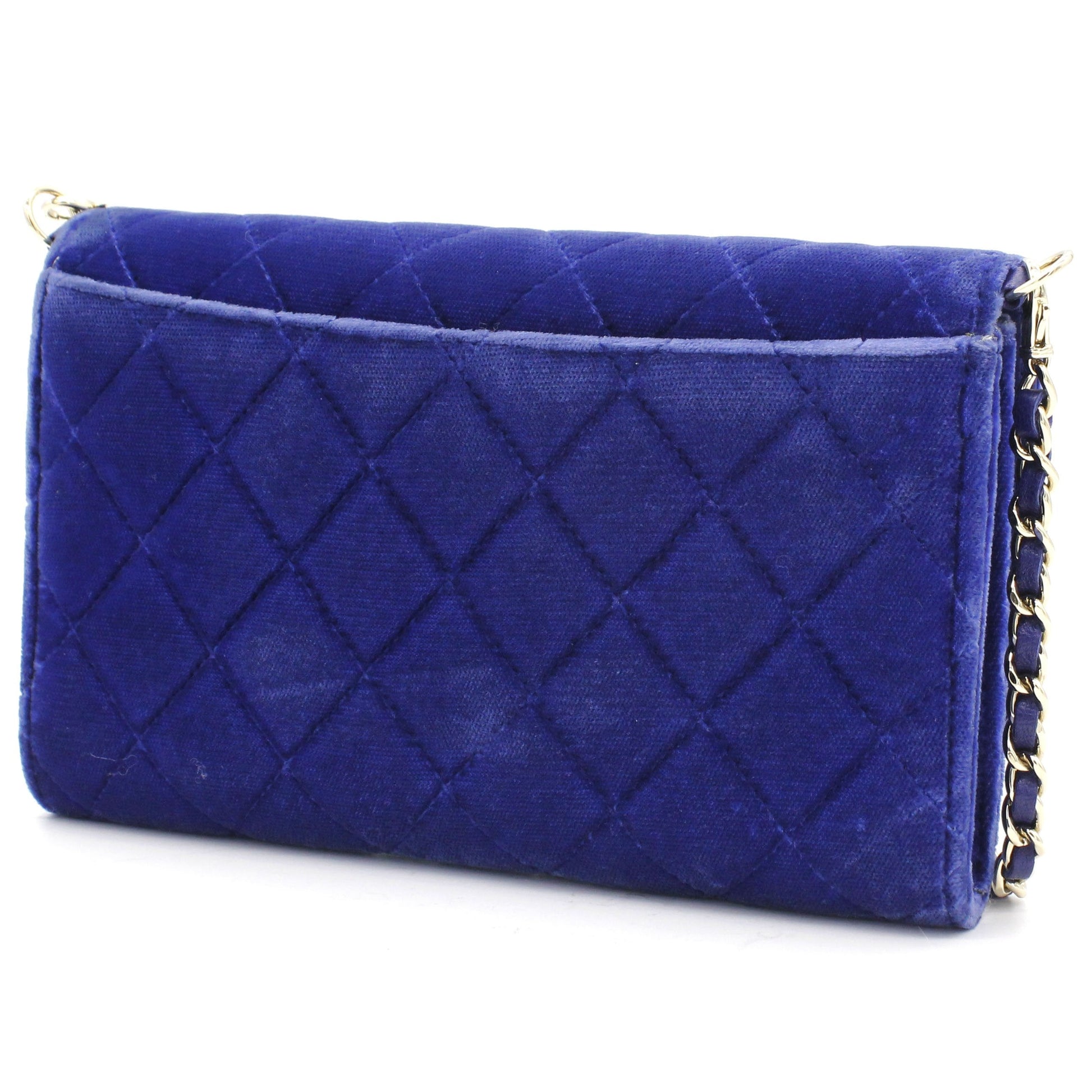 Chanel Velvet Quilted Wallet on Removable Chain Navy