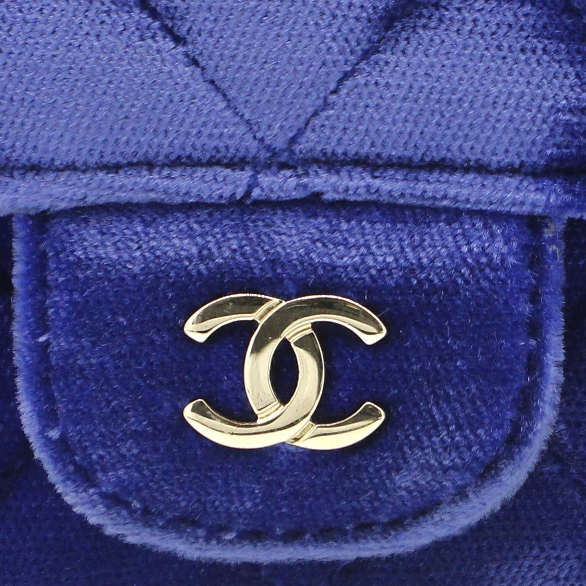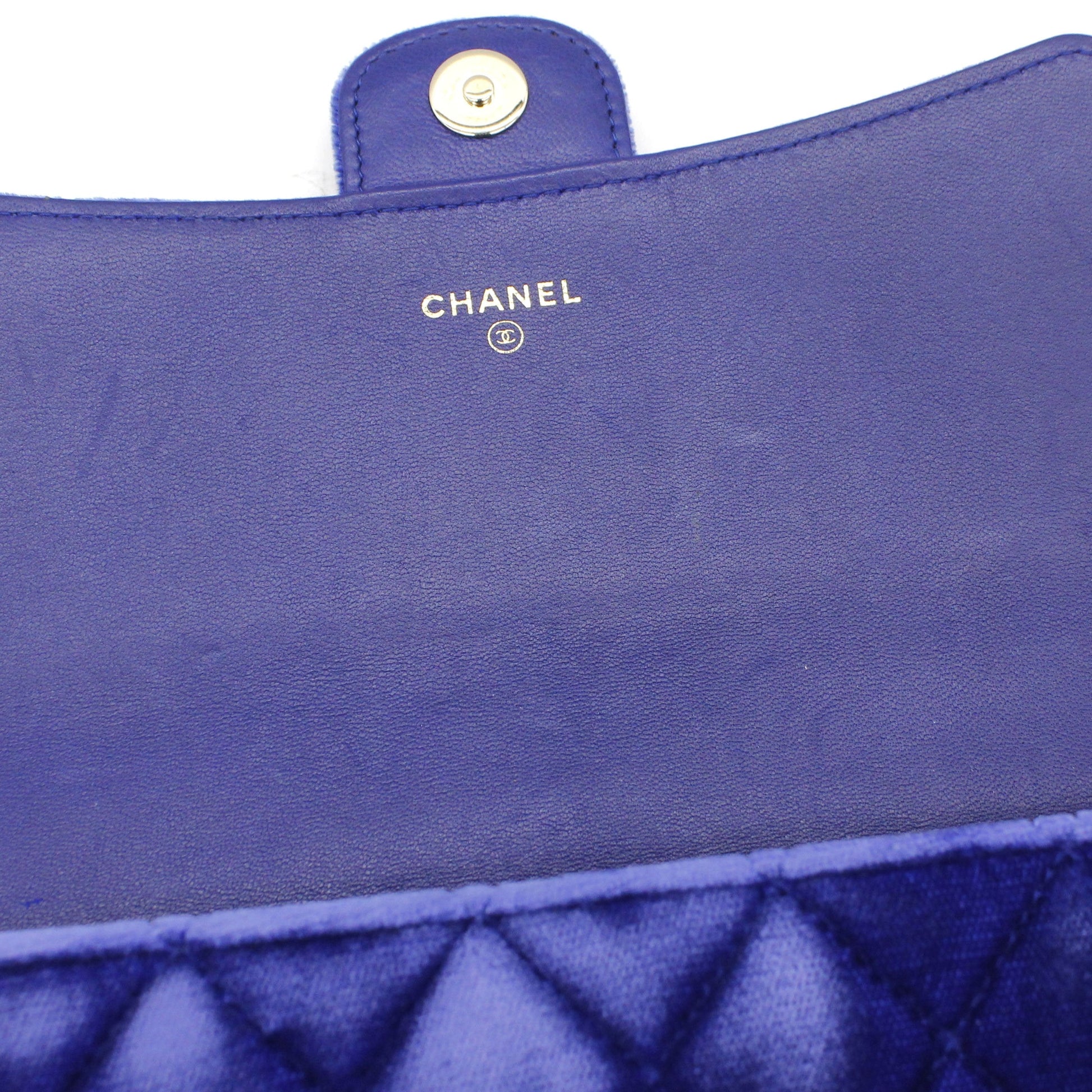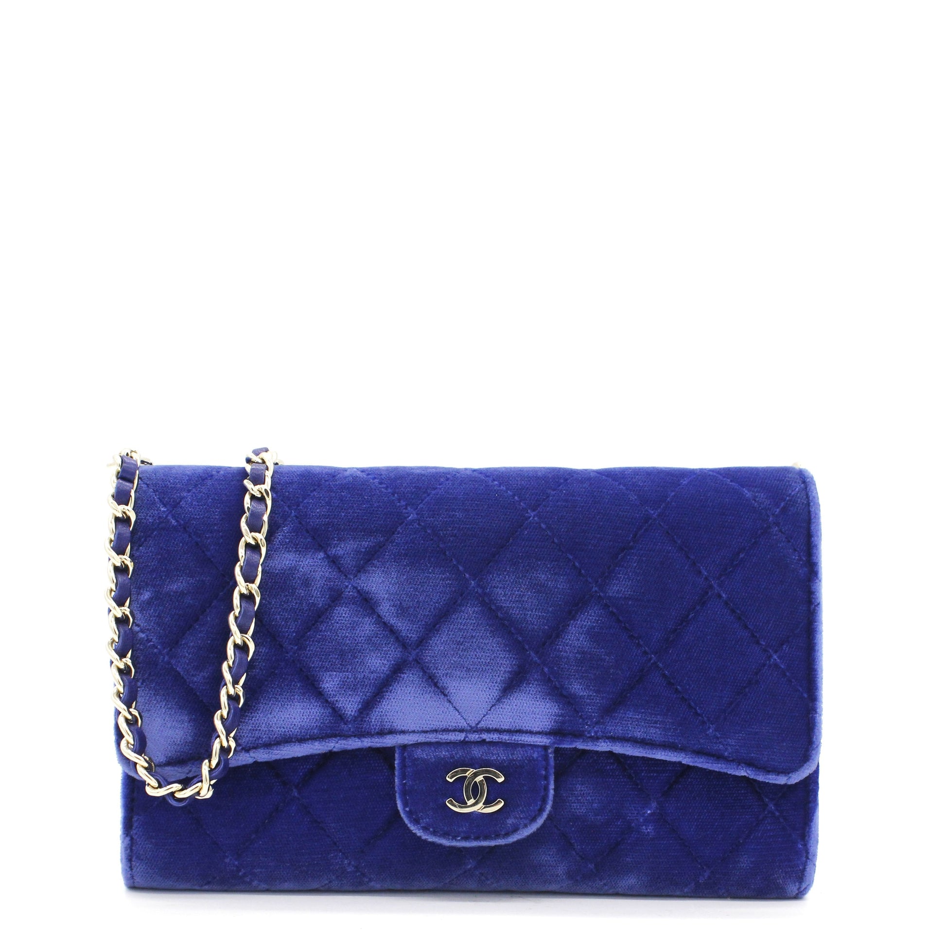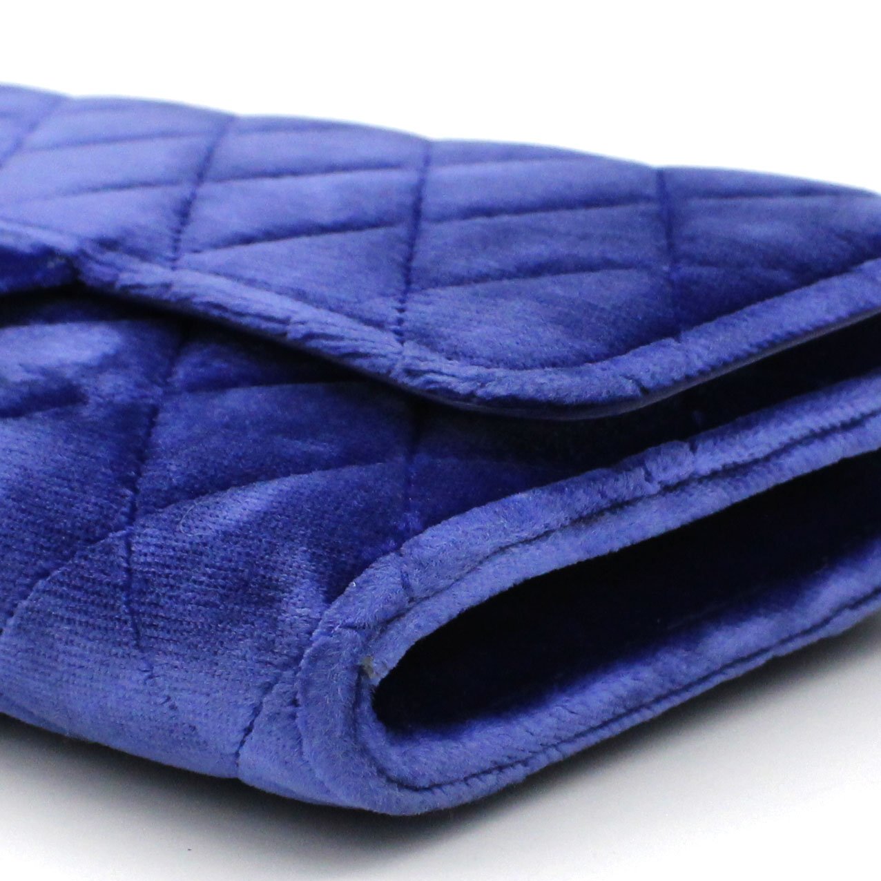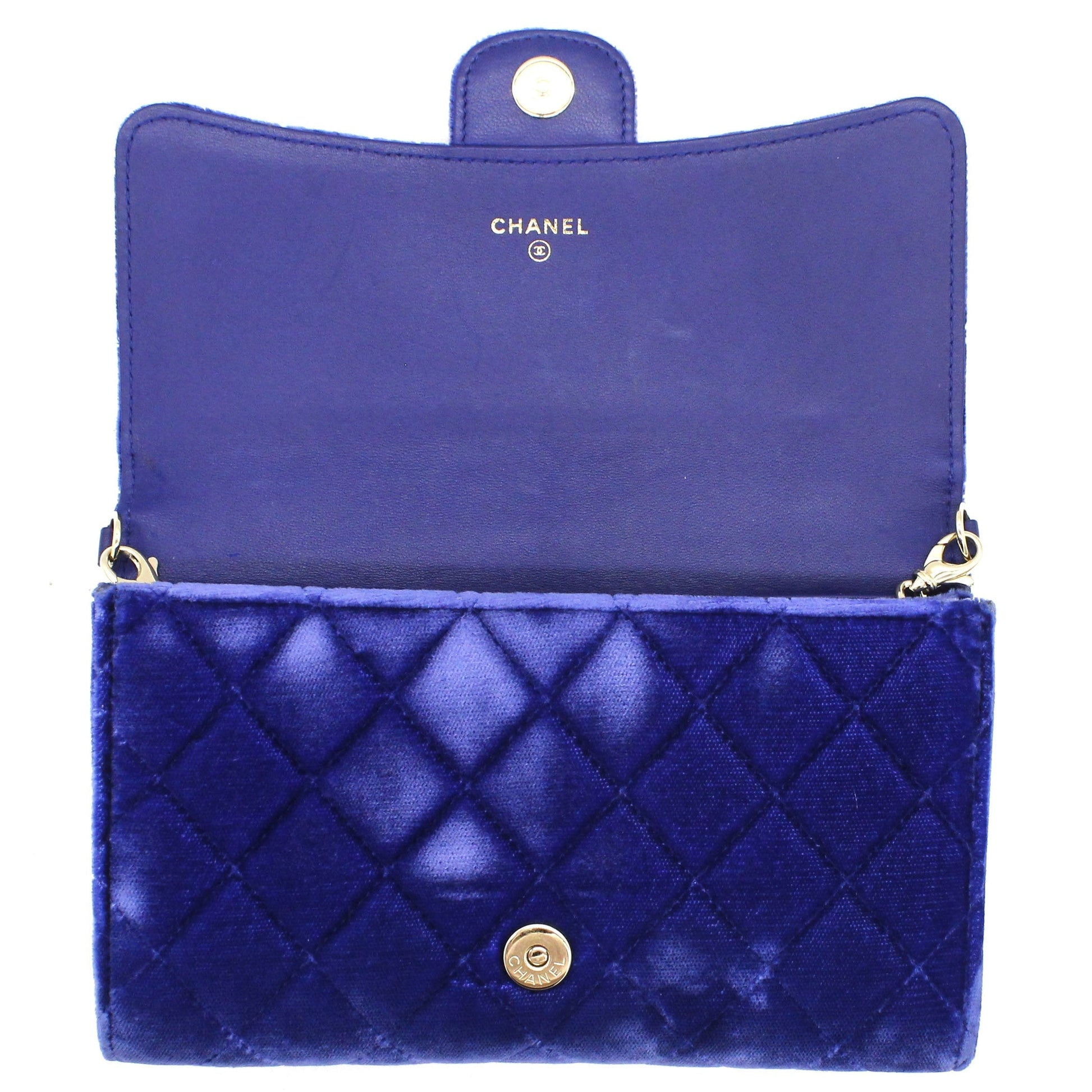 Chanel Velvet Quilted Wallet on Removable Chain Navy