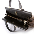 Interior: The interior is clean and free of rips or tears. The interior features two open pockets and one zipper pocket. The leather has scuffs.