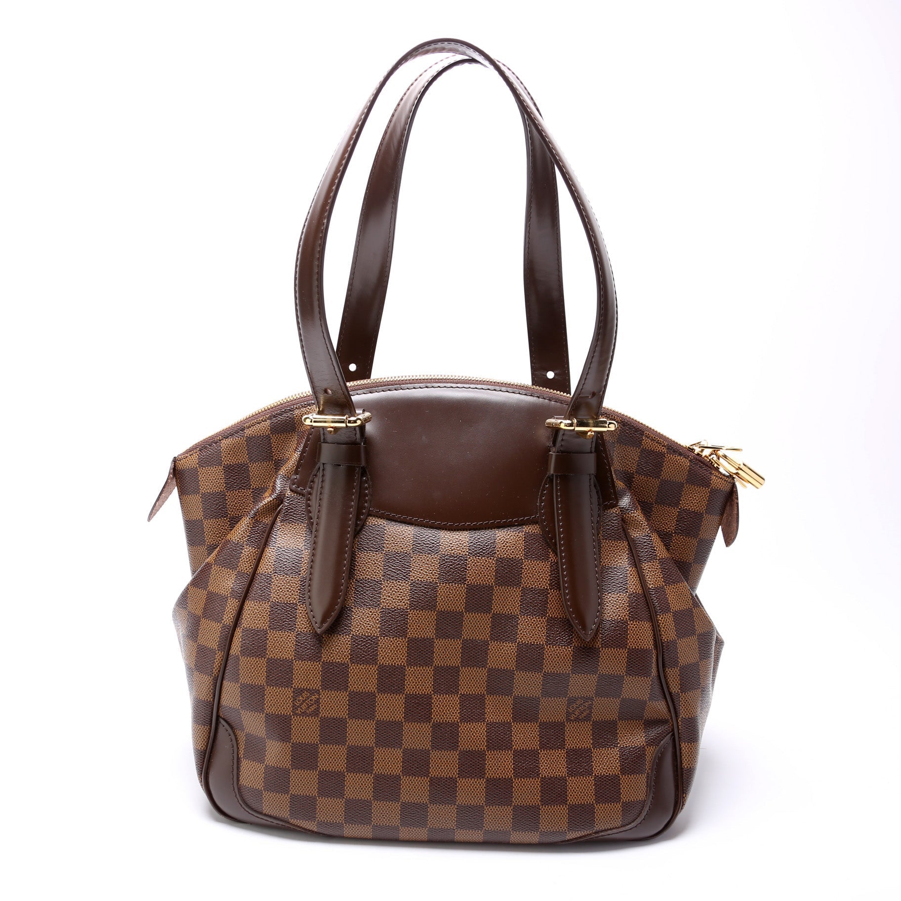 This Louis Vuitton Verona MM is d 100% . The exterior is in the classic Louis Vuitton Damier Ebene coated canvas.