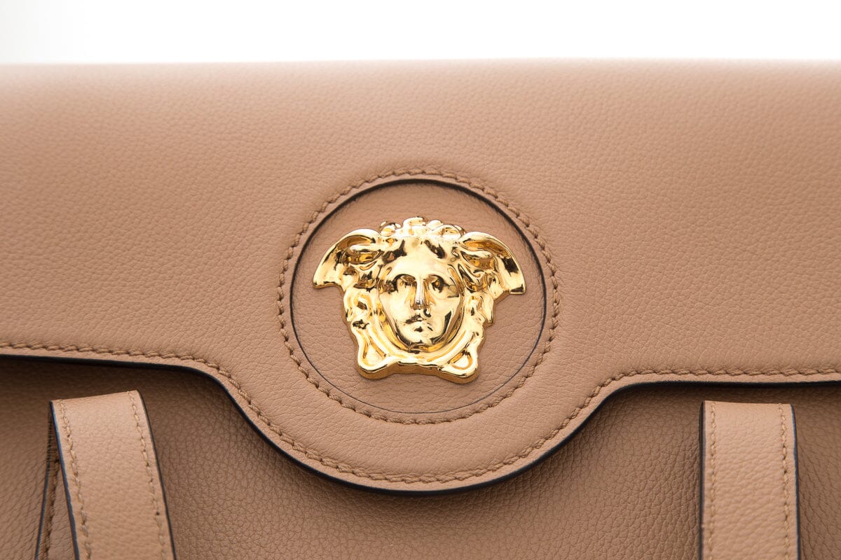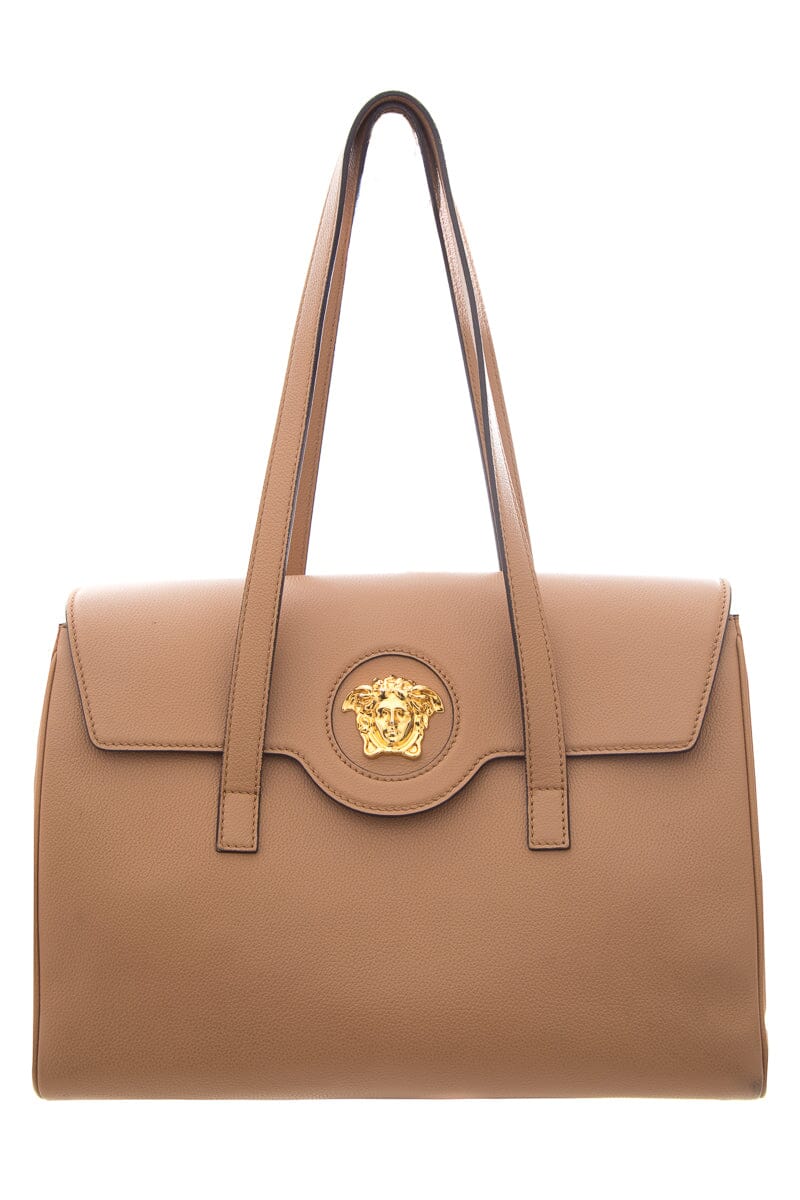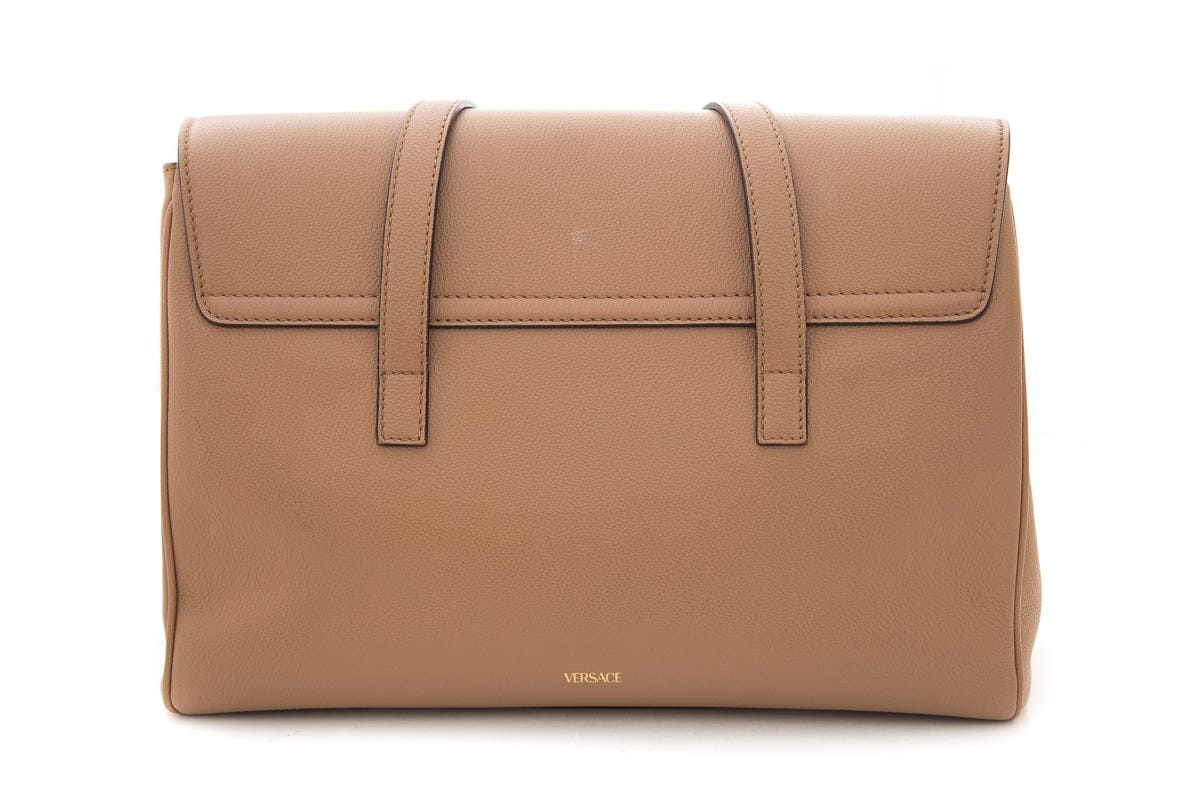 Versace Brown La Medusa Flap Leather Tote