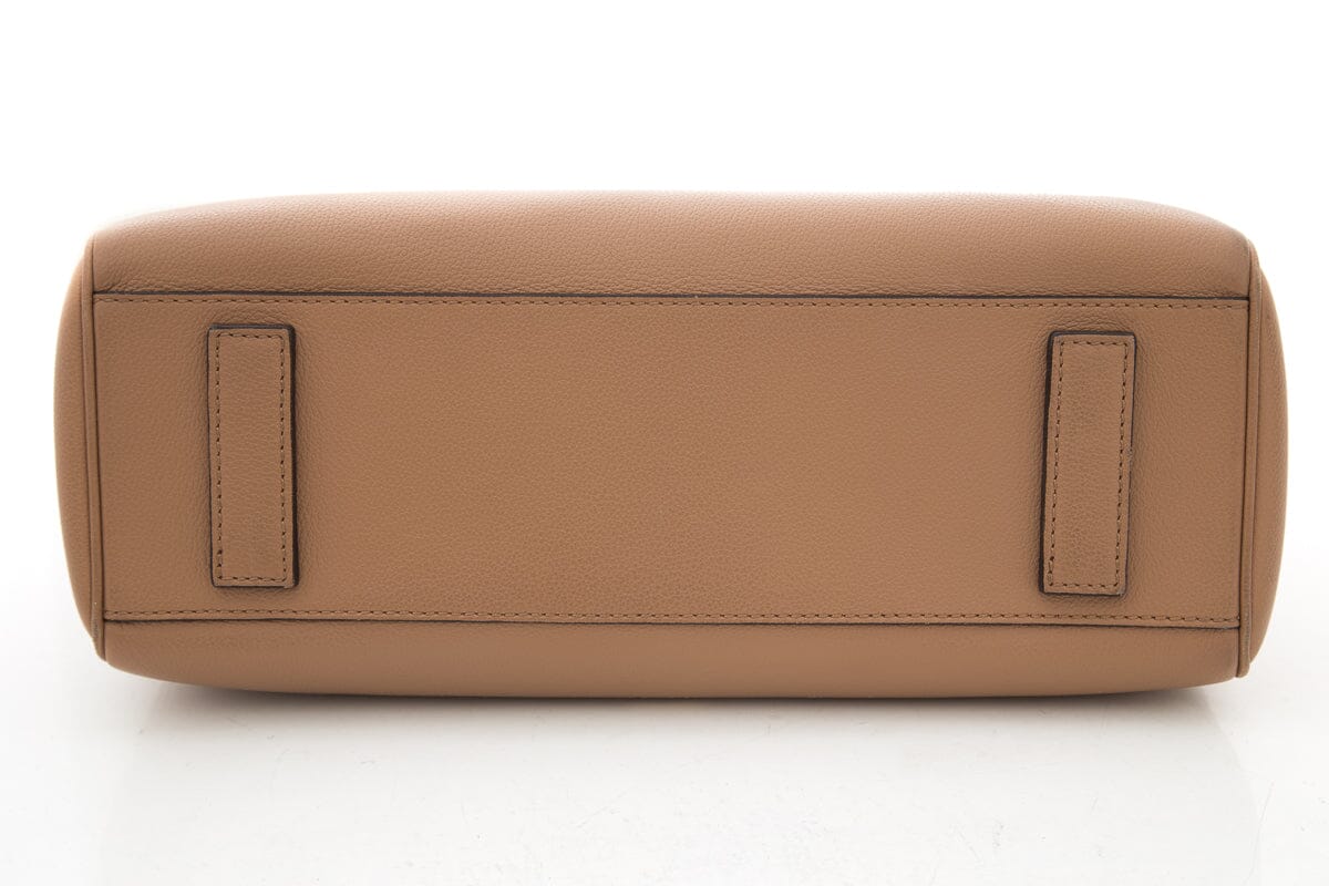 Versace Brown La Medusa Flap Leather Tote. This item is in good condition; some wear/discoloring on bottom exterior corners.