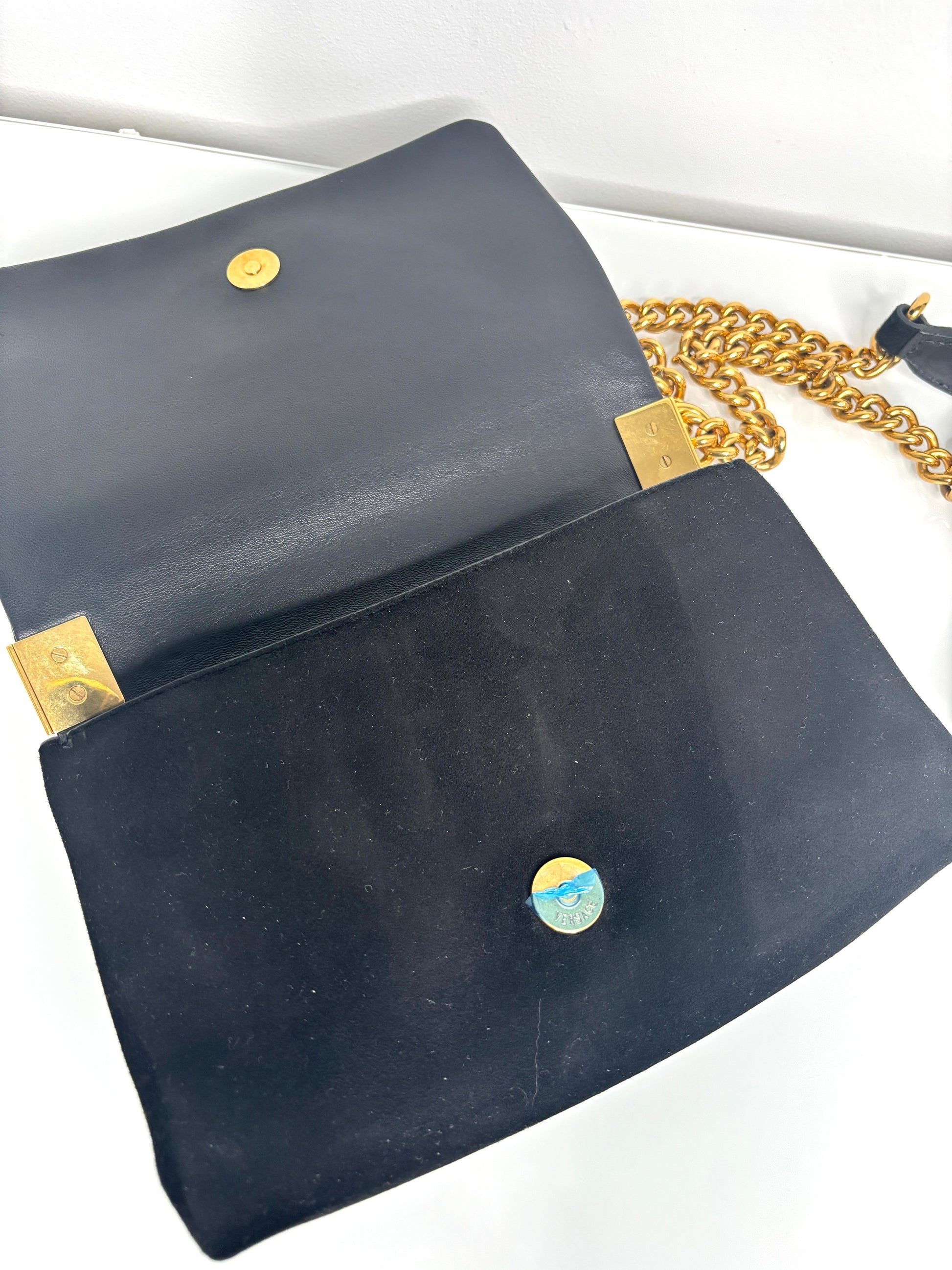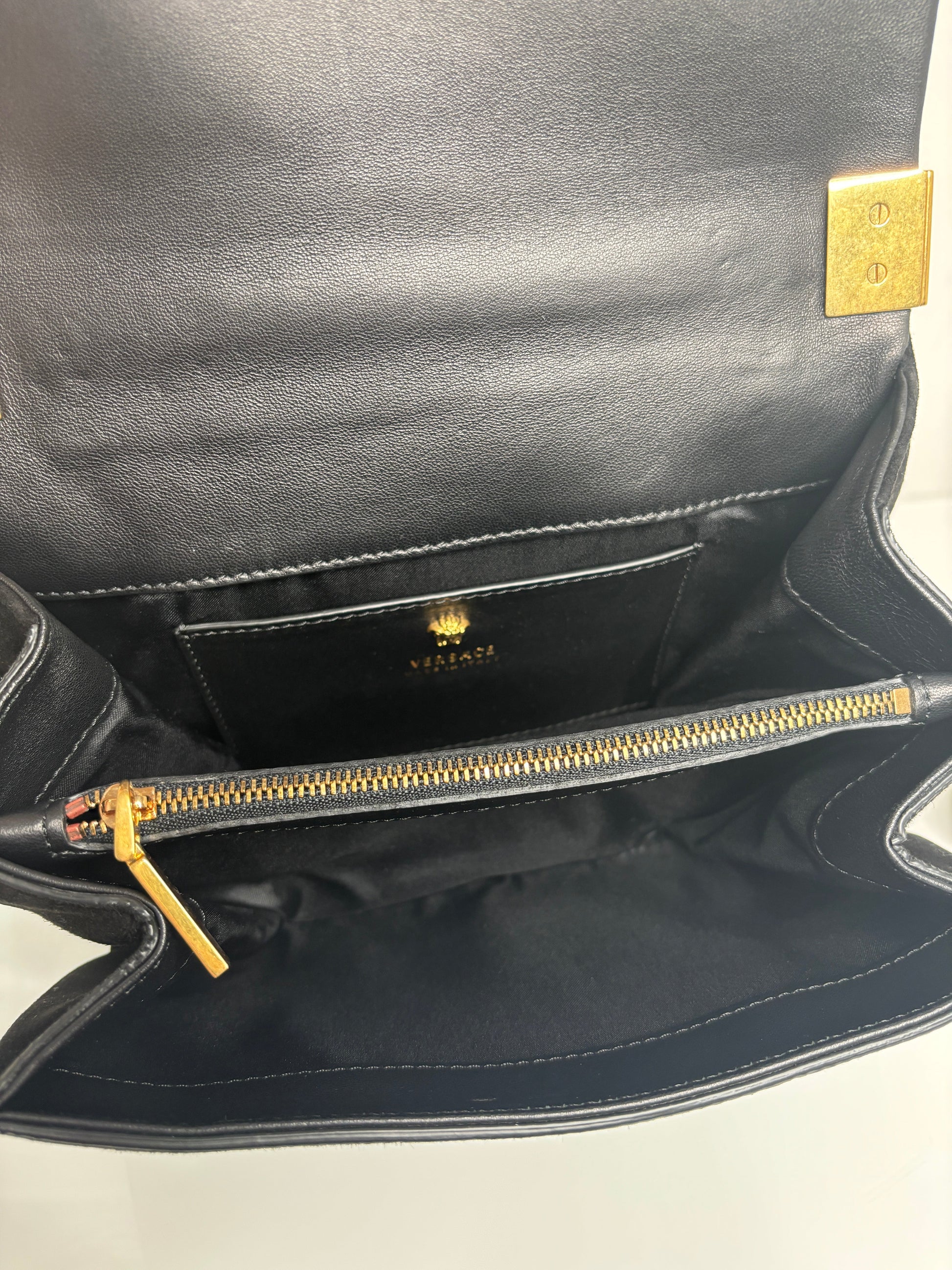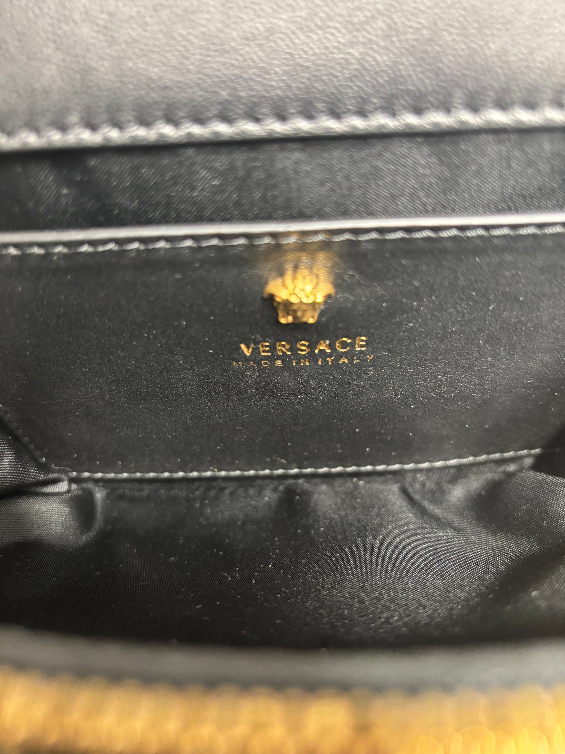 - 2 internal compartment with separate zip compartment and small side pocket with Versace logo