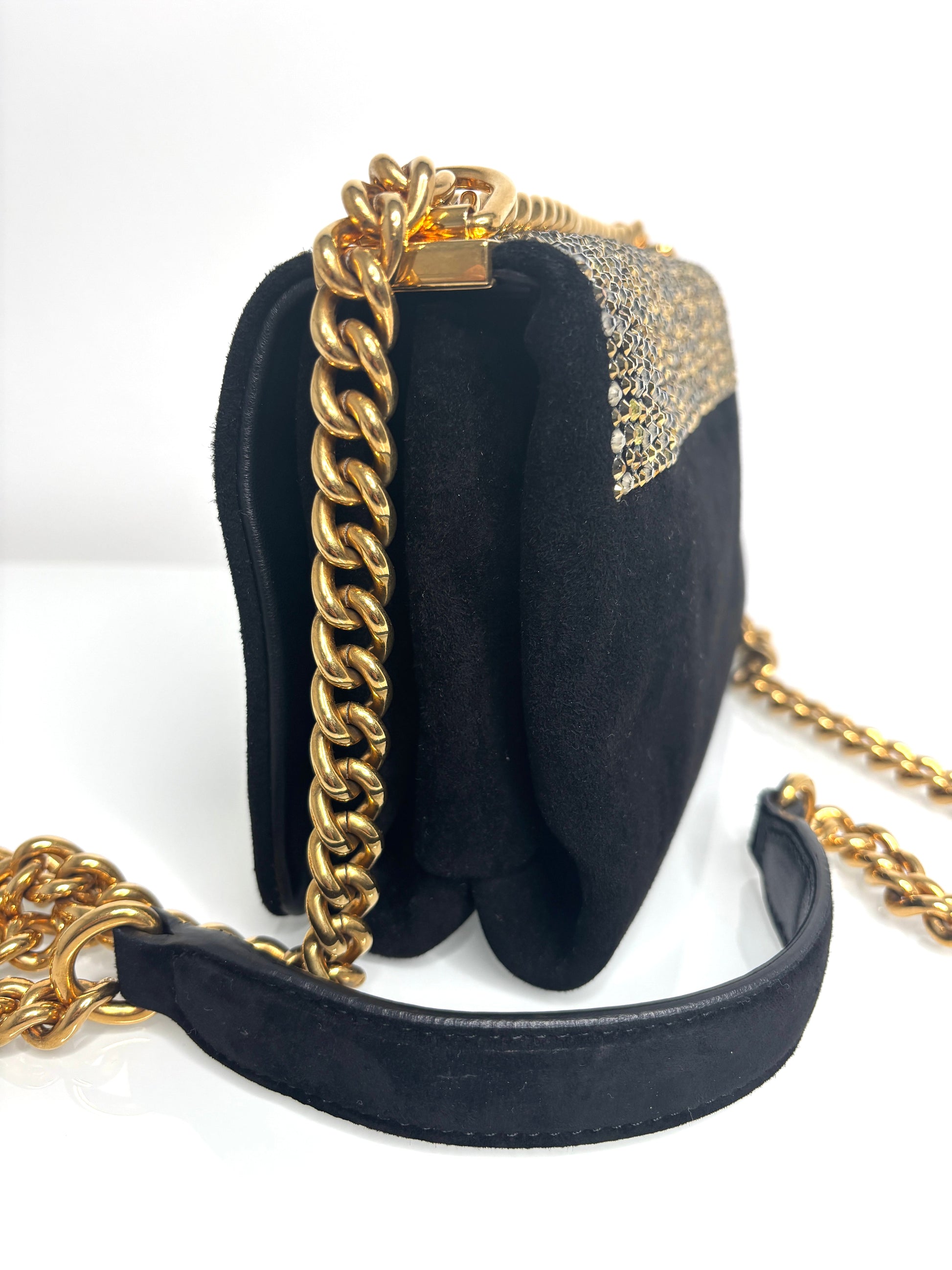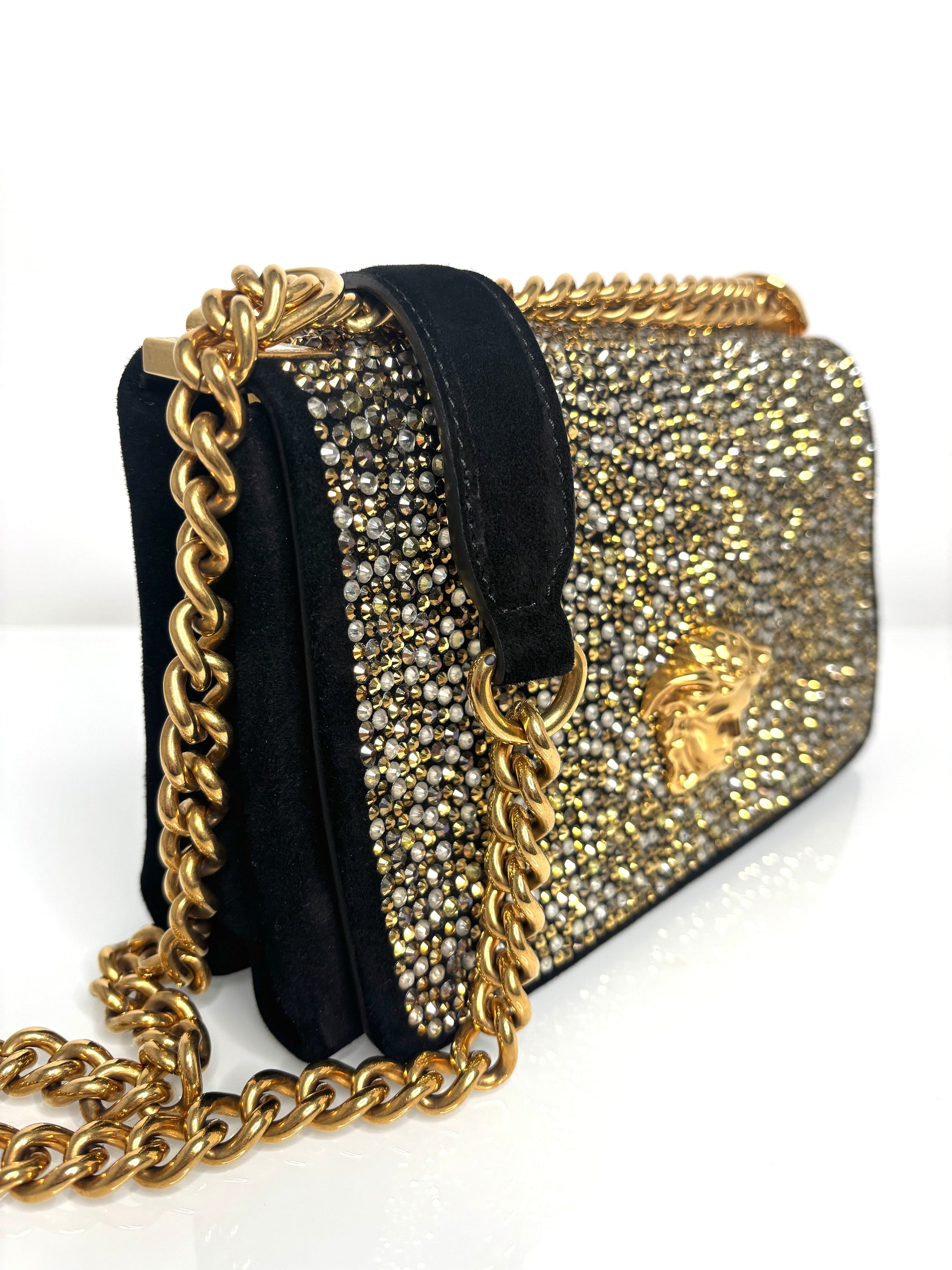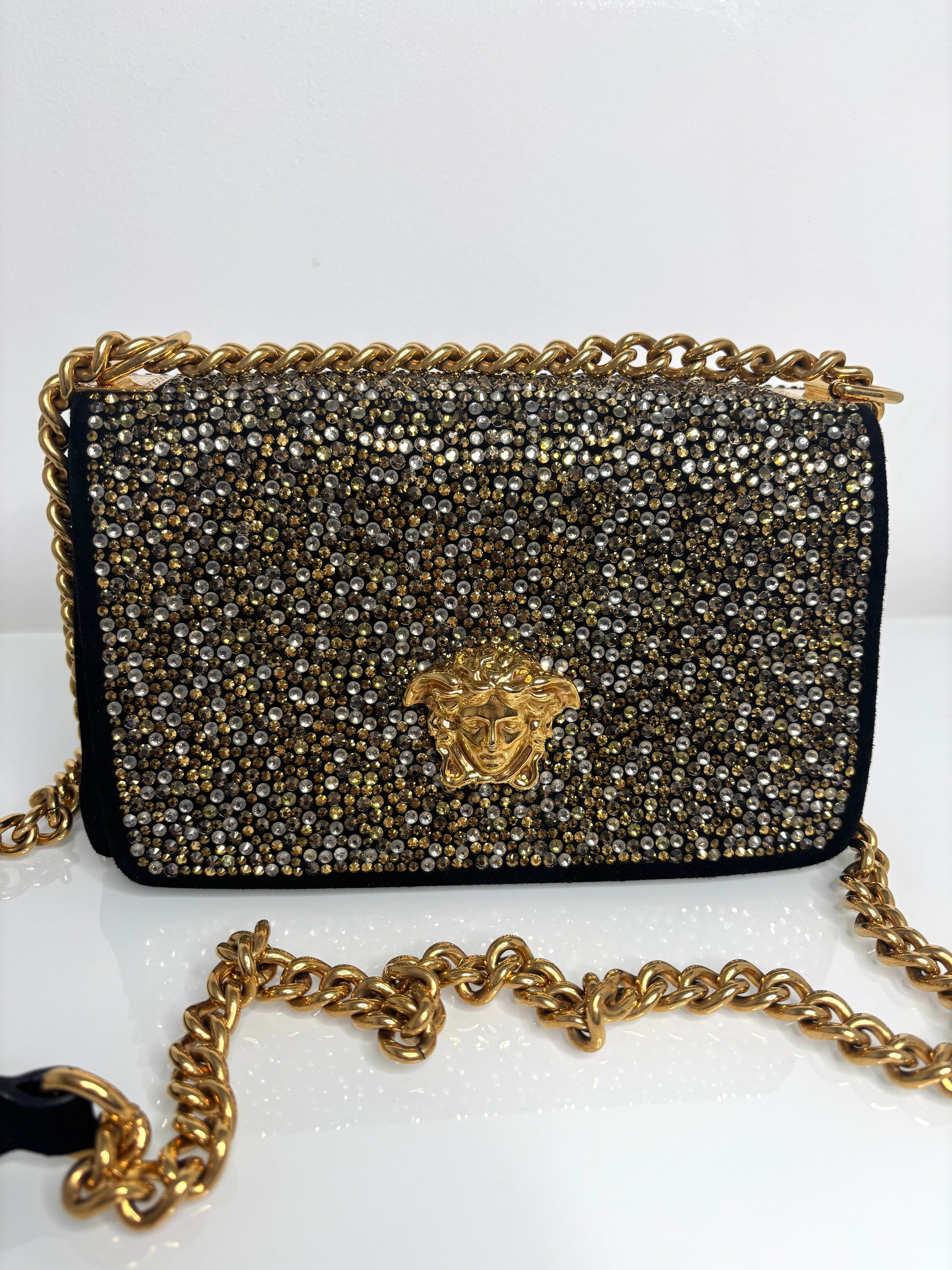 Versace La Medusa Crystal Black Velvet Cross-body Shoulder Bag