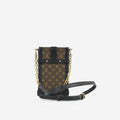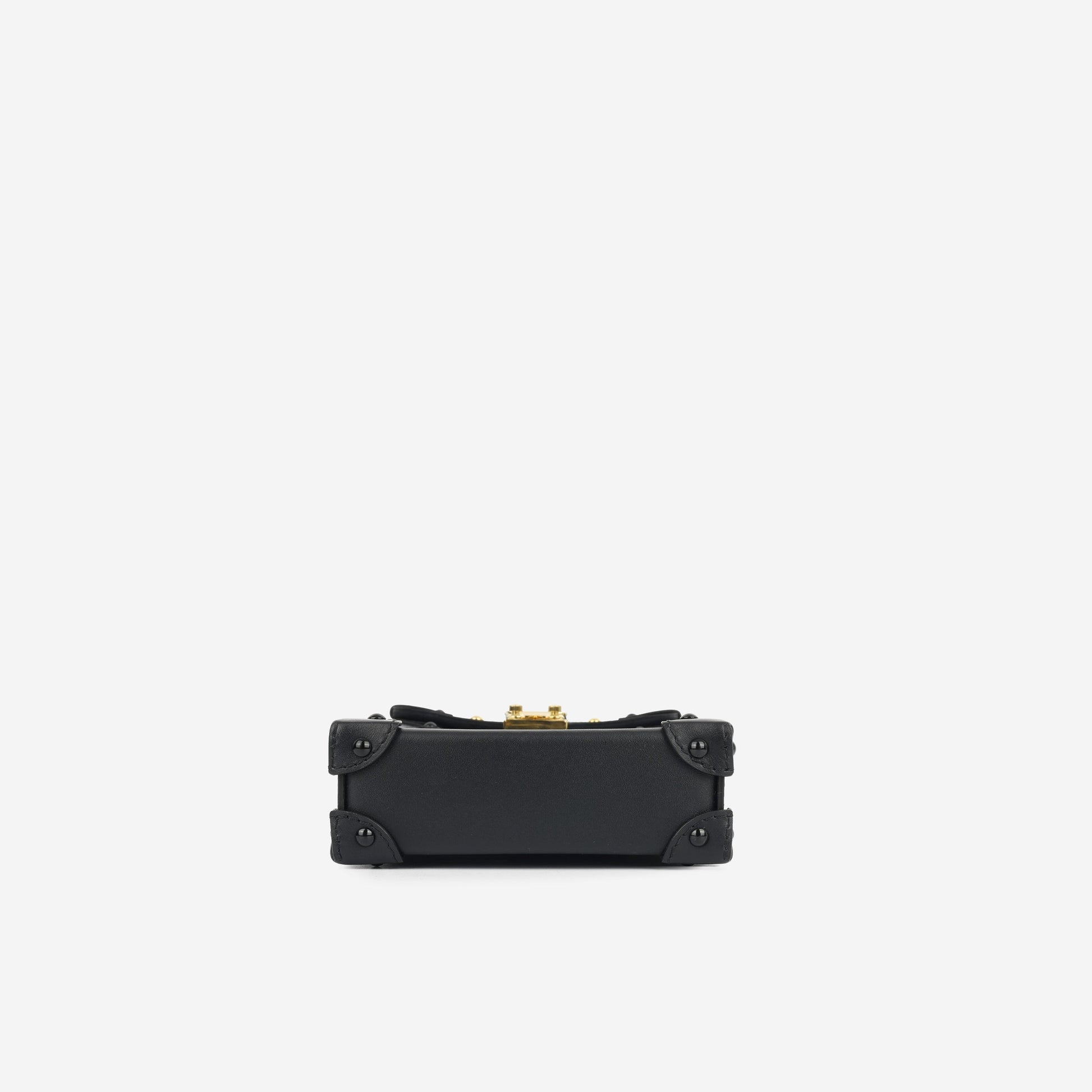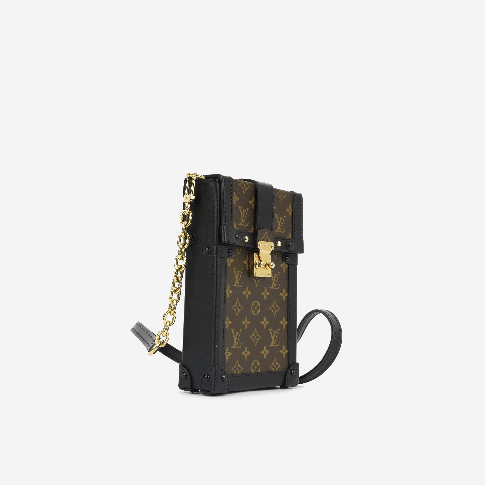 A fusion of timeless elegance and contemporary style inspired by Louis Vuitton's iconic trunks. Crafted from signature monogram canvas and black calfskin leather trims, this Vertical Petite Malle features a removable and adjustable strap for versatile shoulder carry.