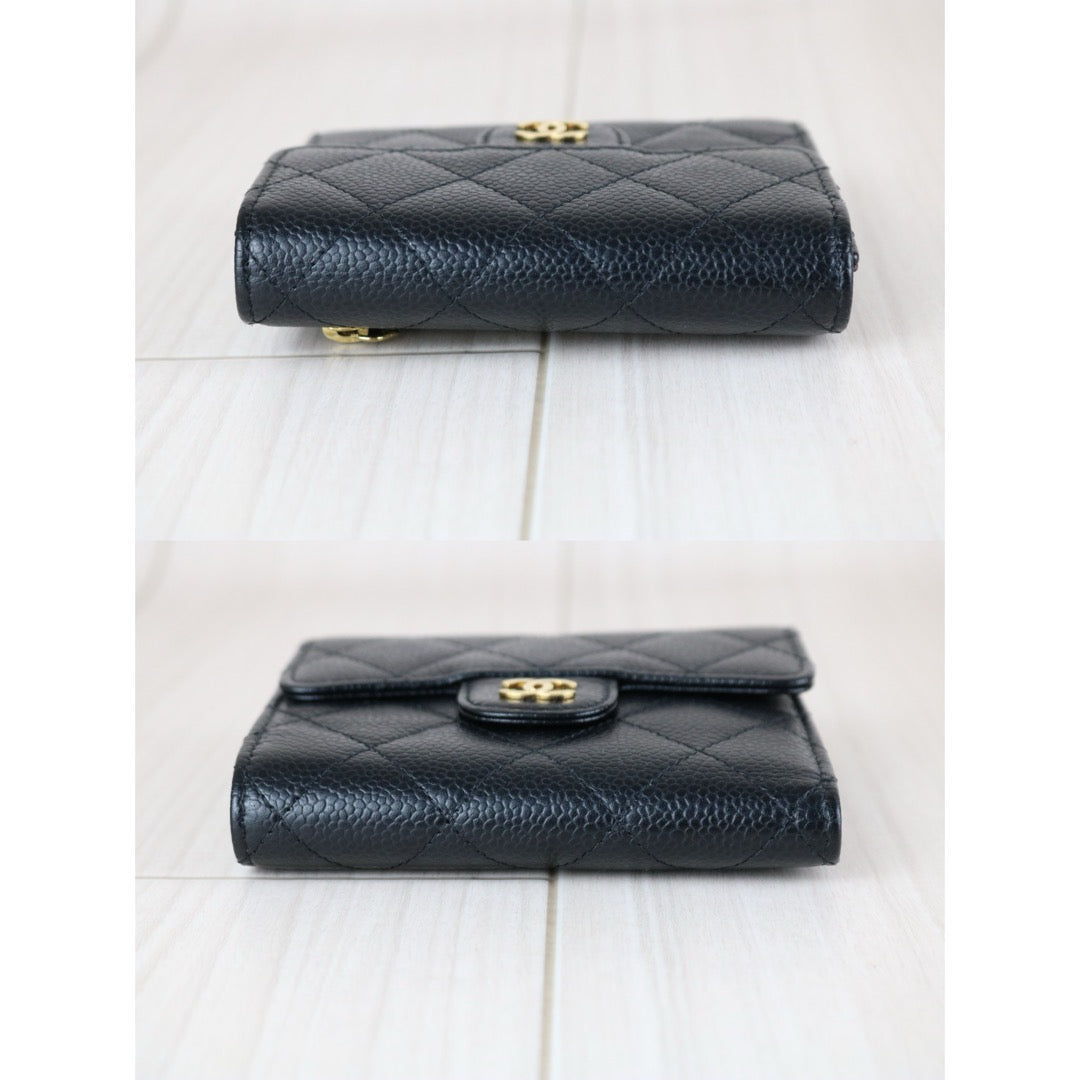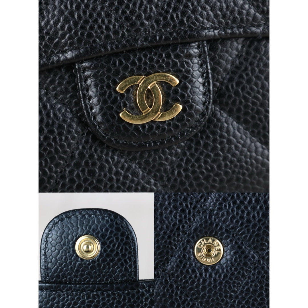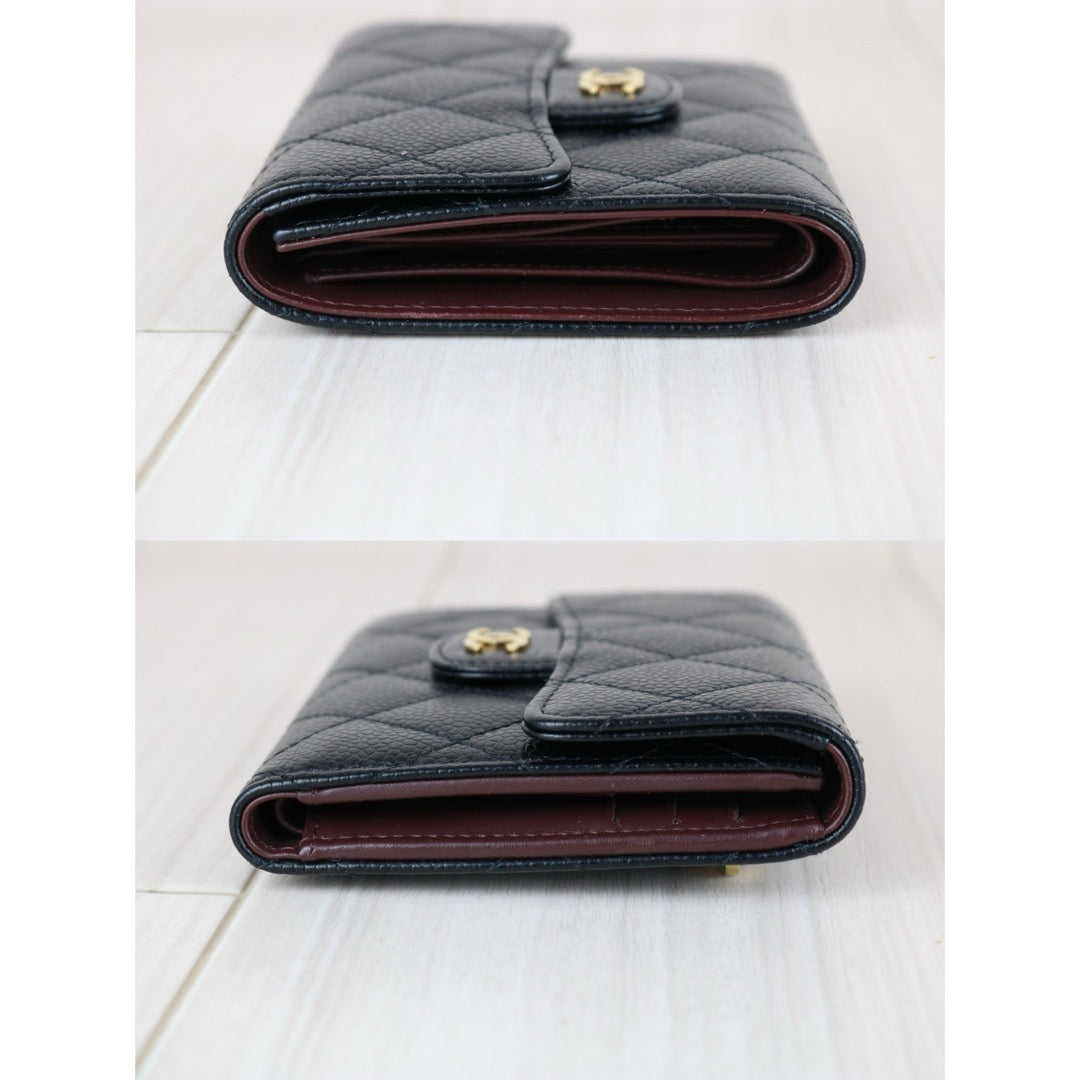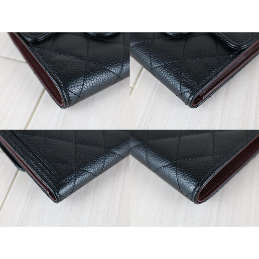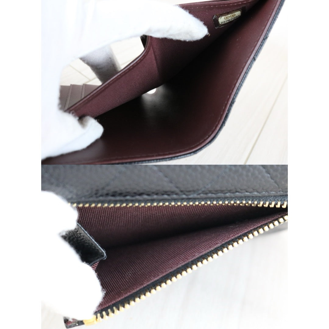 Very Good ( Rank A)?Chanel Caviar Skin Black Wallet Made In 2016-2017Year ?S25071505