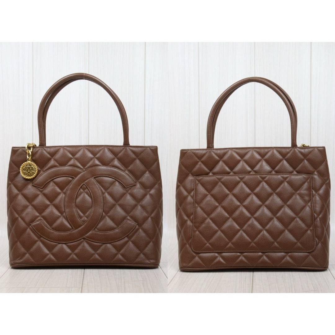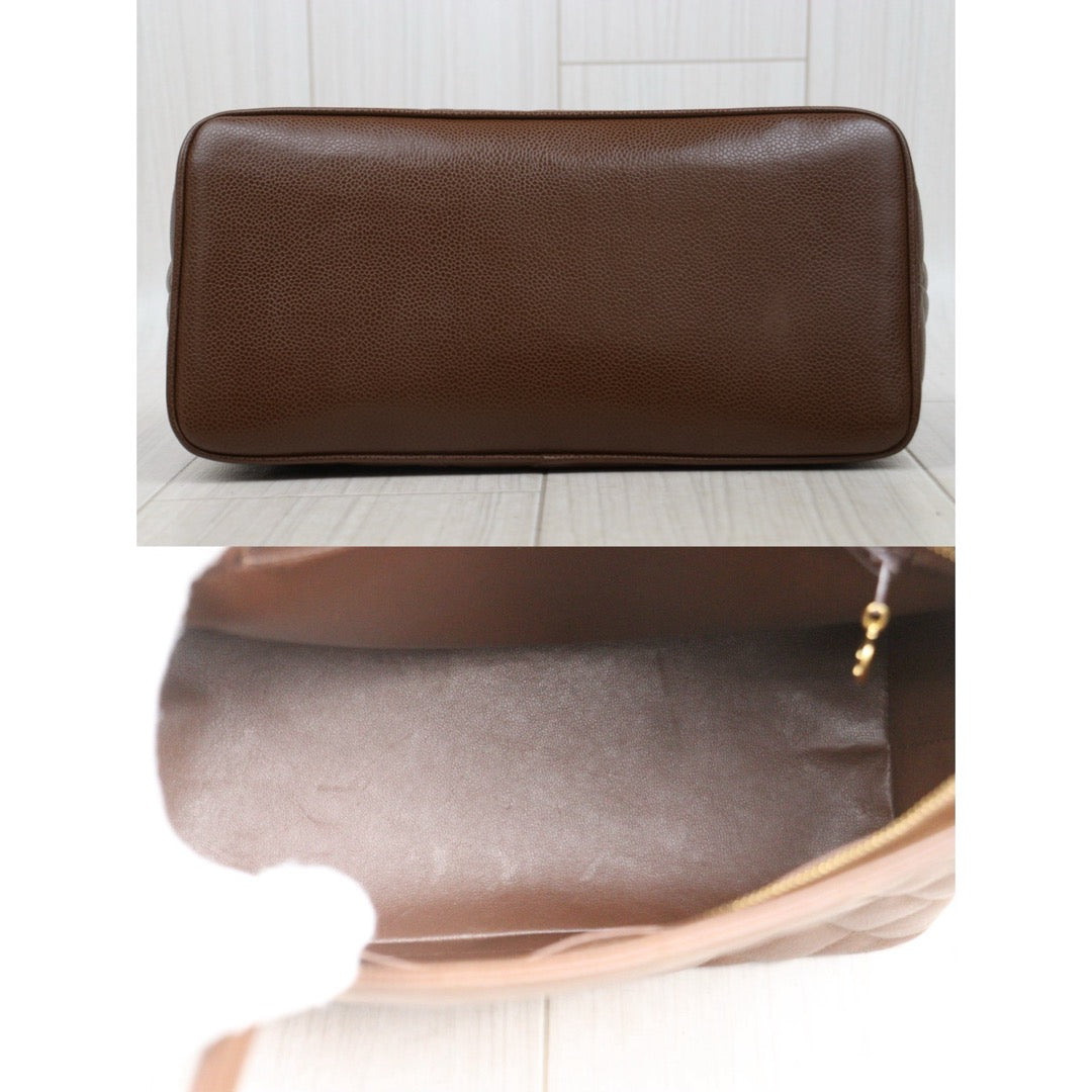 Very Good ( Rank A)? CHANEL Caviar Skin Calf Leather Tote Bag Golden Brown Made In 1997?1999Year?P25071803