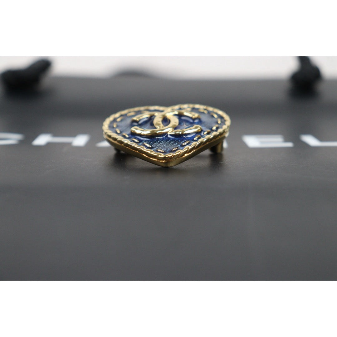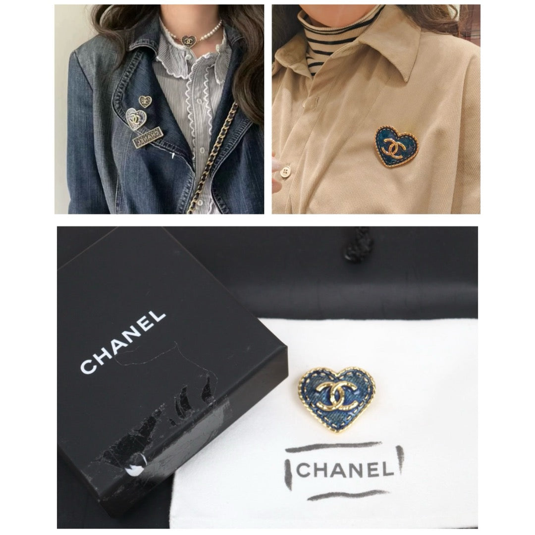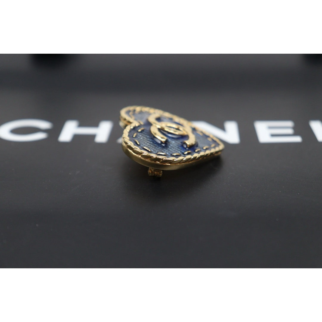 Very Good ( Rank A)? CHANEL Coco Mark 24P Denim Heart Brooch ?V25052508