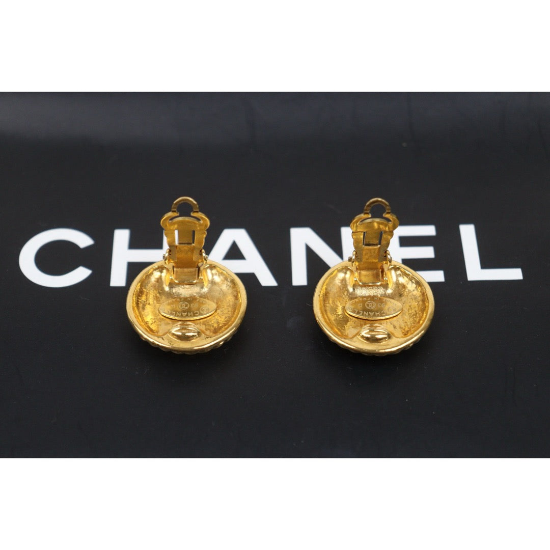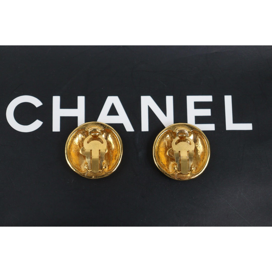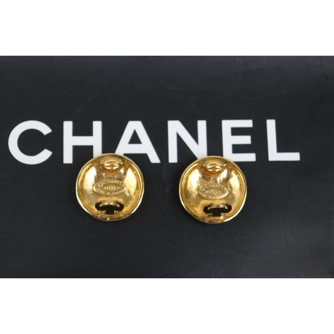 Very Good ( Rank A) ?CHANEL Coco Mark Gold 24 Plated Round Earrings Made In 1993 Year ?25052922