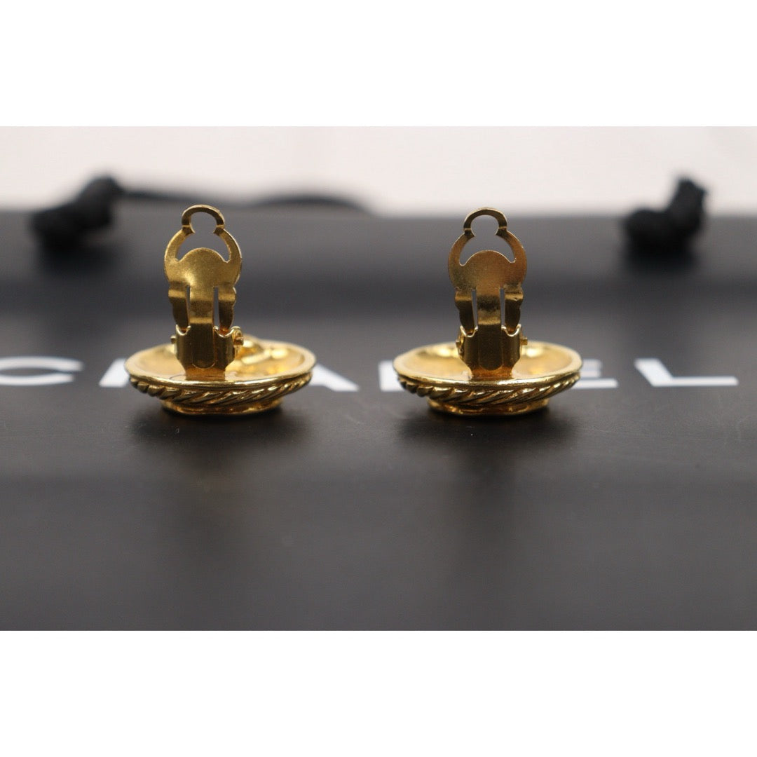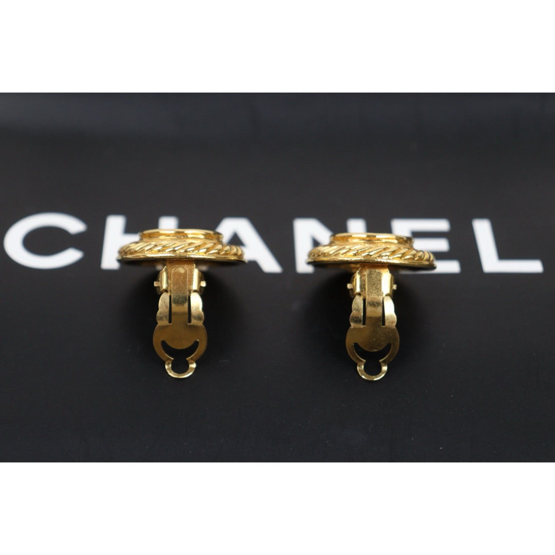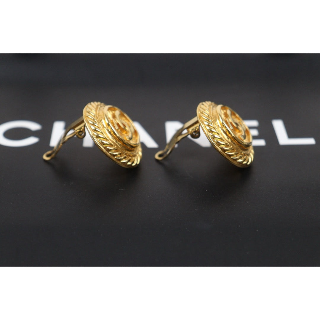 Very Good ( Rank A) ?CHANEL Coco Mark Gold 24 Plated Round Earrings Made In 1993 Year ?25052922
