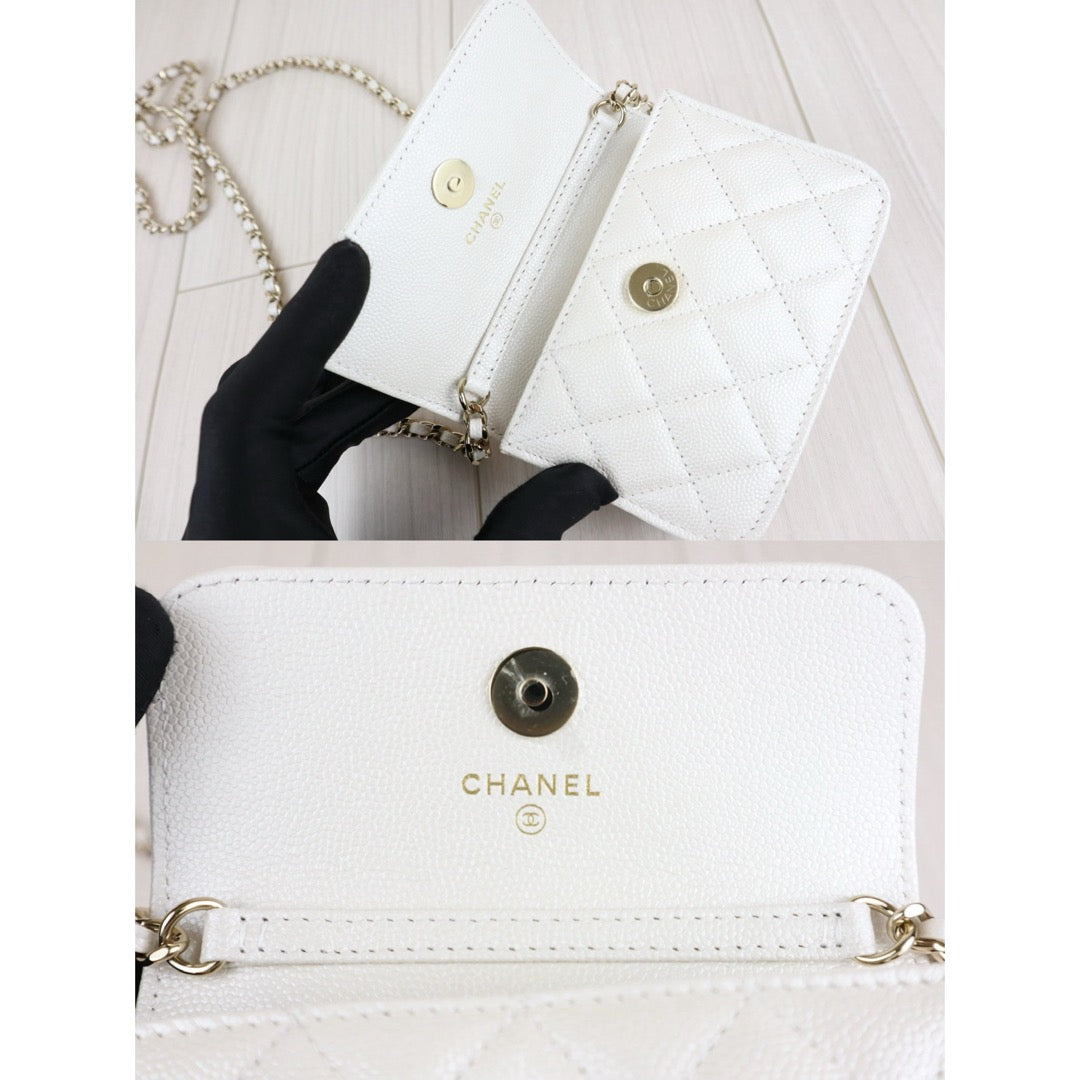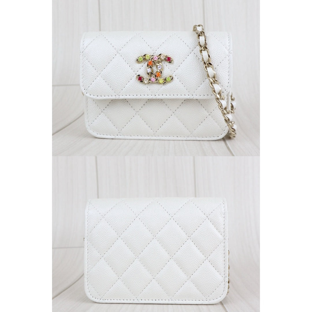Very Good ( Rank A)? CHANEL Matelasse Chain Calf Leather Colour Rhinestone Mini WOC White IC Chips Model ?W25062903